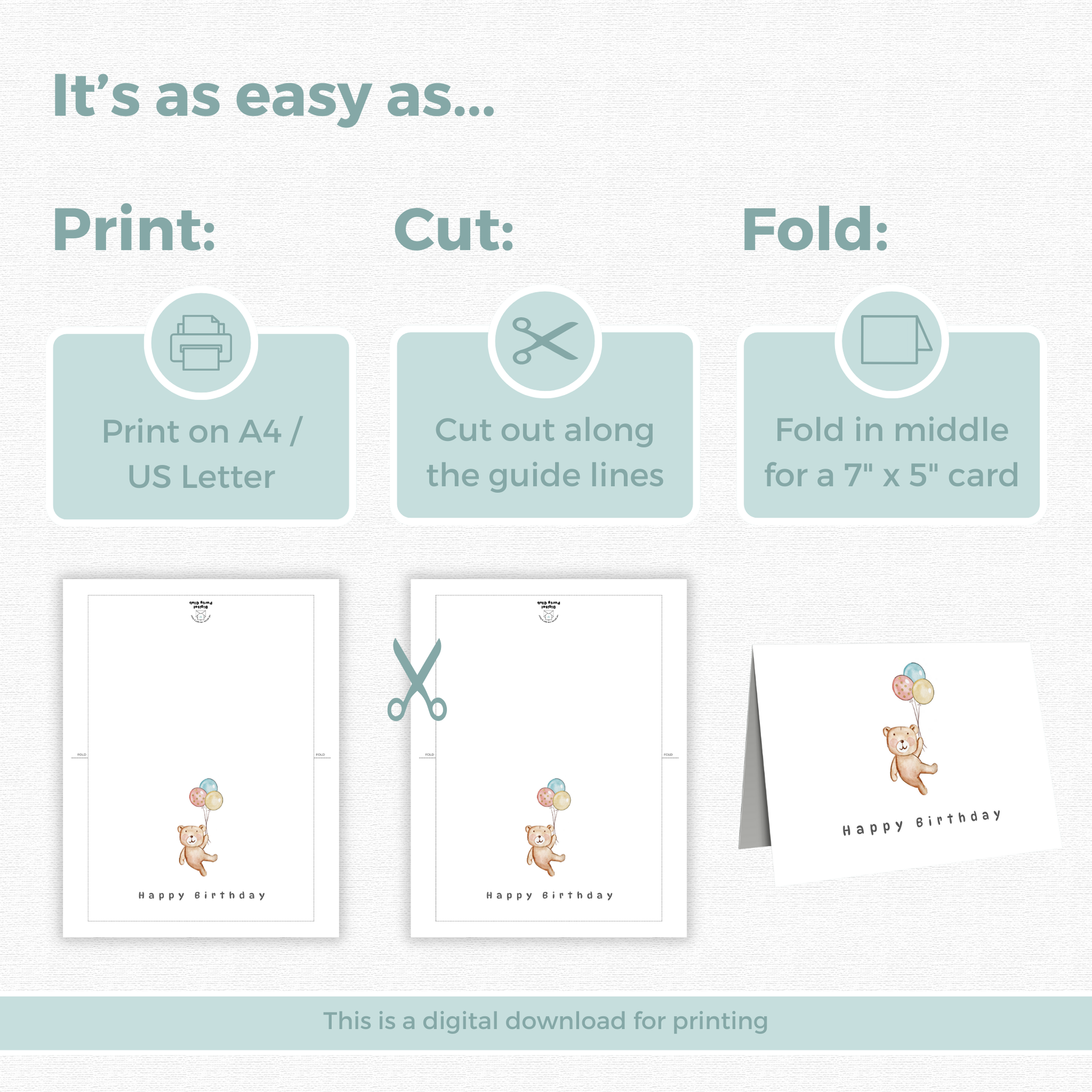 1 x PDF Birthday Card - 7 x 5 Folded Card