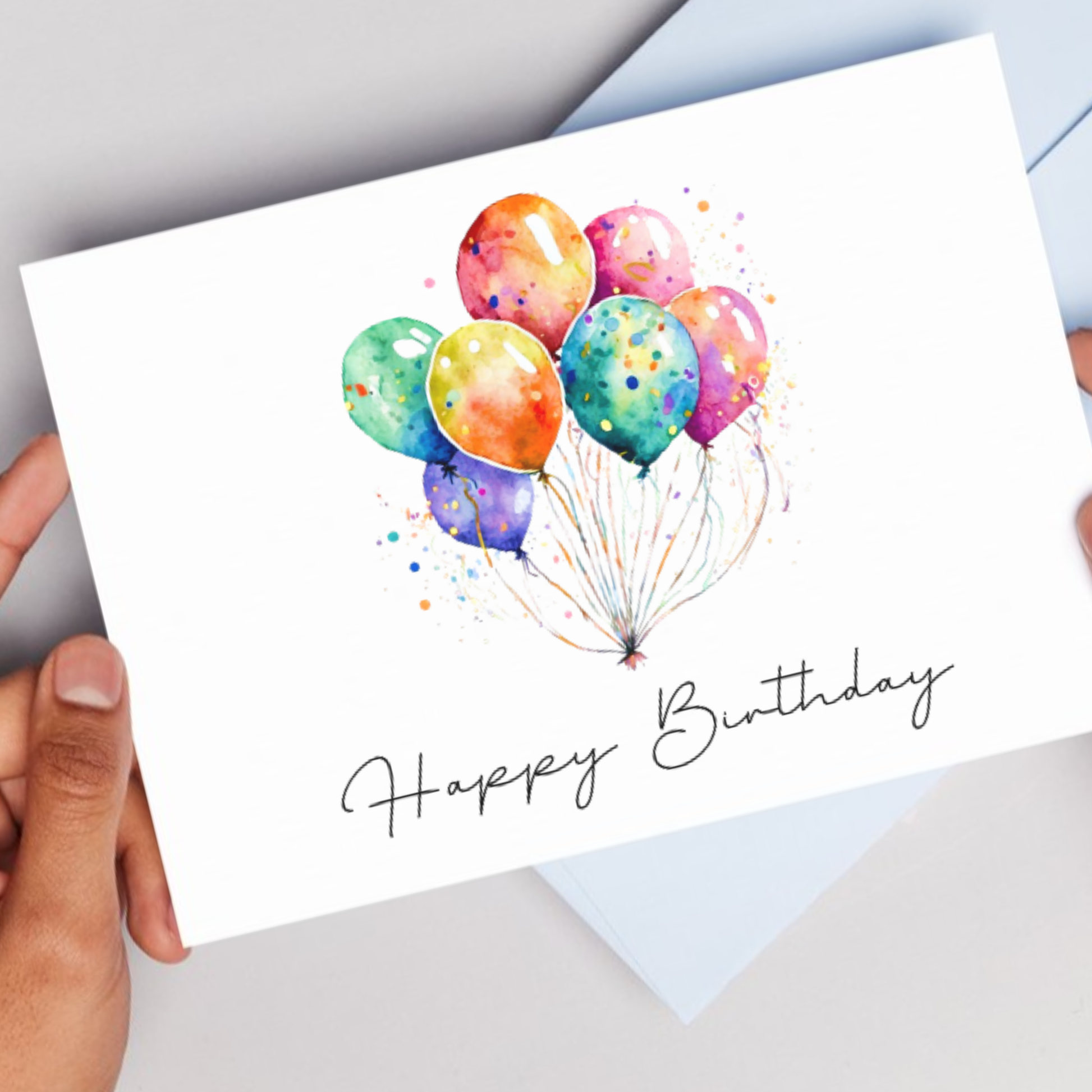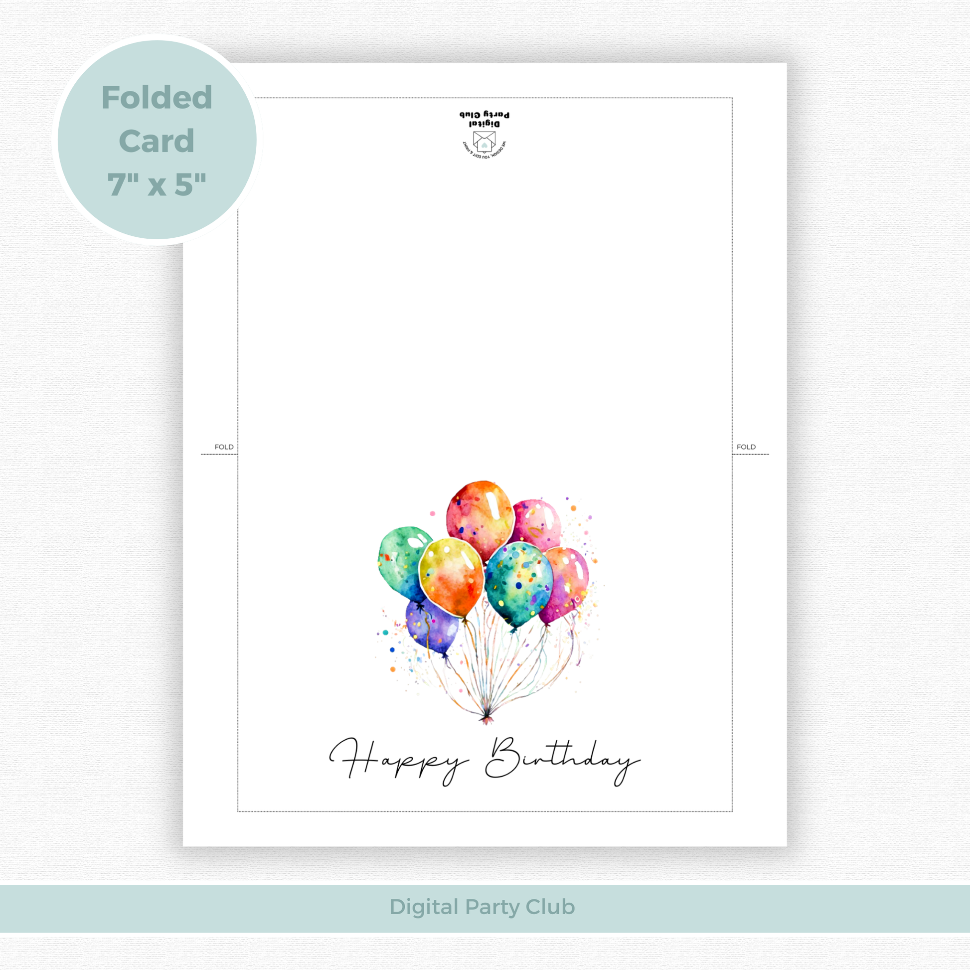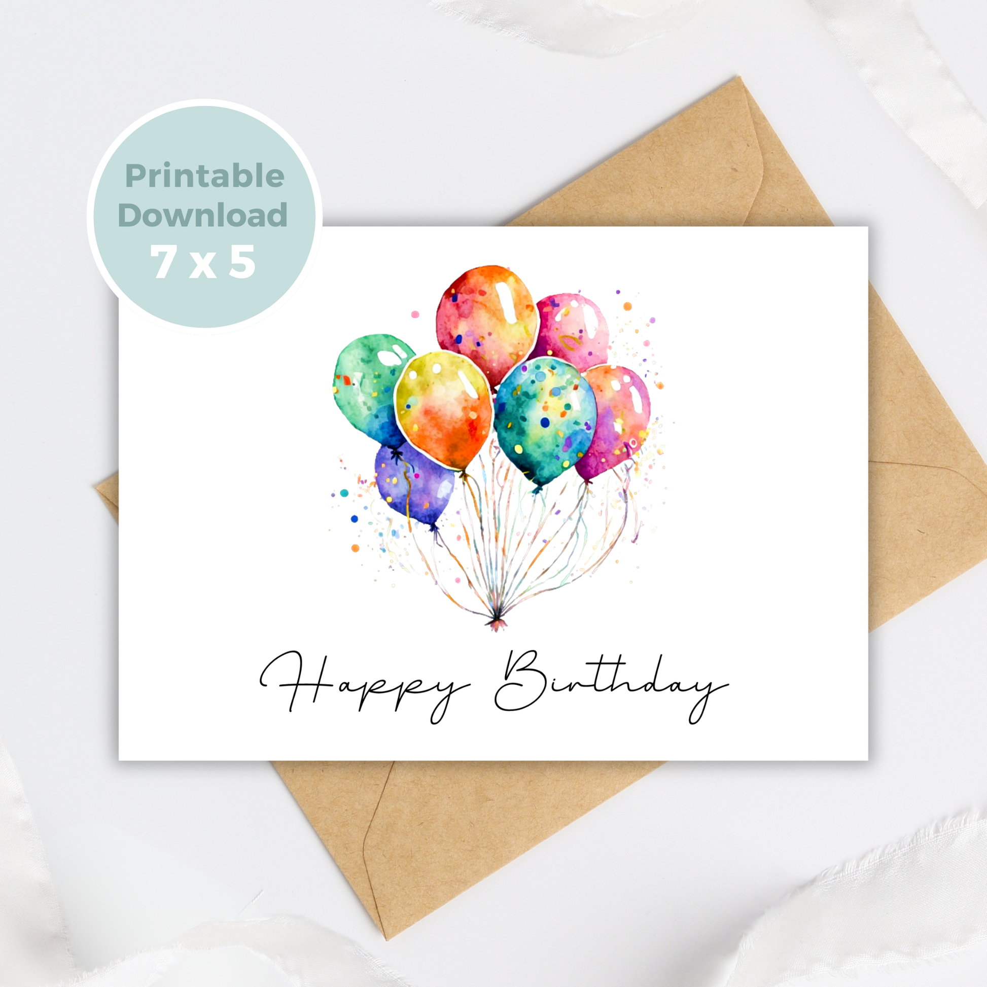 Brighten someone’s special day with this printable Happy Birthday card featuring a stunning watercolor balloon design.