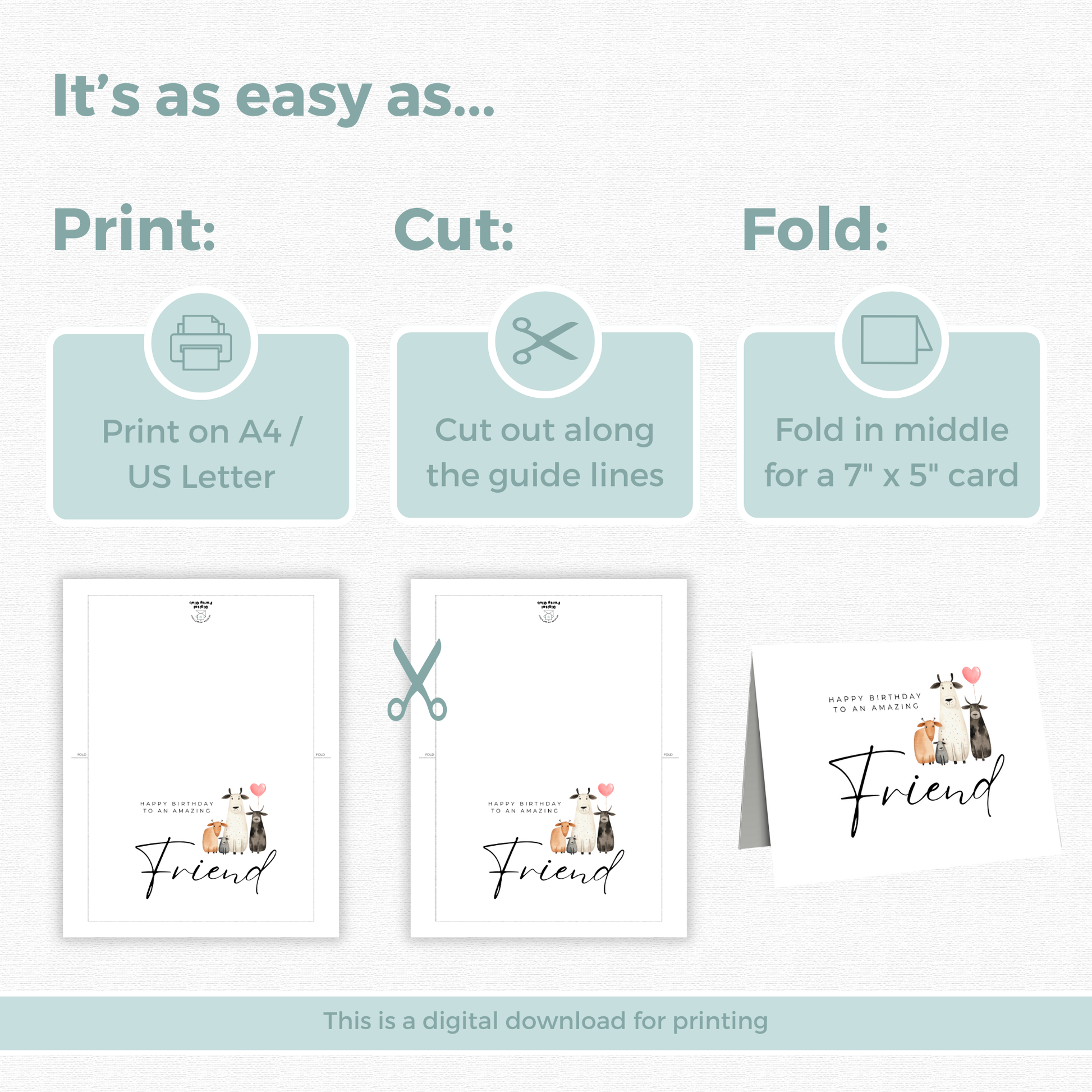 The card pdf file can be printed on standard size A4 / 8.5" x 11" cardstock or paper.