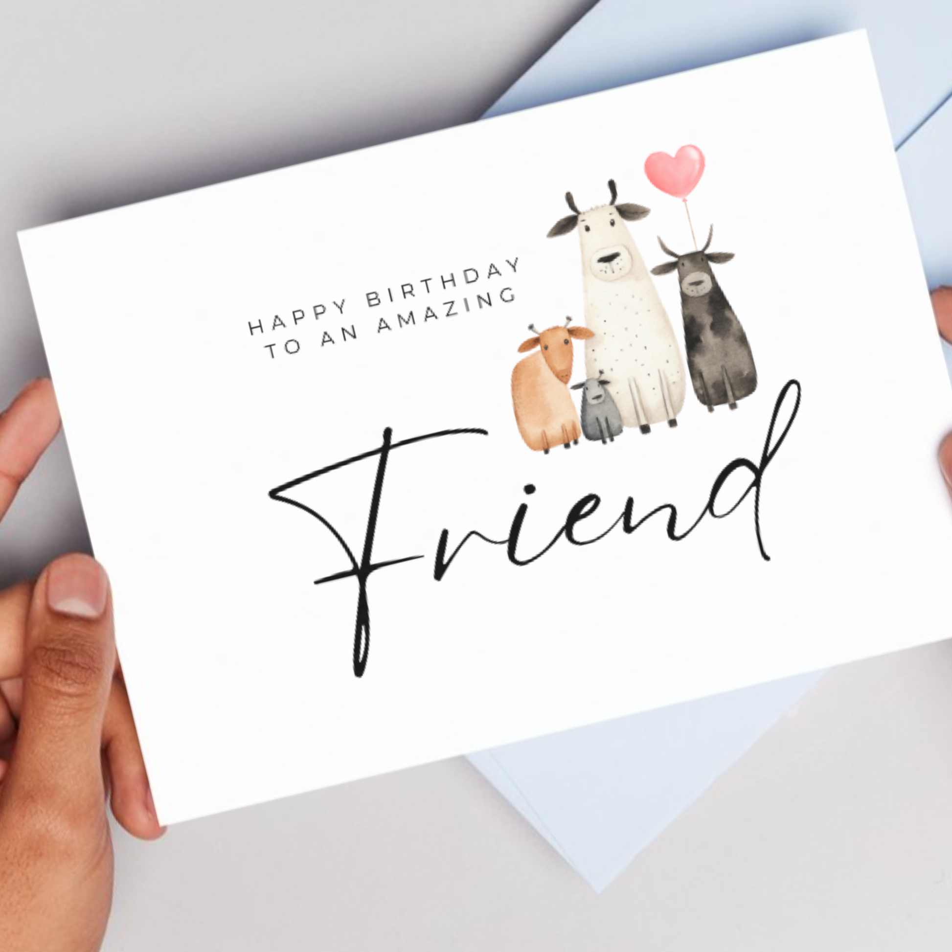 Make your friend's birthday extra special with this adorable printable birthday card featuring a cute cow illustration! Perfect for animal lovers! It’s a delightful way to send warm birthday wishes and bring a smile to their face.
