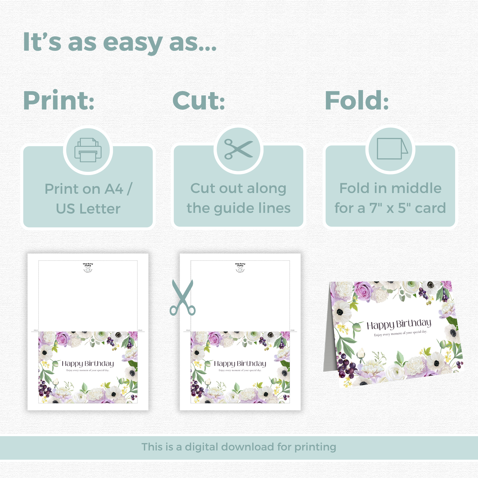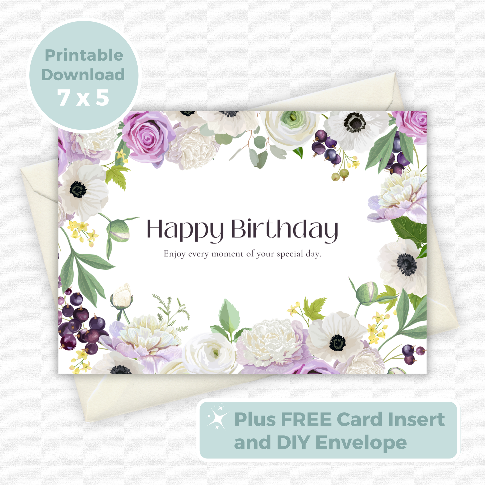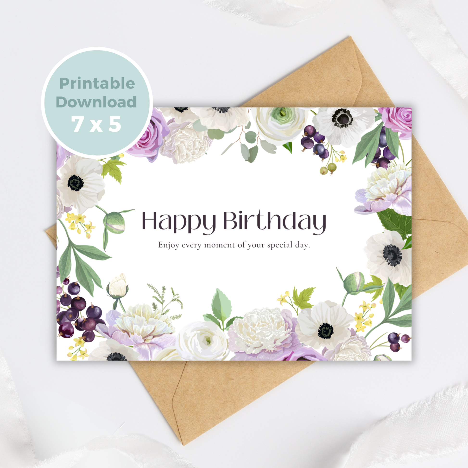 Celebrate birthdays in style with our Printable Birthday Card with Flowers. This stunning floral birthday card is the perfect way to send warm wishes to your loved ones.