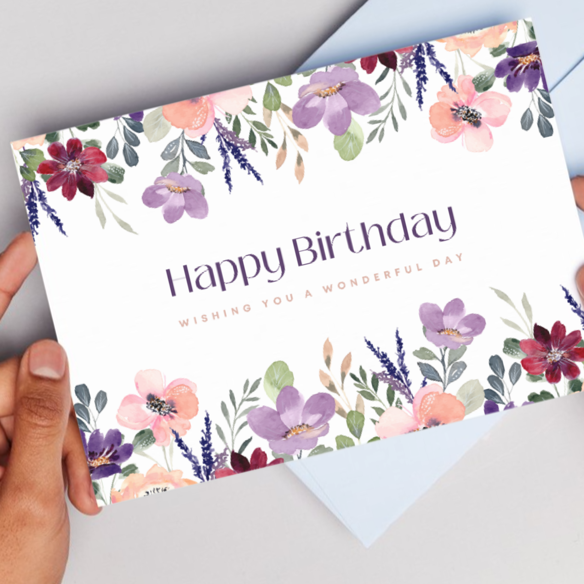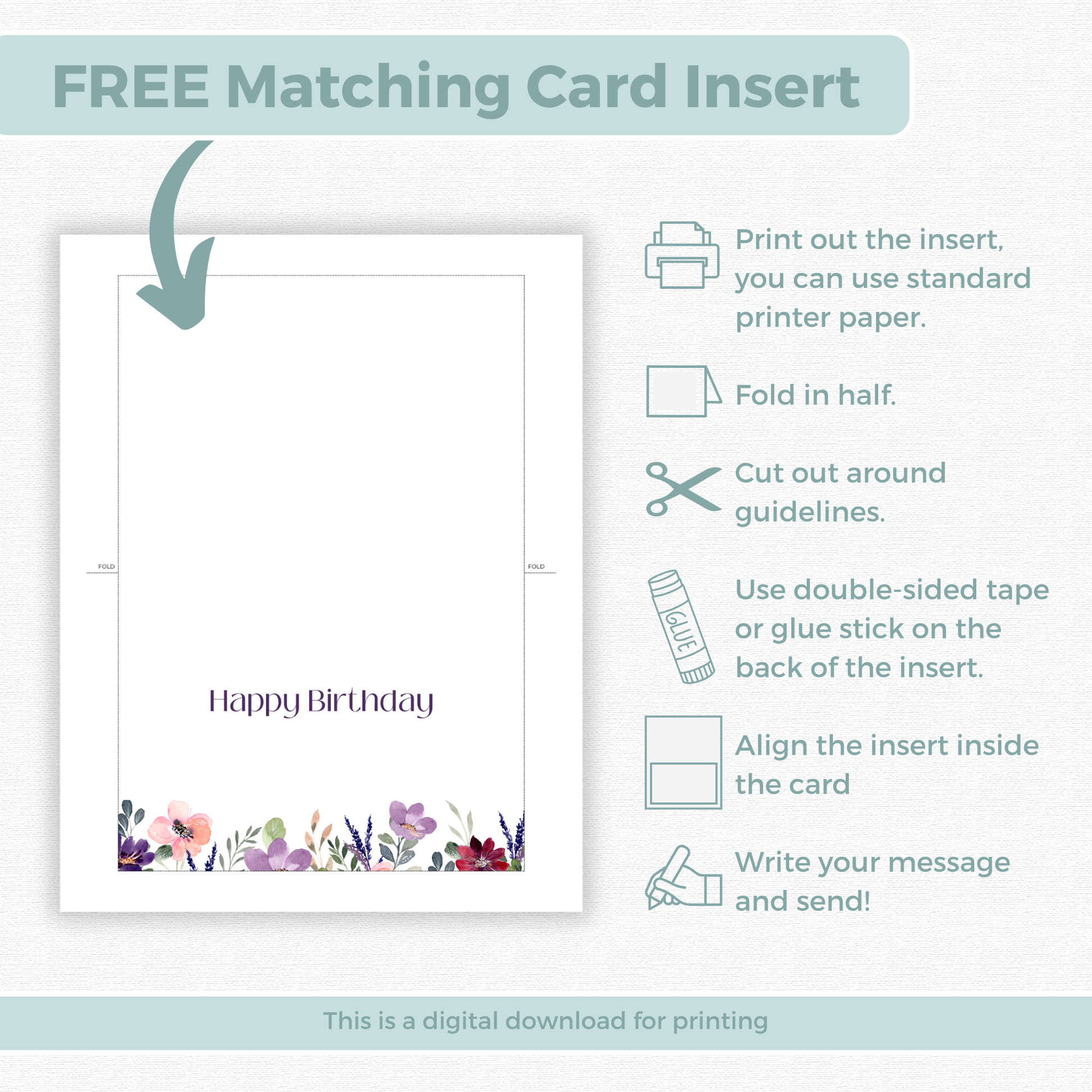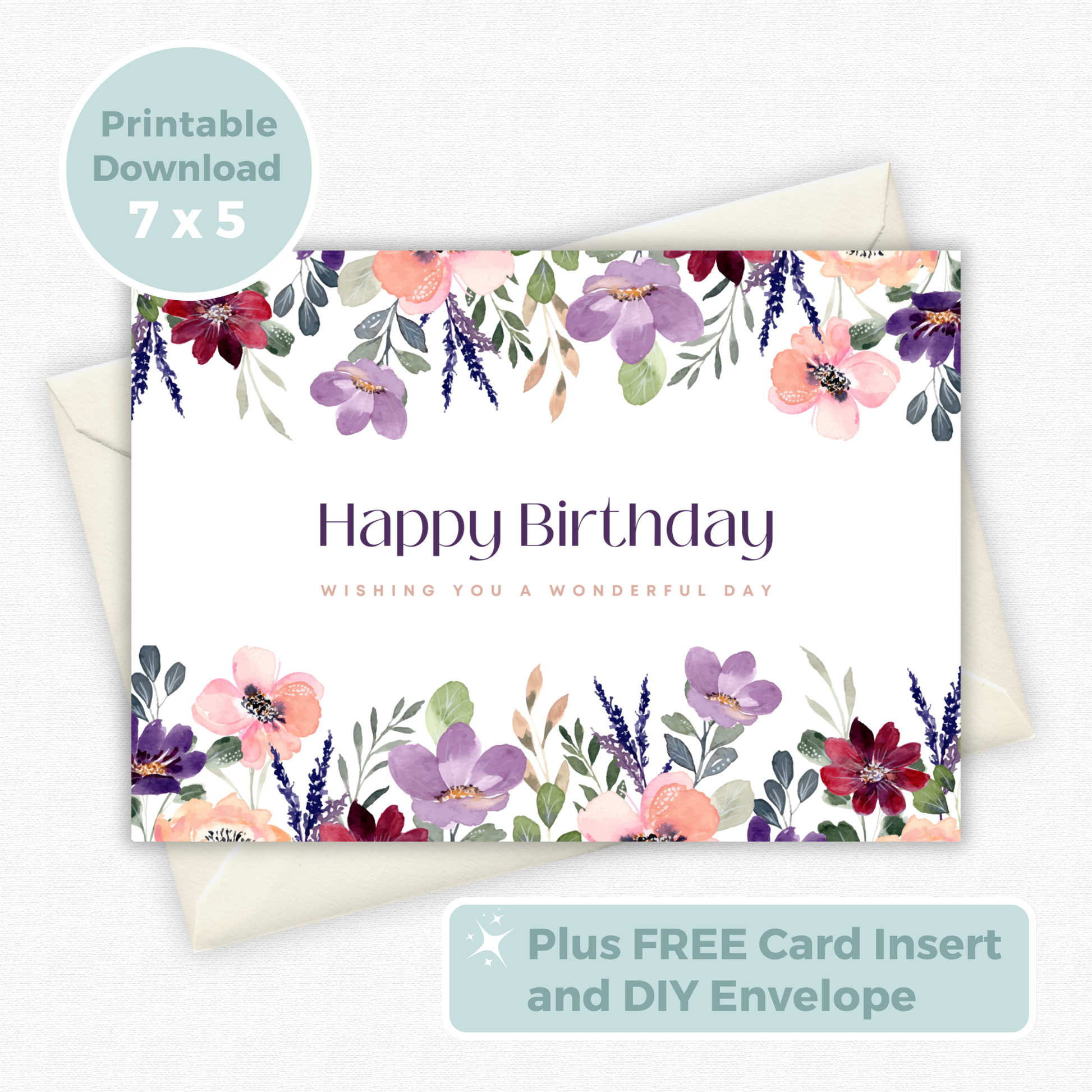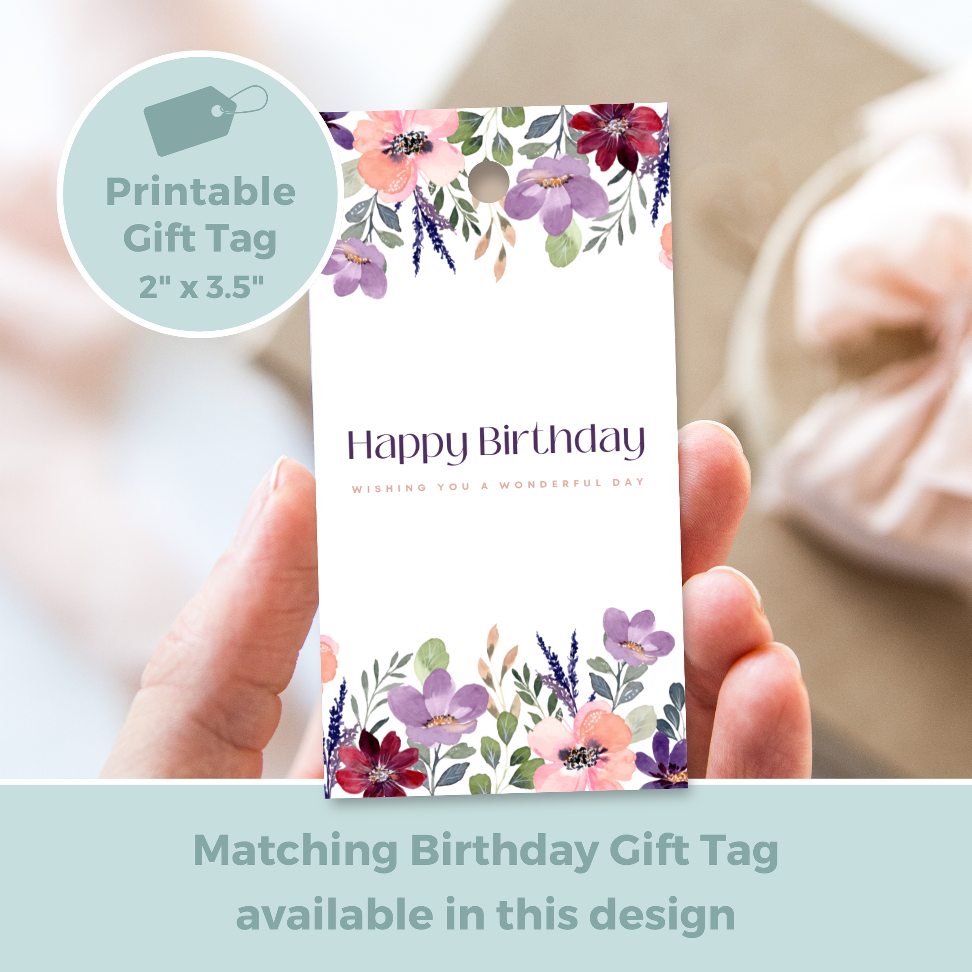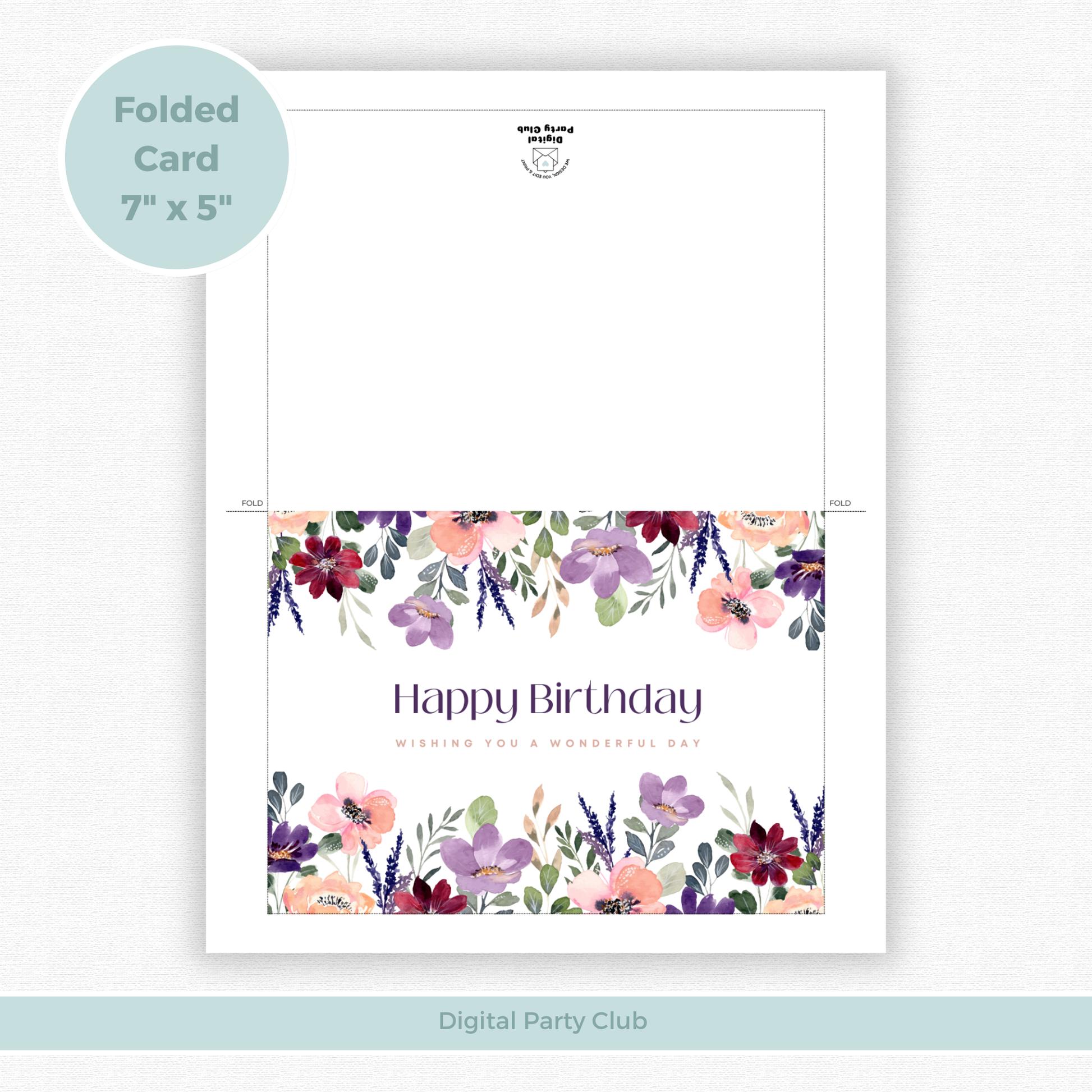 Celebrate birthdays in style with our Printable Birthday Card with Purple Flowers. This stunning floral birthday card is the perfect way to send warm wishes to your loved ones.