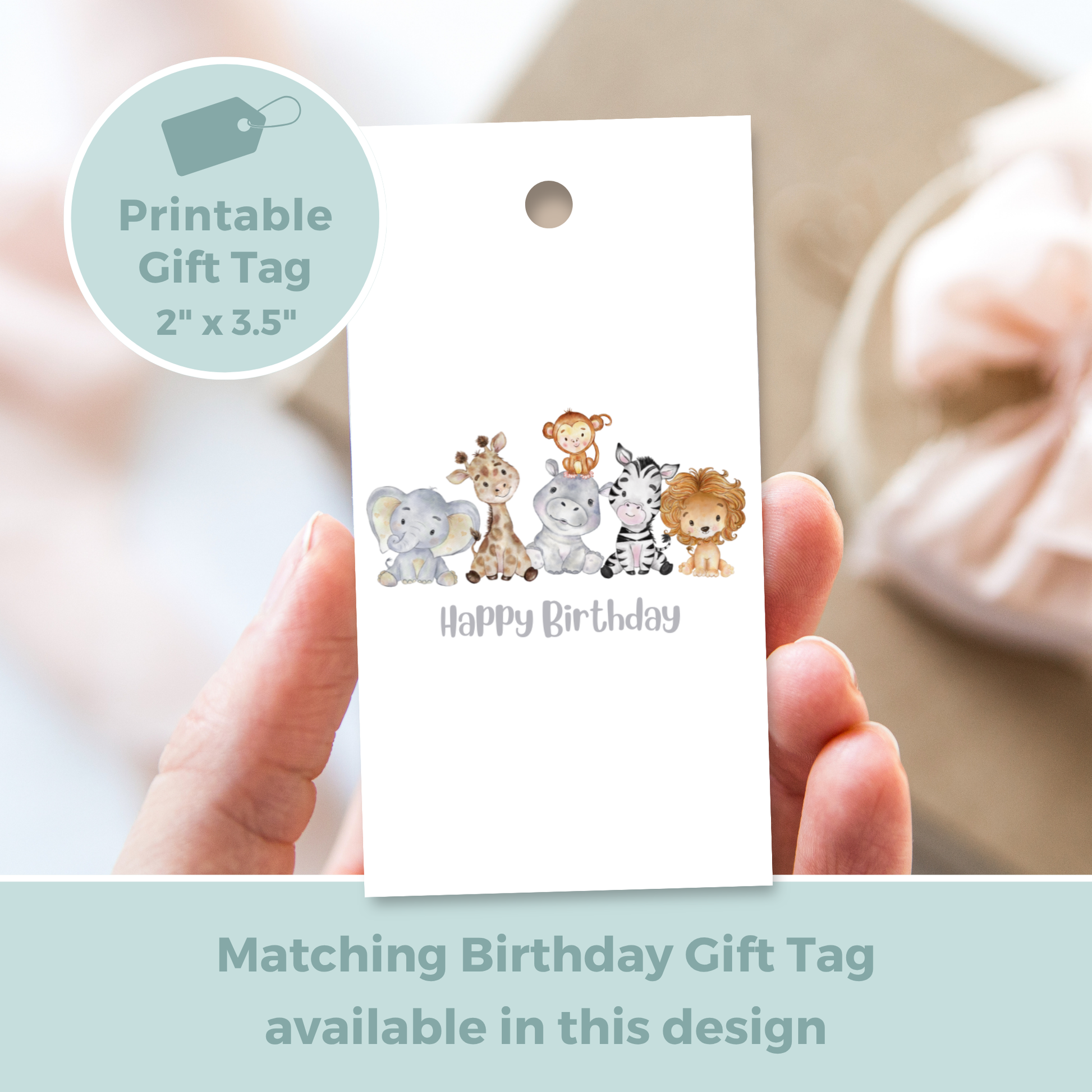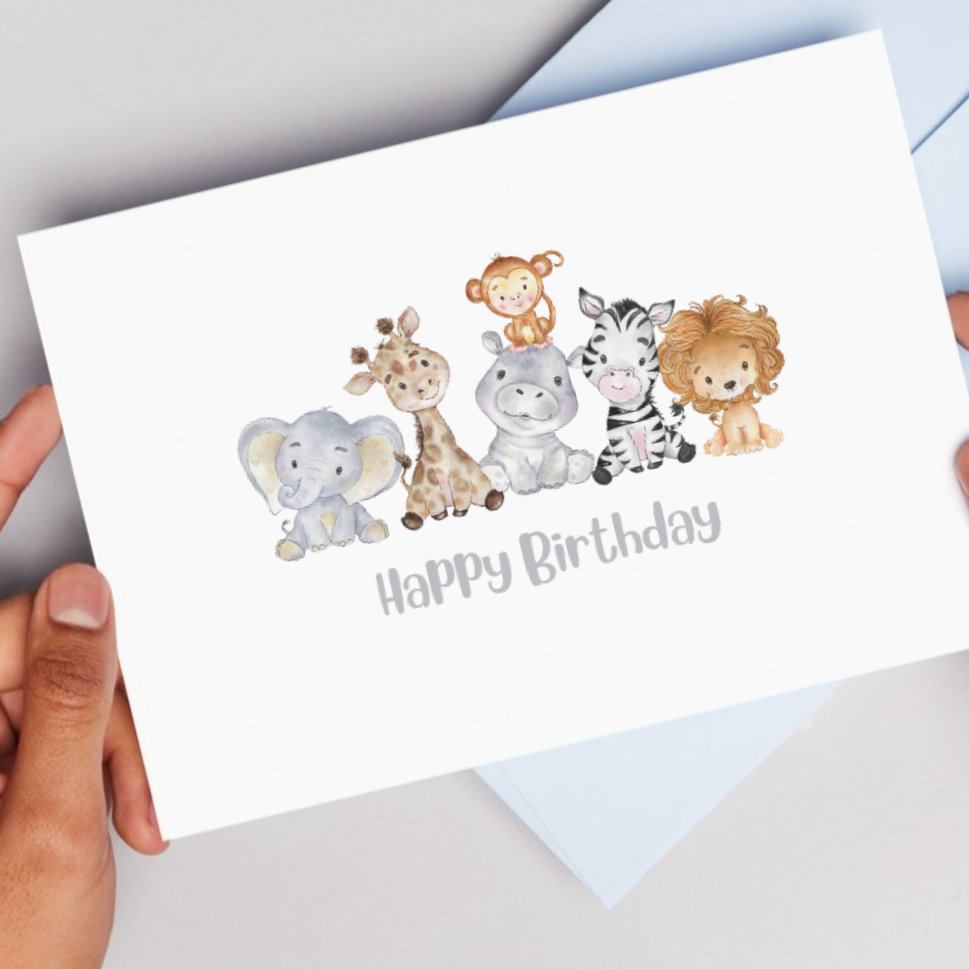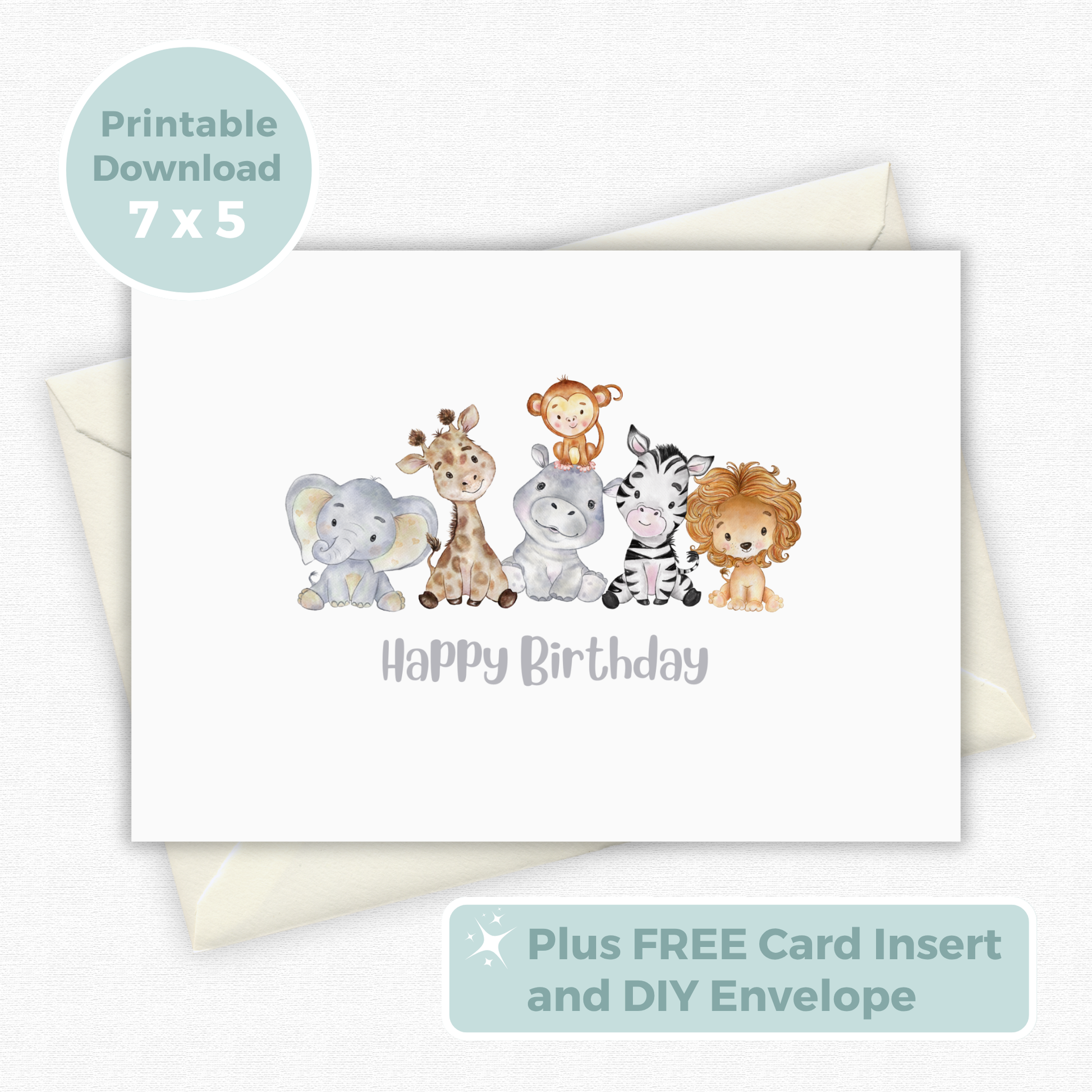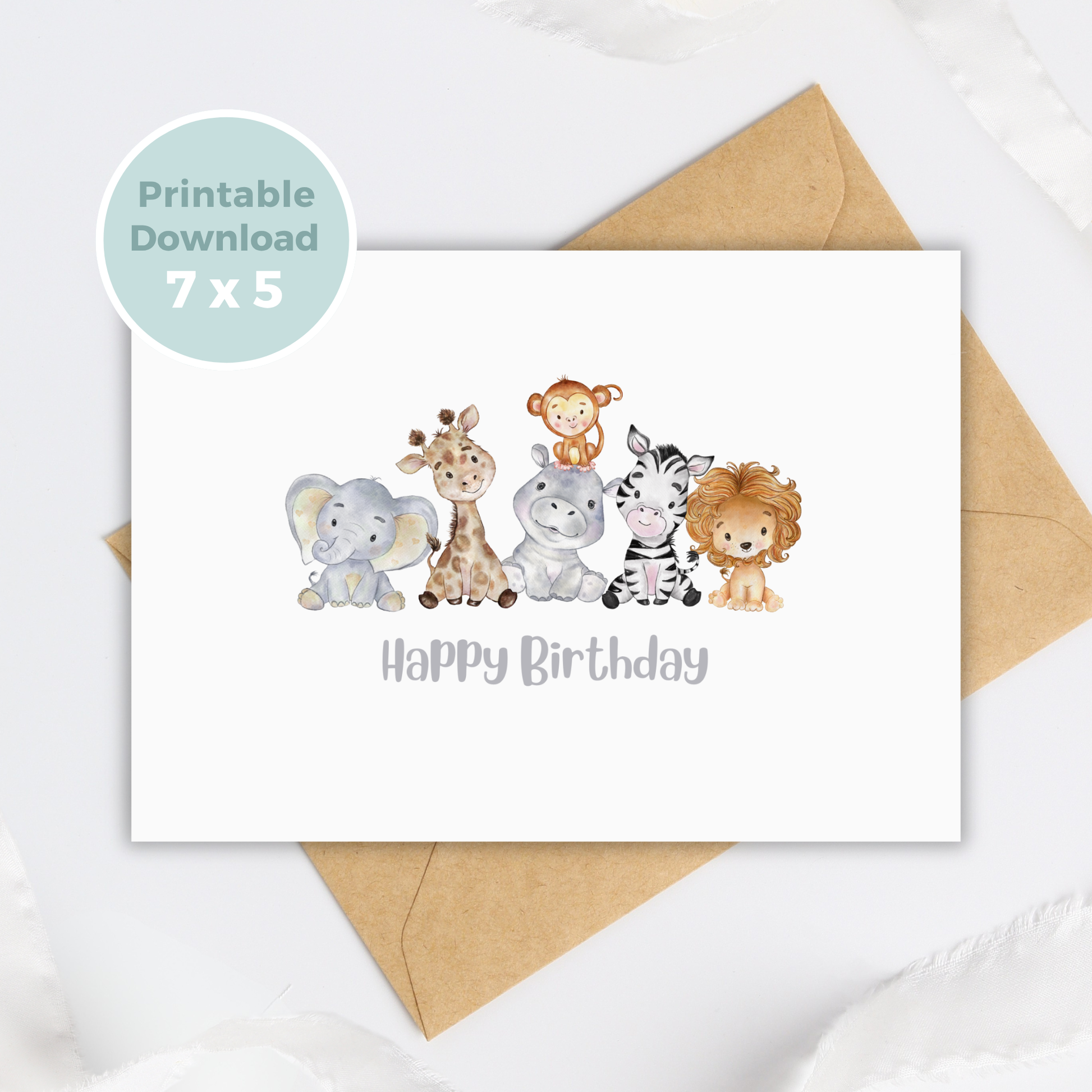 Printable Birthday Card with Jungle Animals, featuring a charming and Cute Safari Watercolour Birthday Card design.