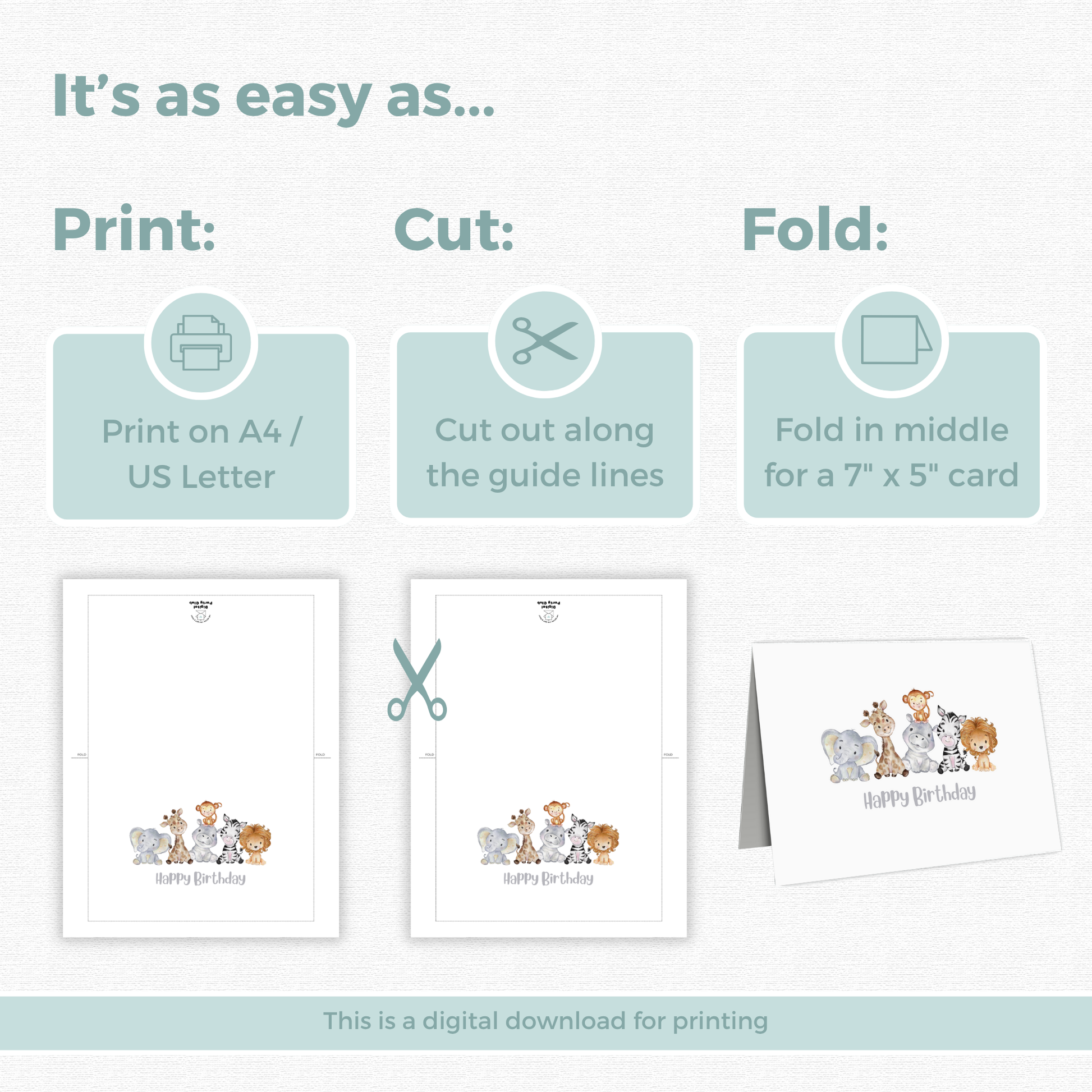 Printable Birthday Card - Safari Animals