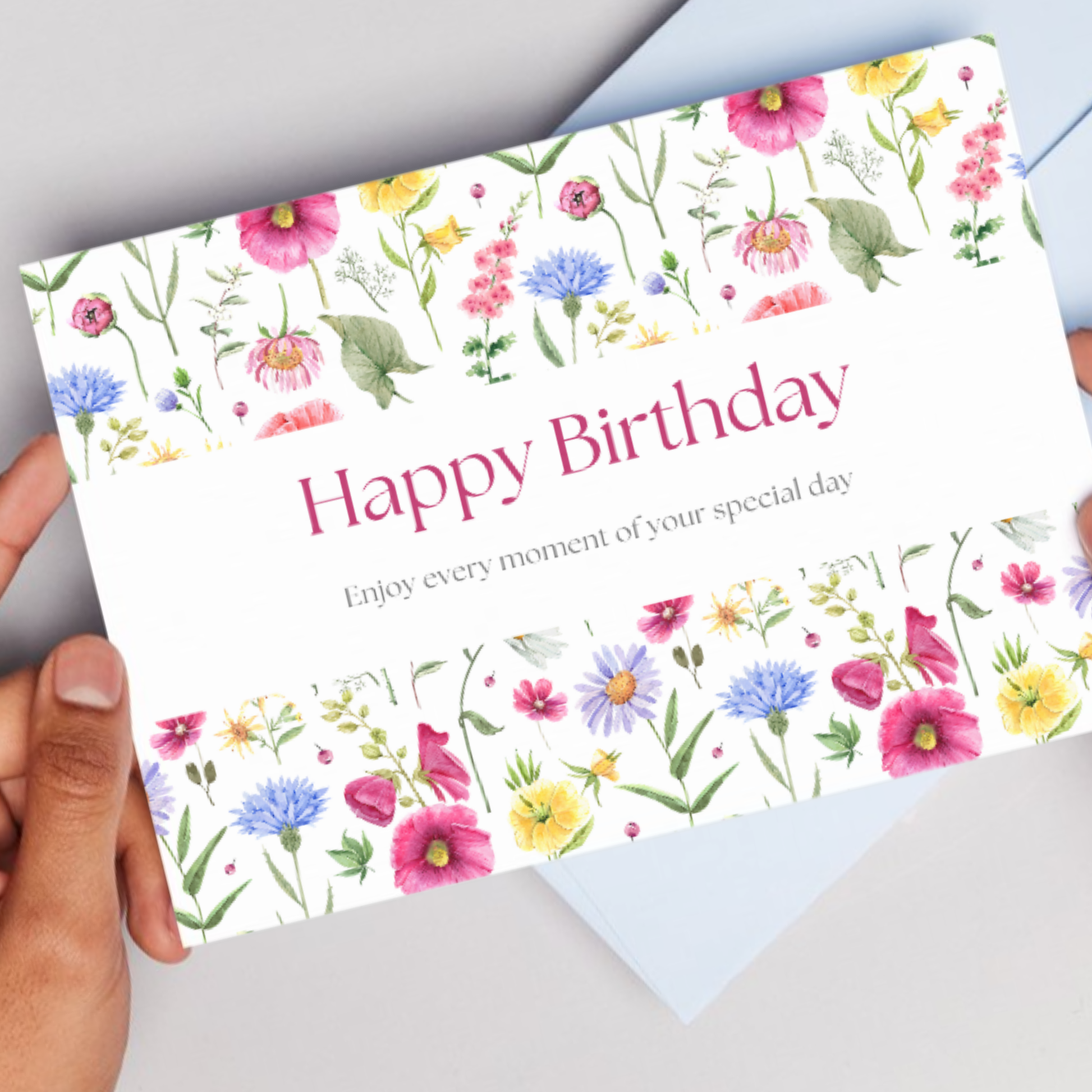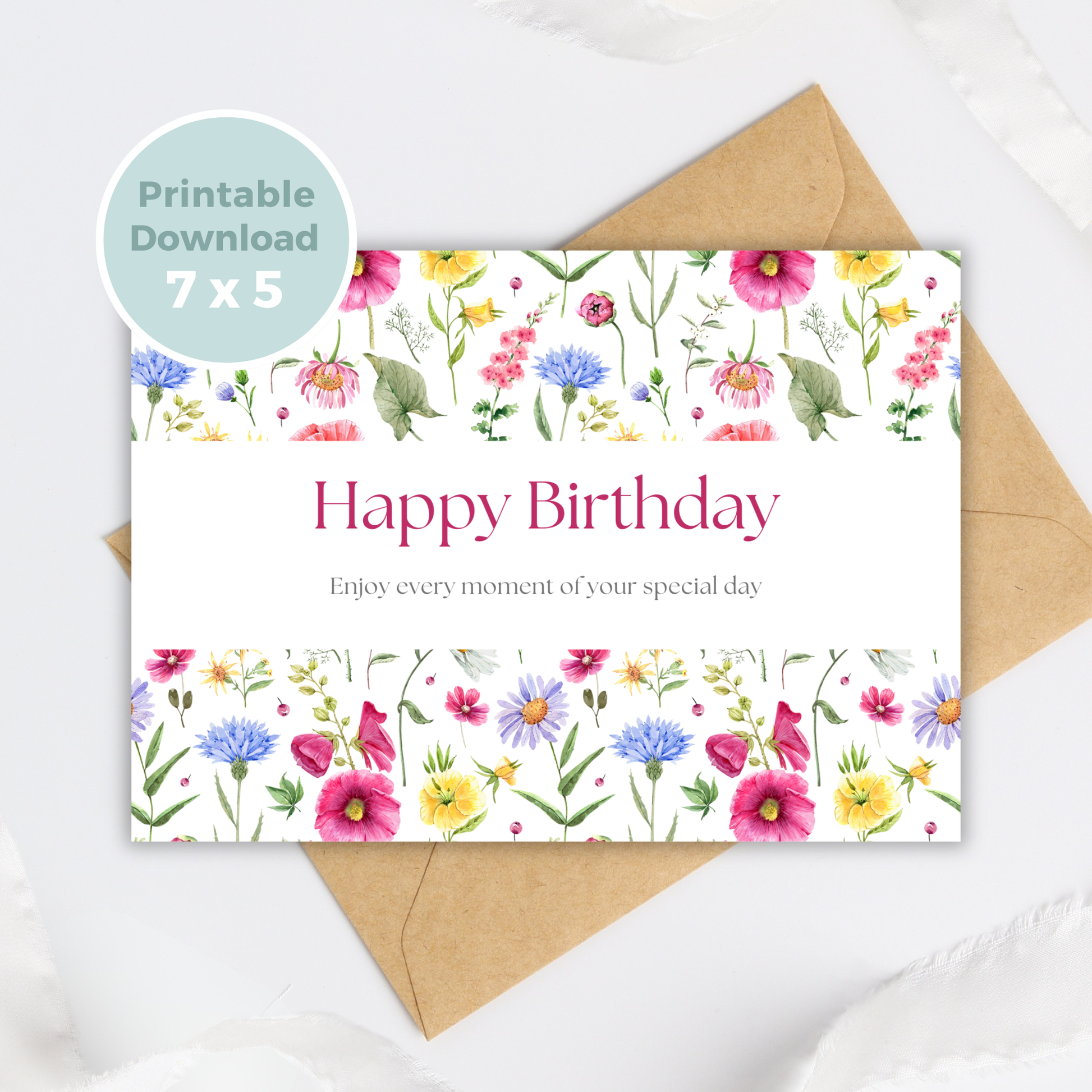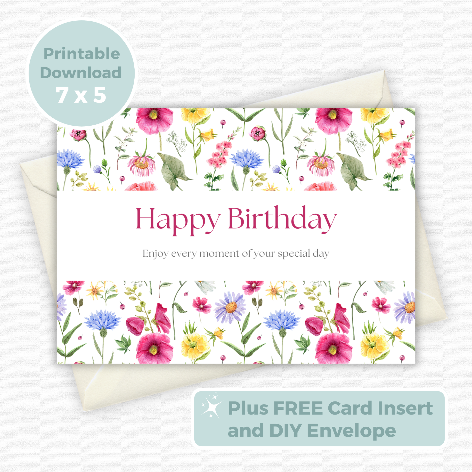 Celebrate a loved one's special day with our Floral Printable Birthday Card. This charming and vibrant floral design is perfect for spreading joy and well wishes.