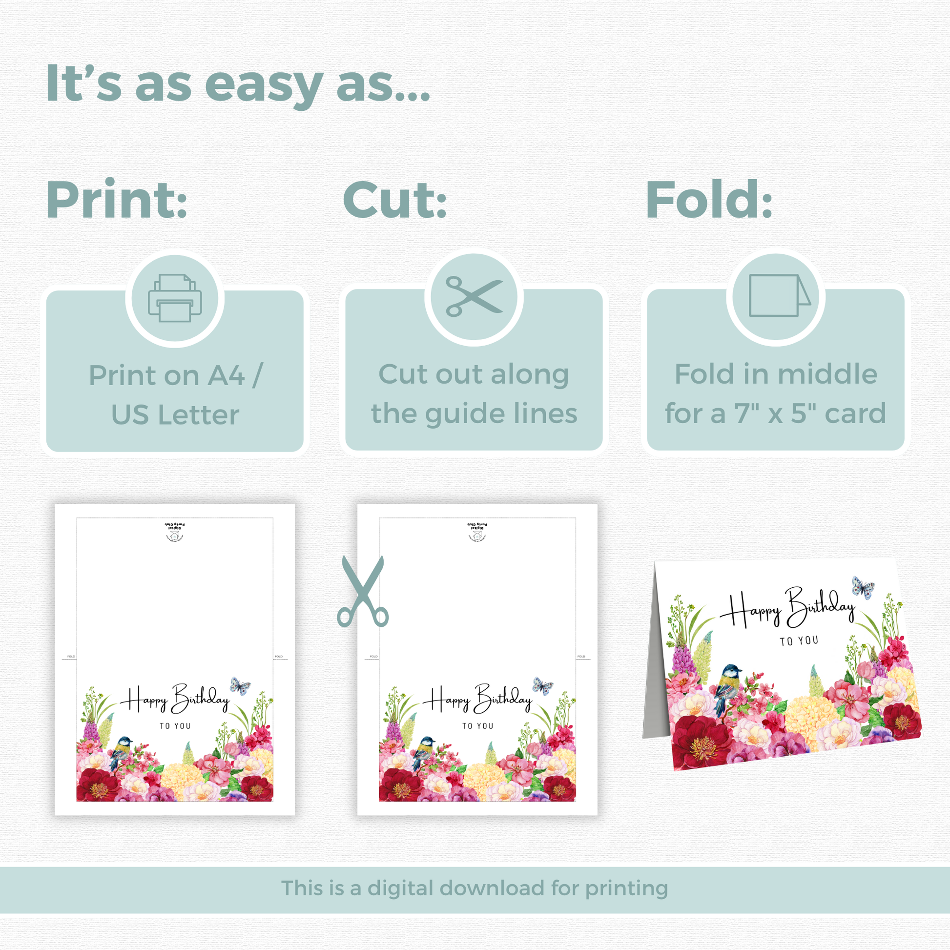 1 x PDF Birthday Card - 7 x 5 Folded Card