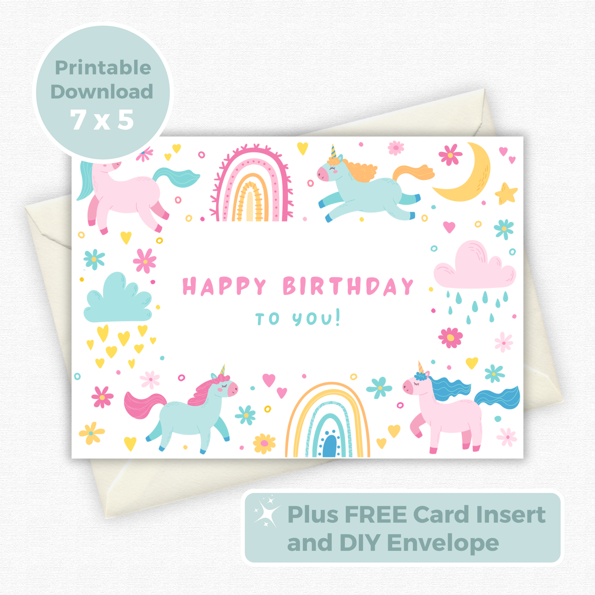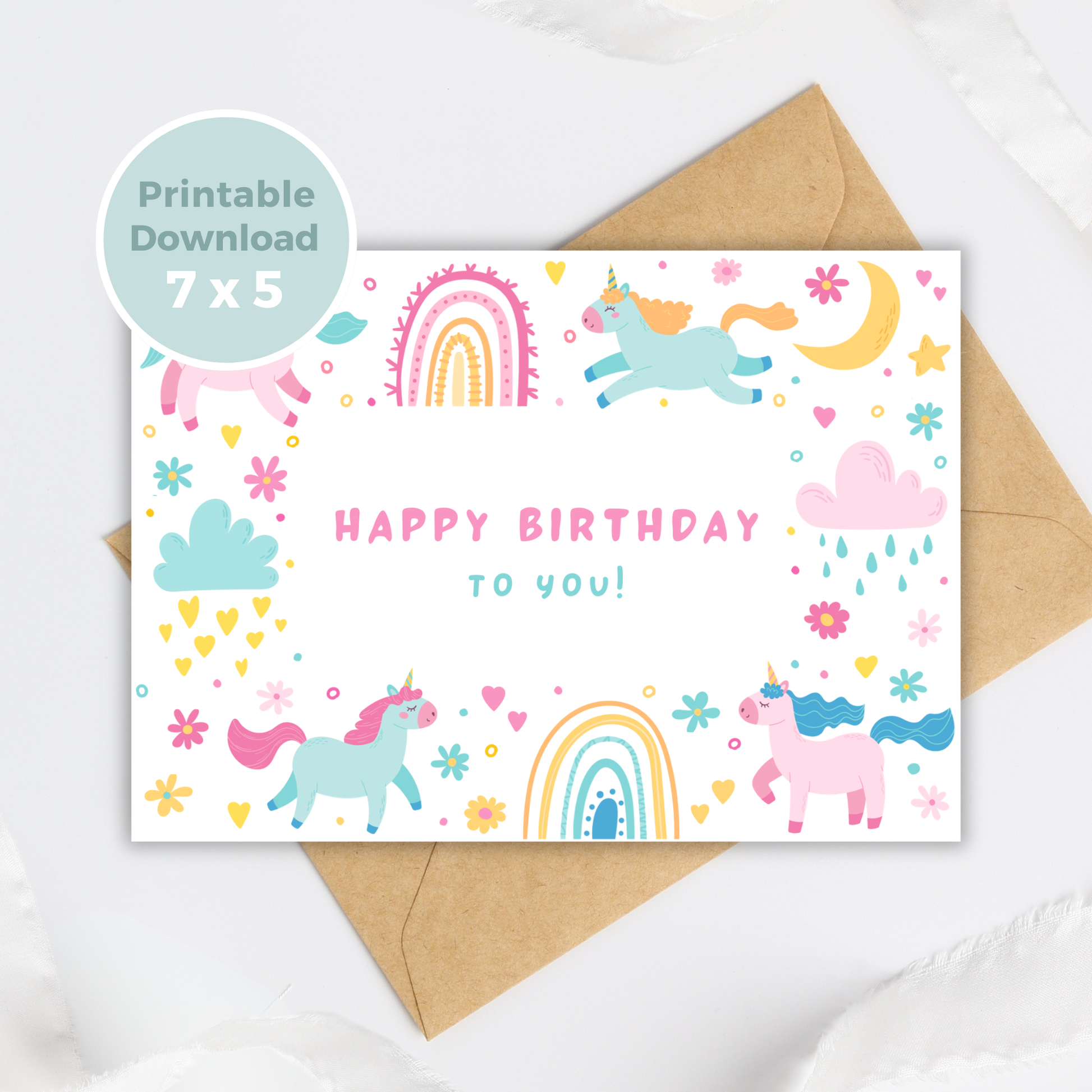 Send a touch of magic with our printable birthday card featuring cute unicorns, perfect for making someone's special day even more enchanting!