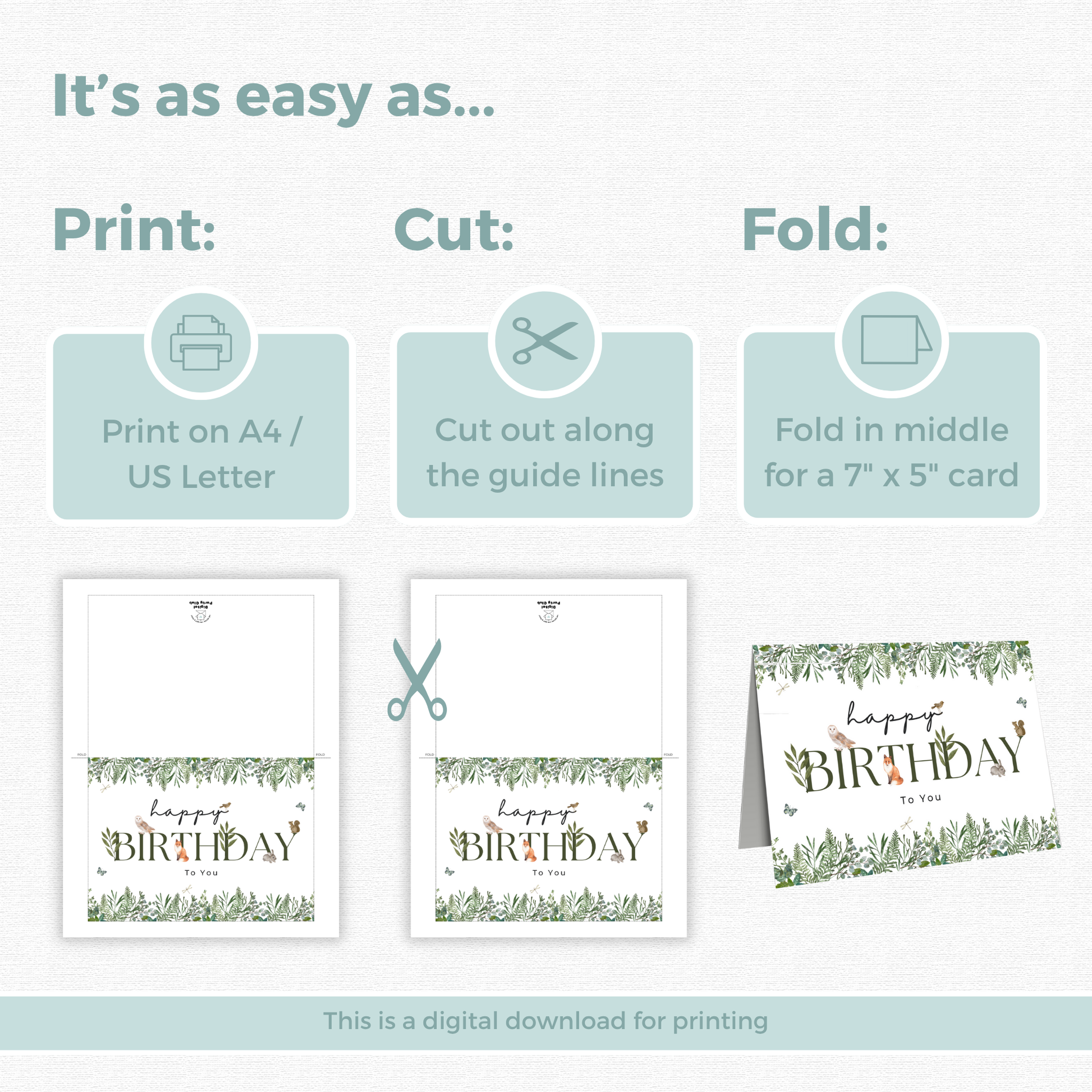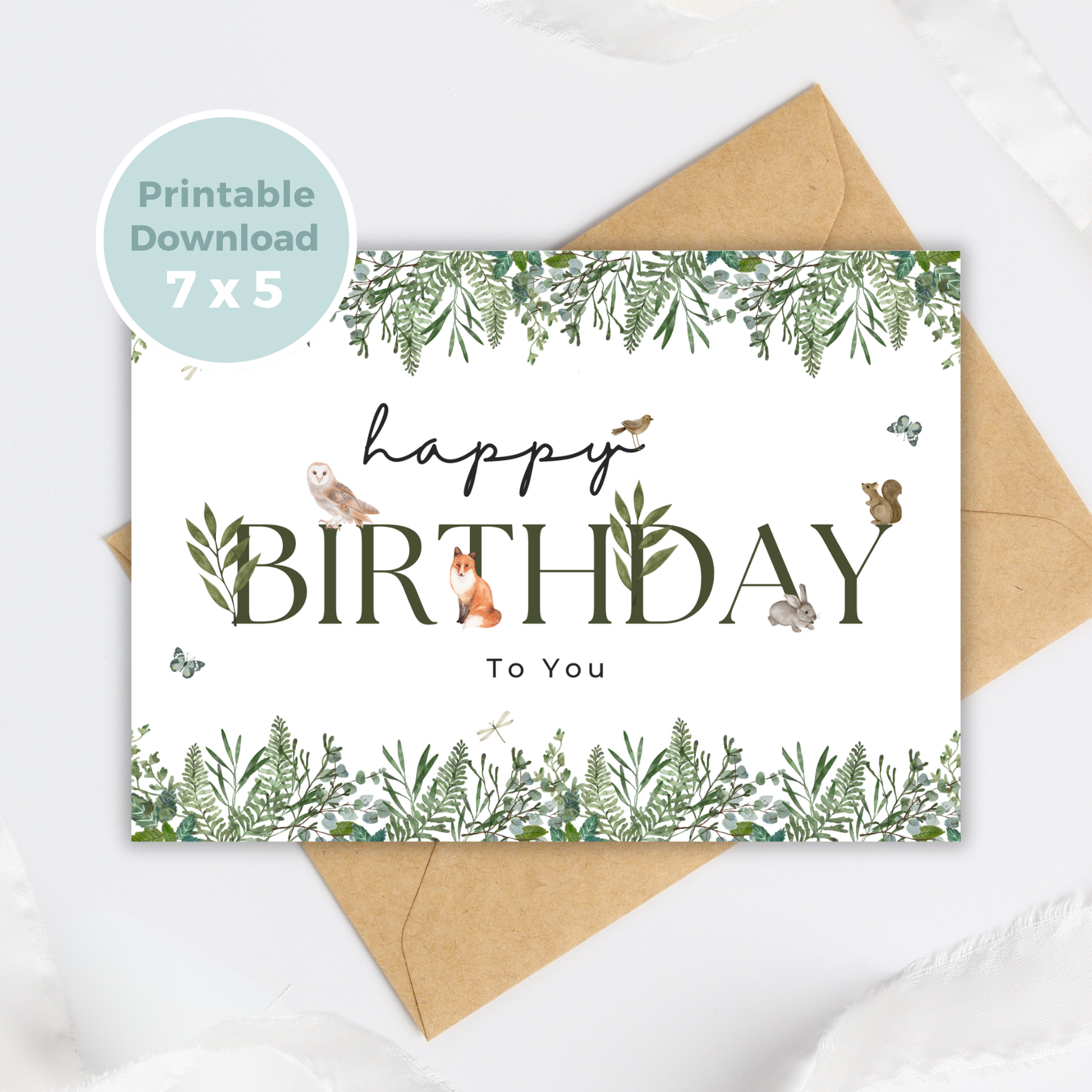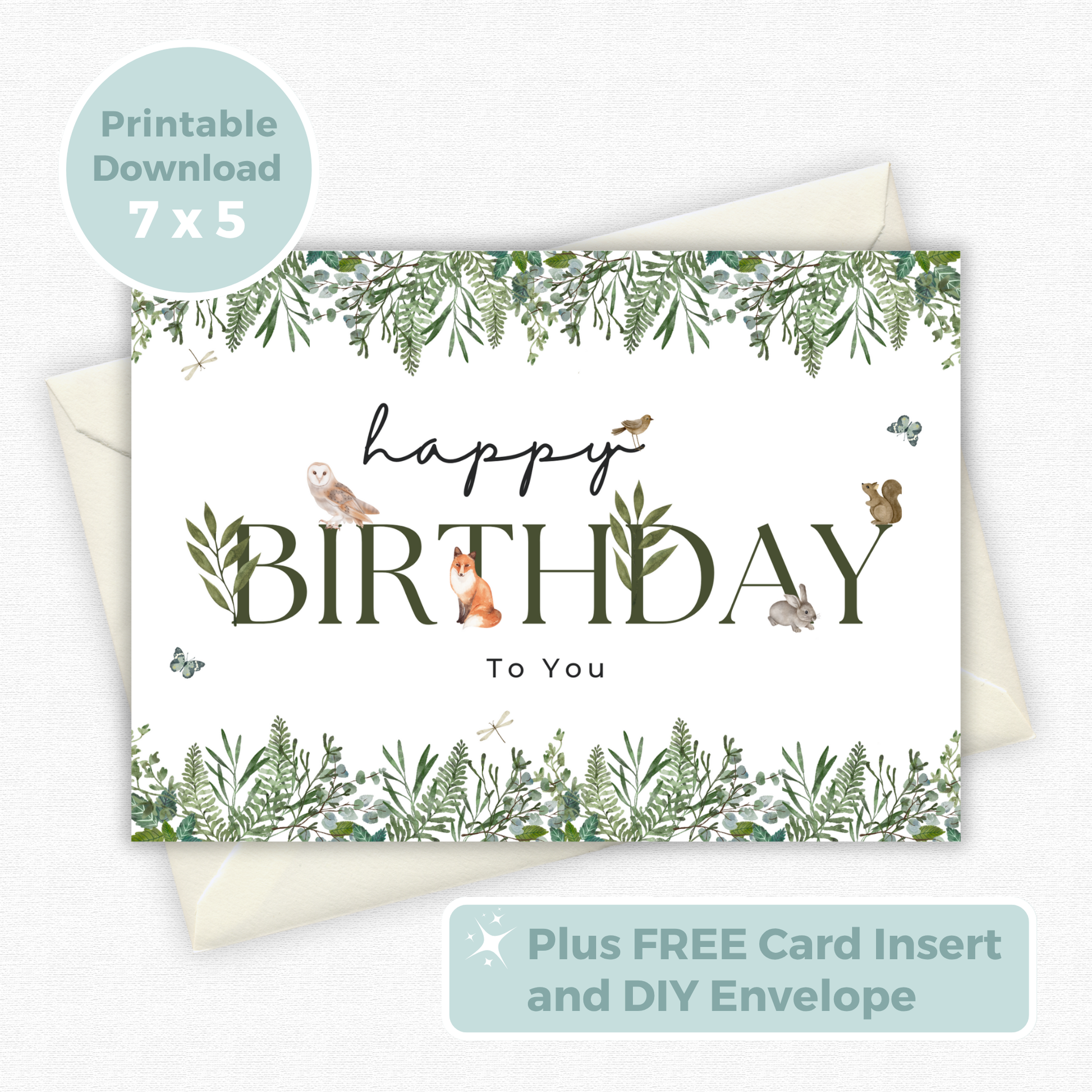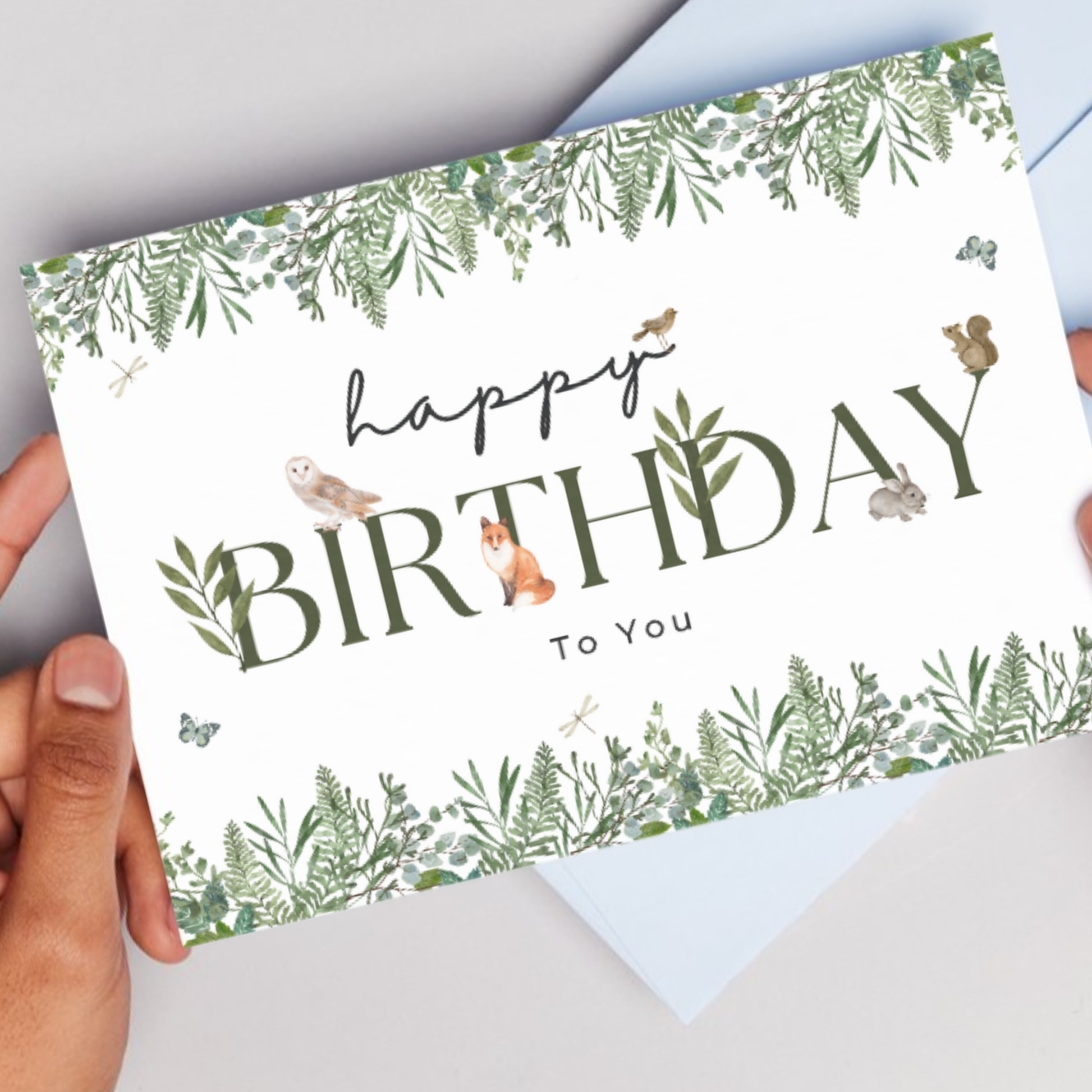 This charming woodland animals birthday card is sure to delight nature lovers and add a whimsical touch to any celebration, perfect for kids and adults alike.