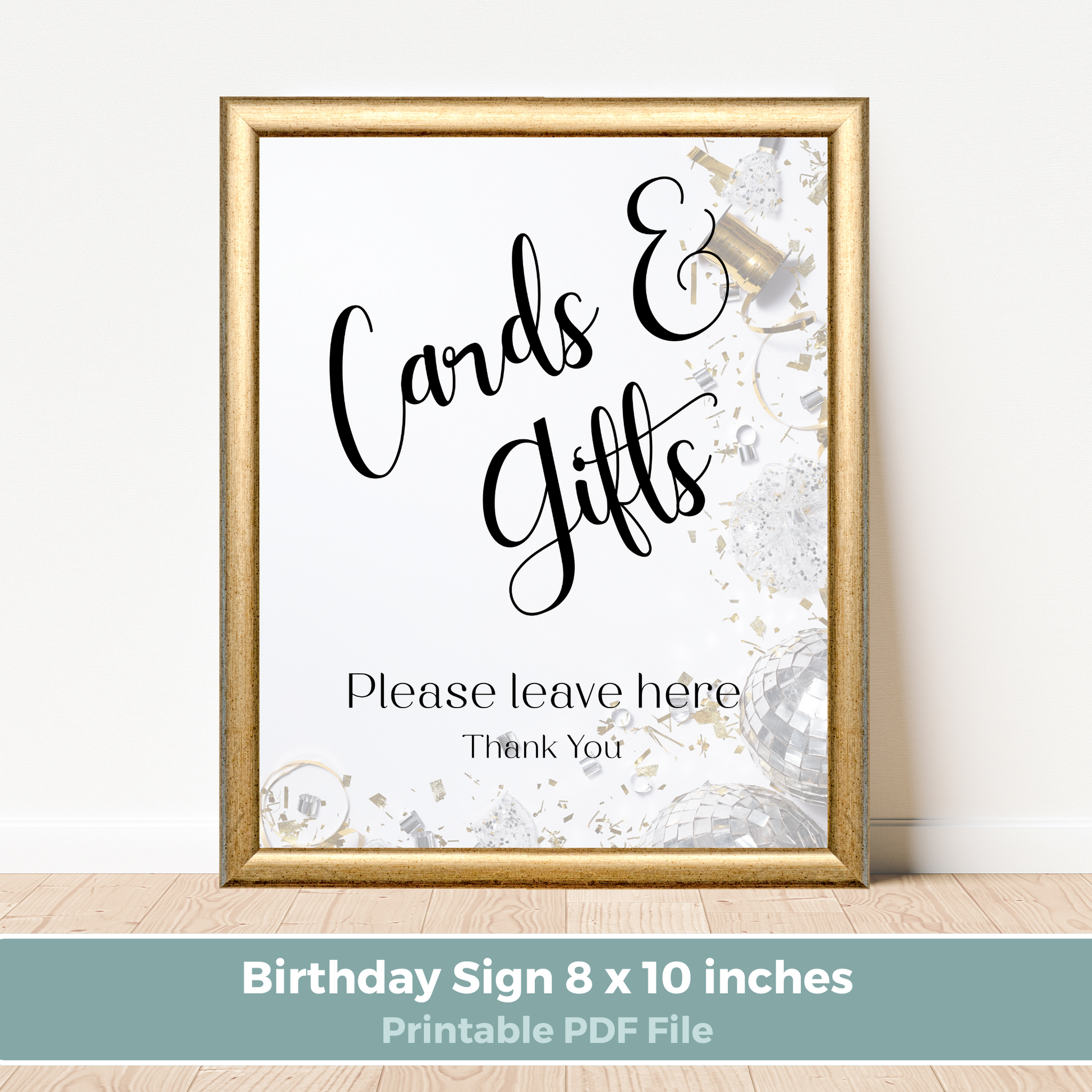 Printable Birthday Cards and Gifts Sign - Surprise Black