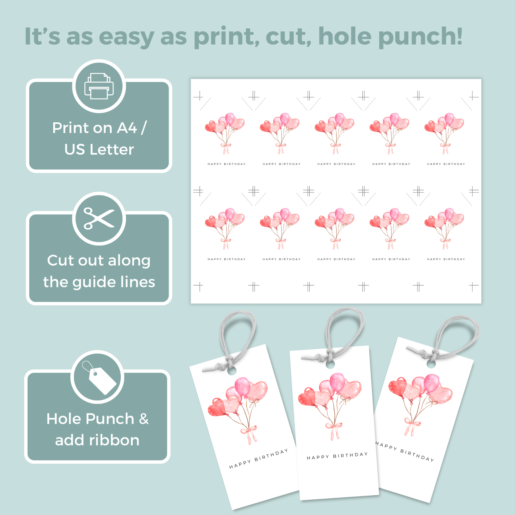 - Punch a hole and attach ribbon