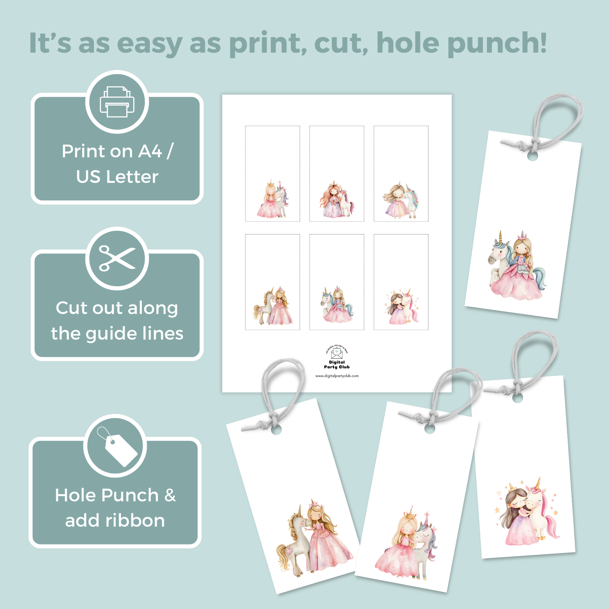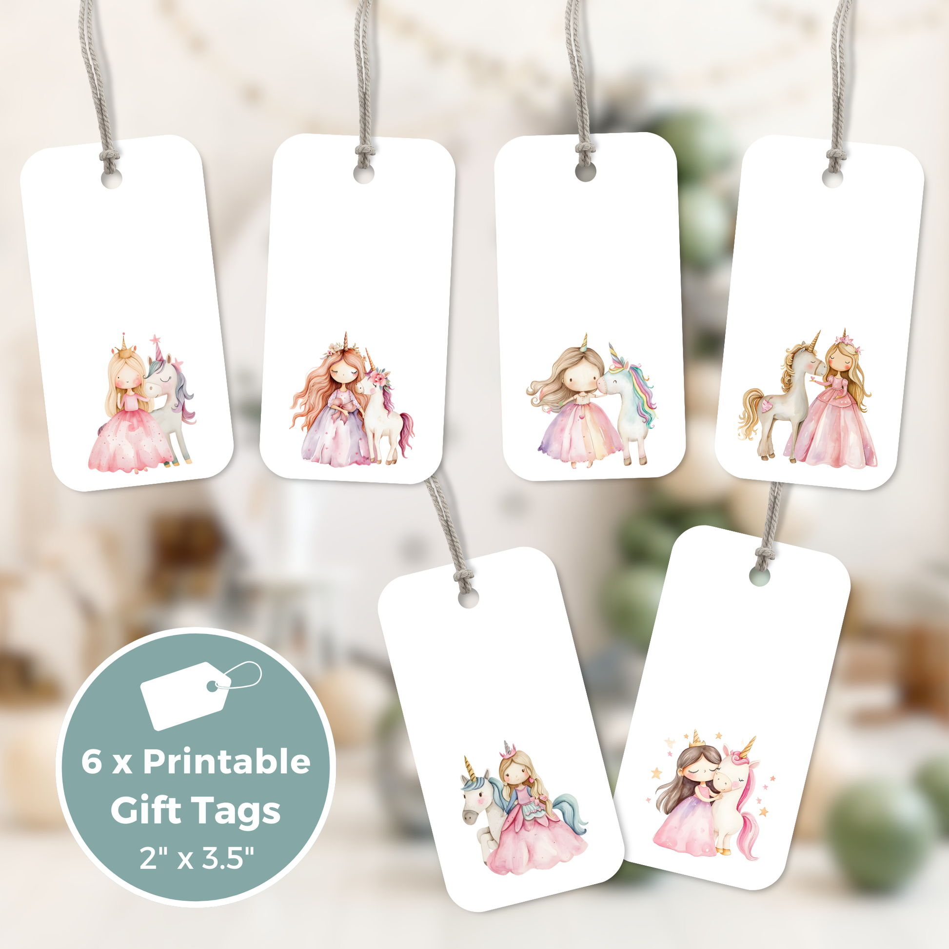 Printable Birthday Gift Tag Bundle - Princess Unicorn
