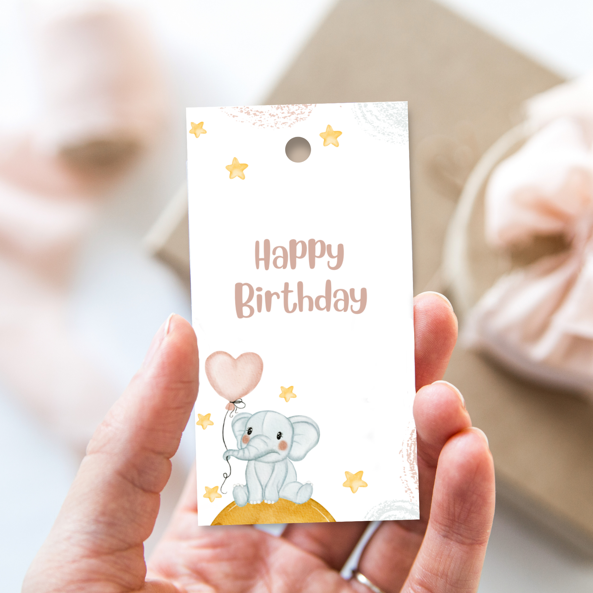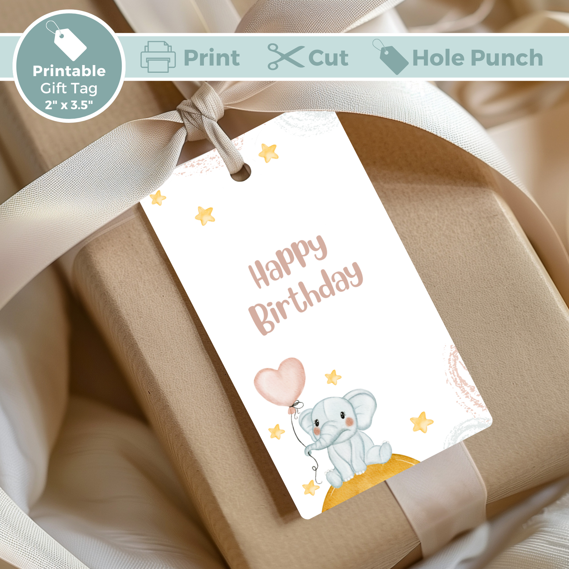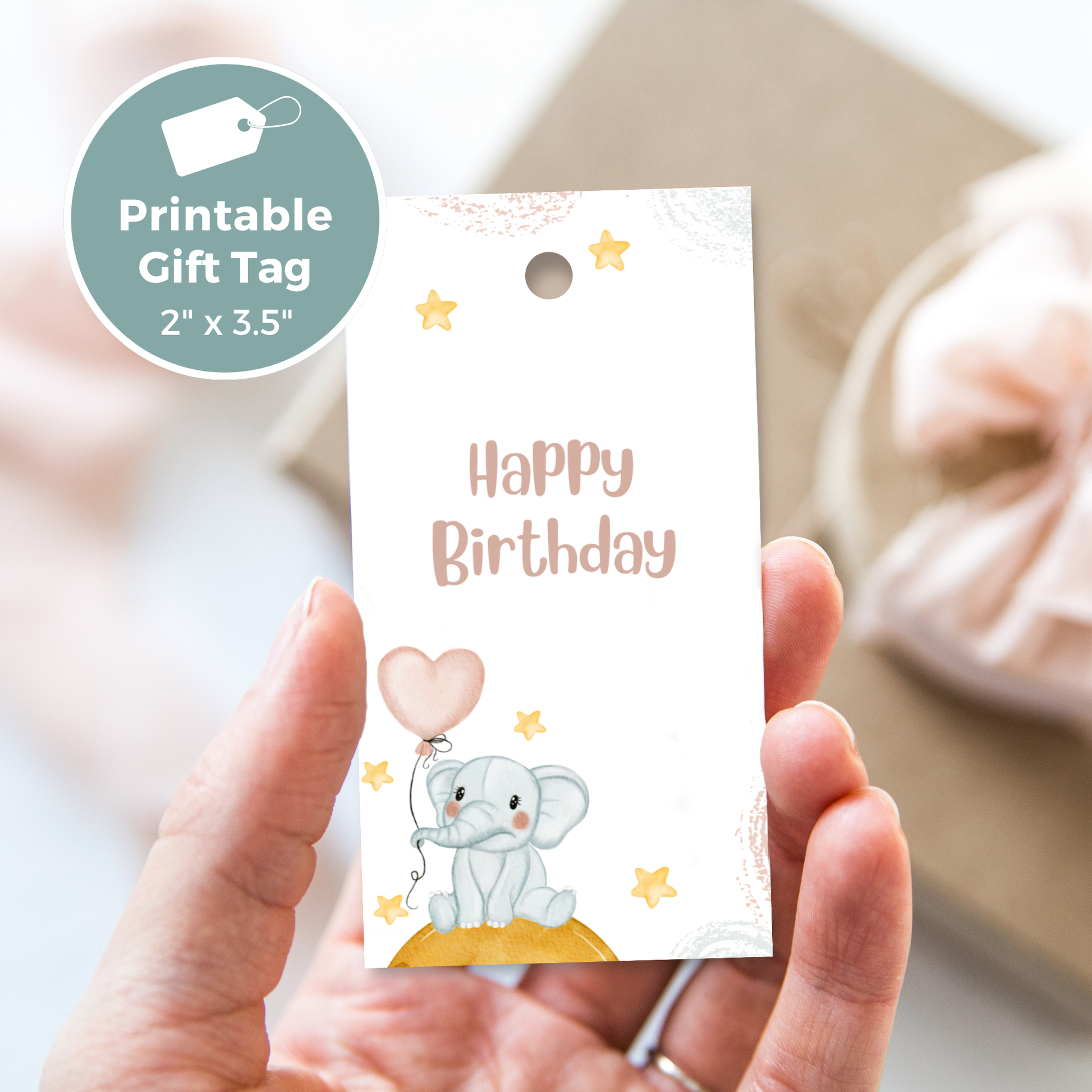 Printable Birthday Gift Tag - Elephant