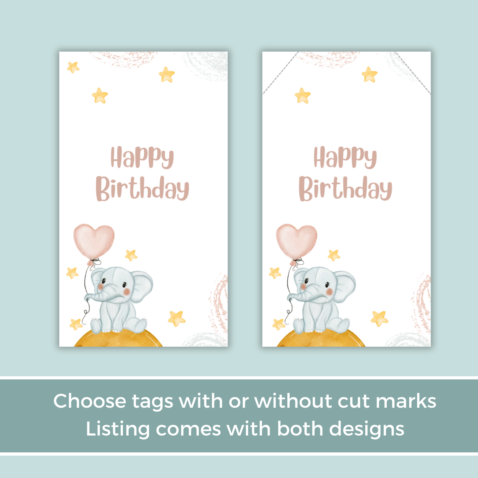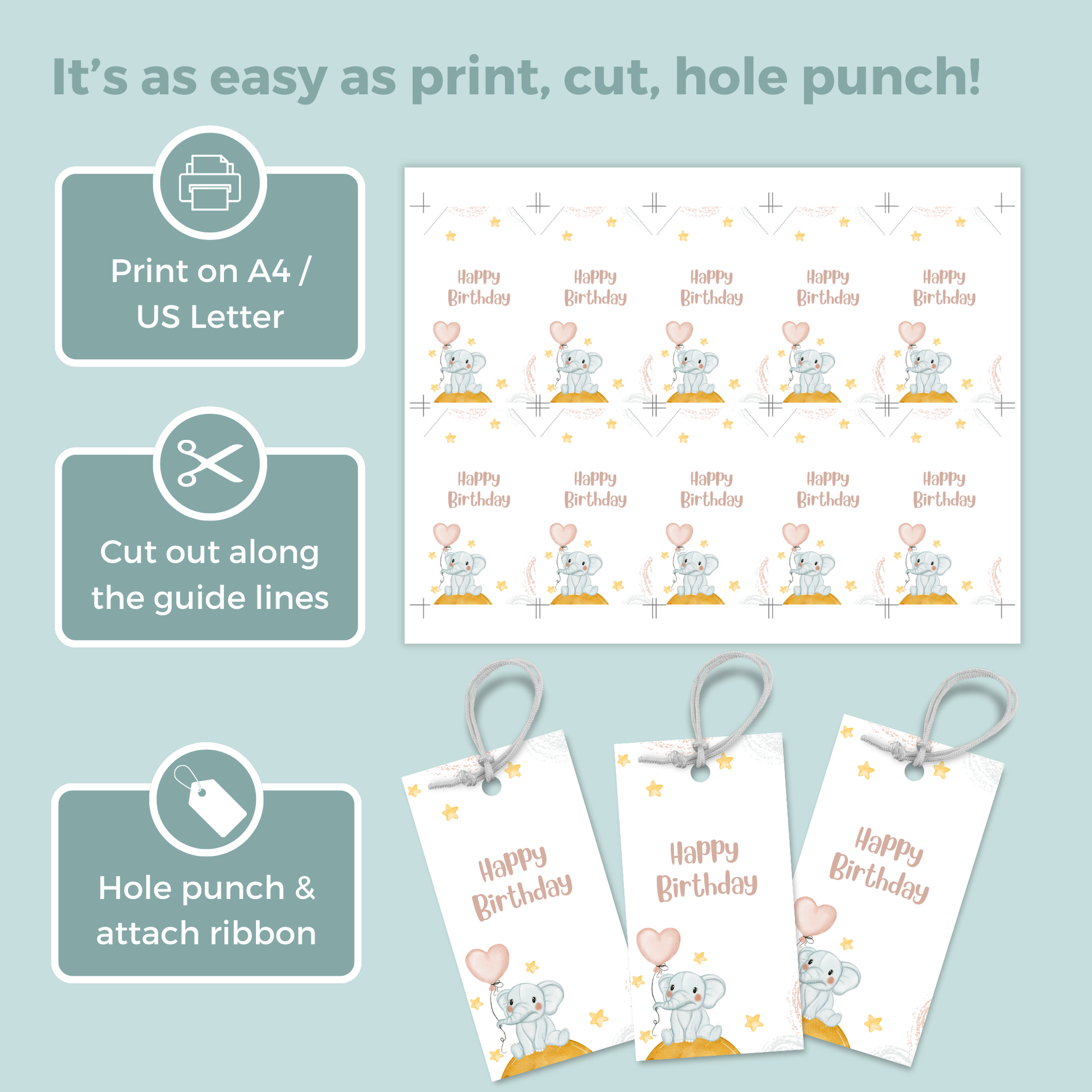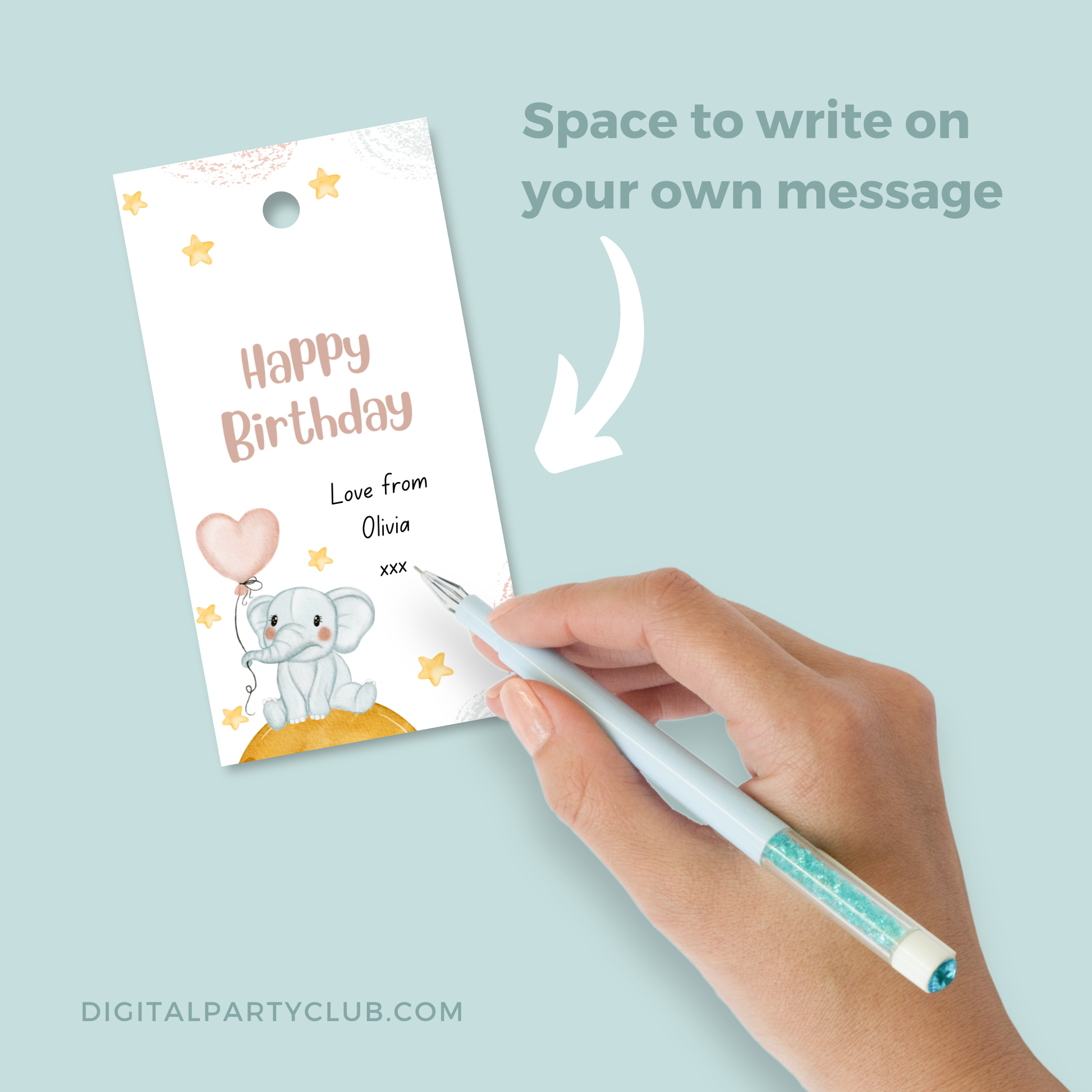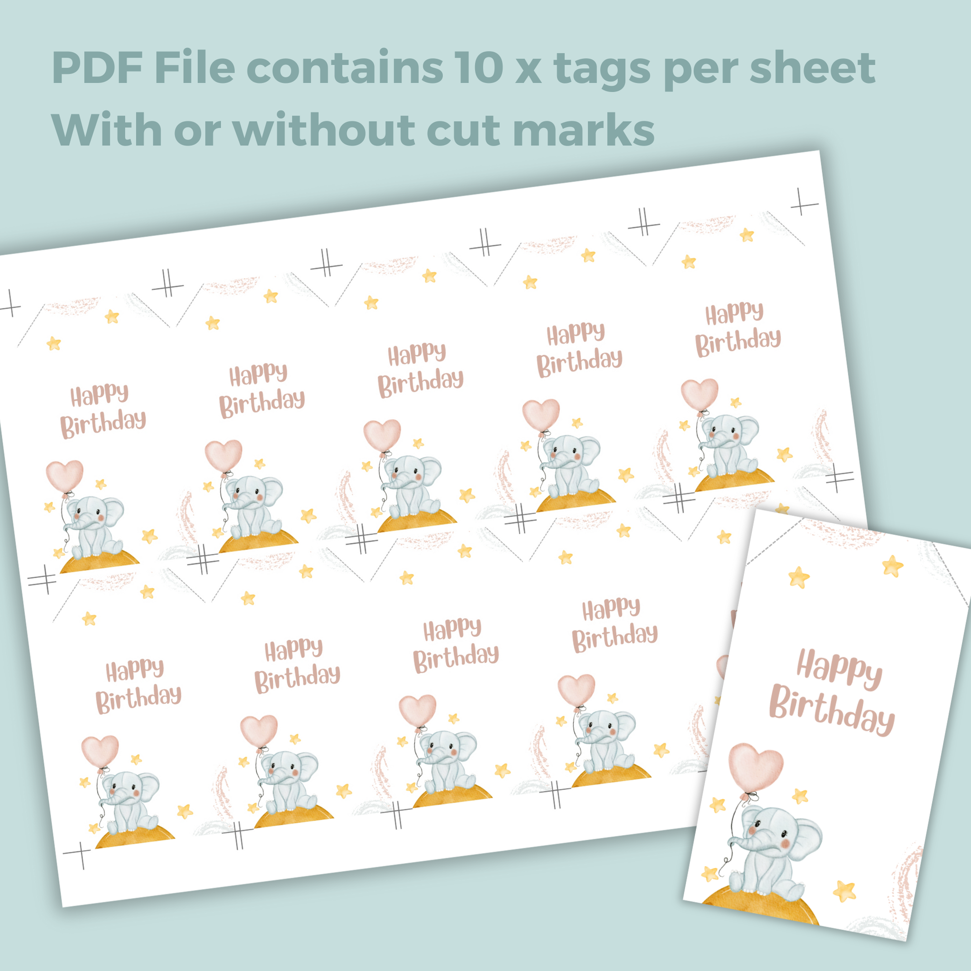 Printable Birthday Gift Tag - Elephant