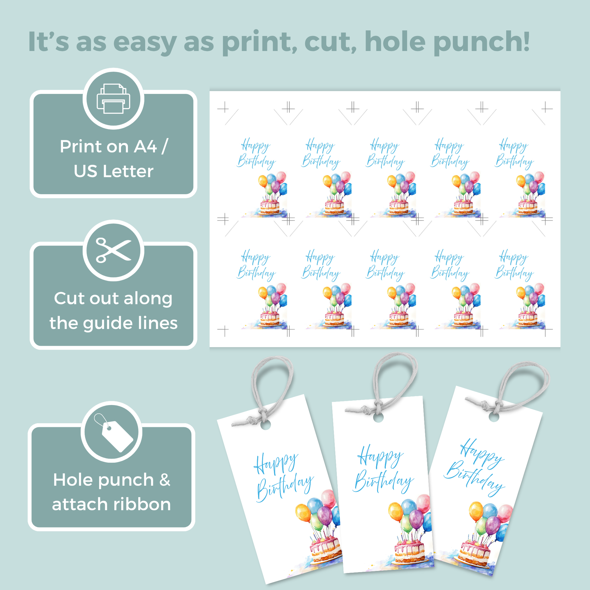 - Punch a hole and attach ribbon