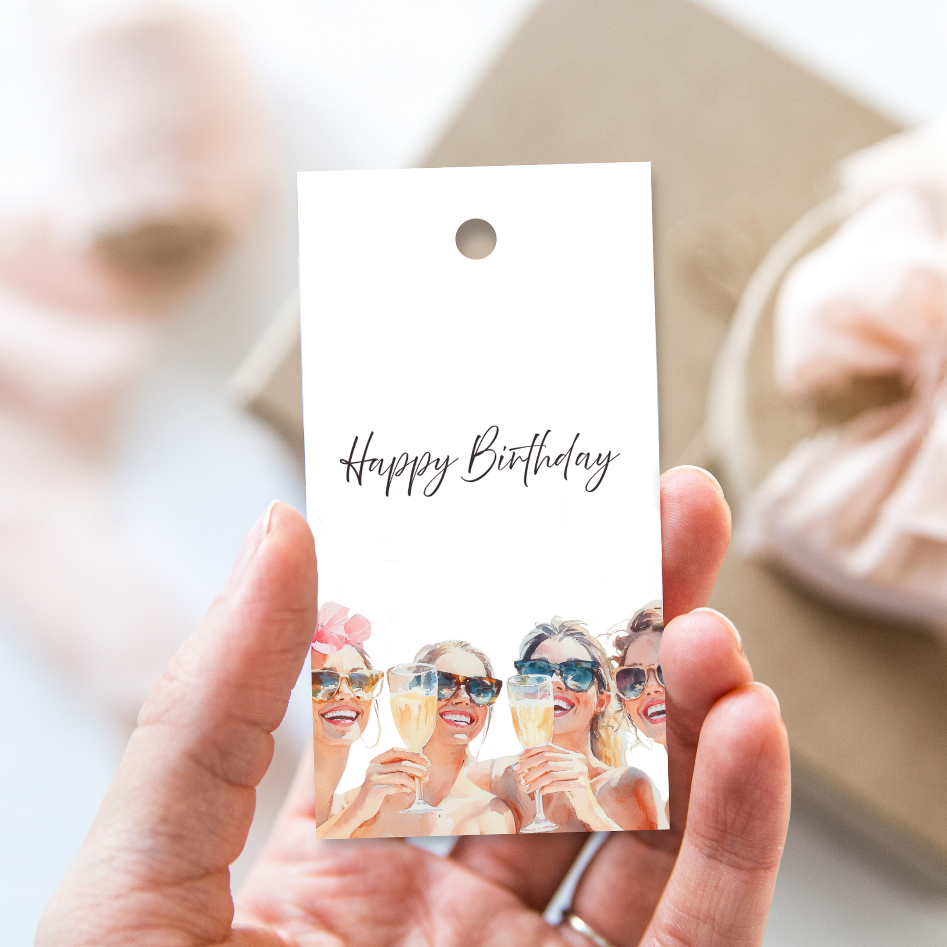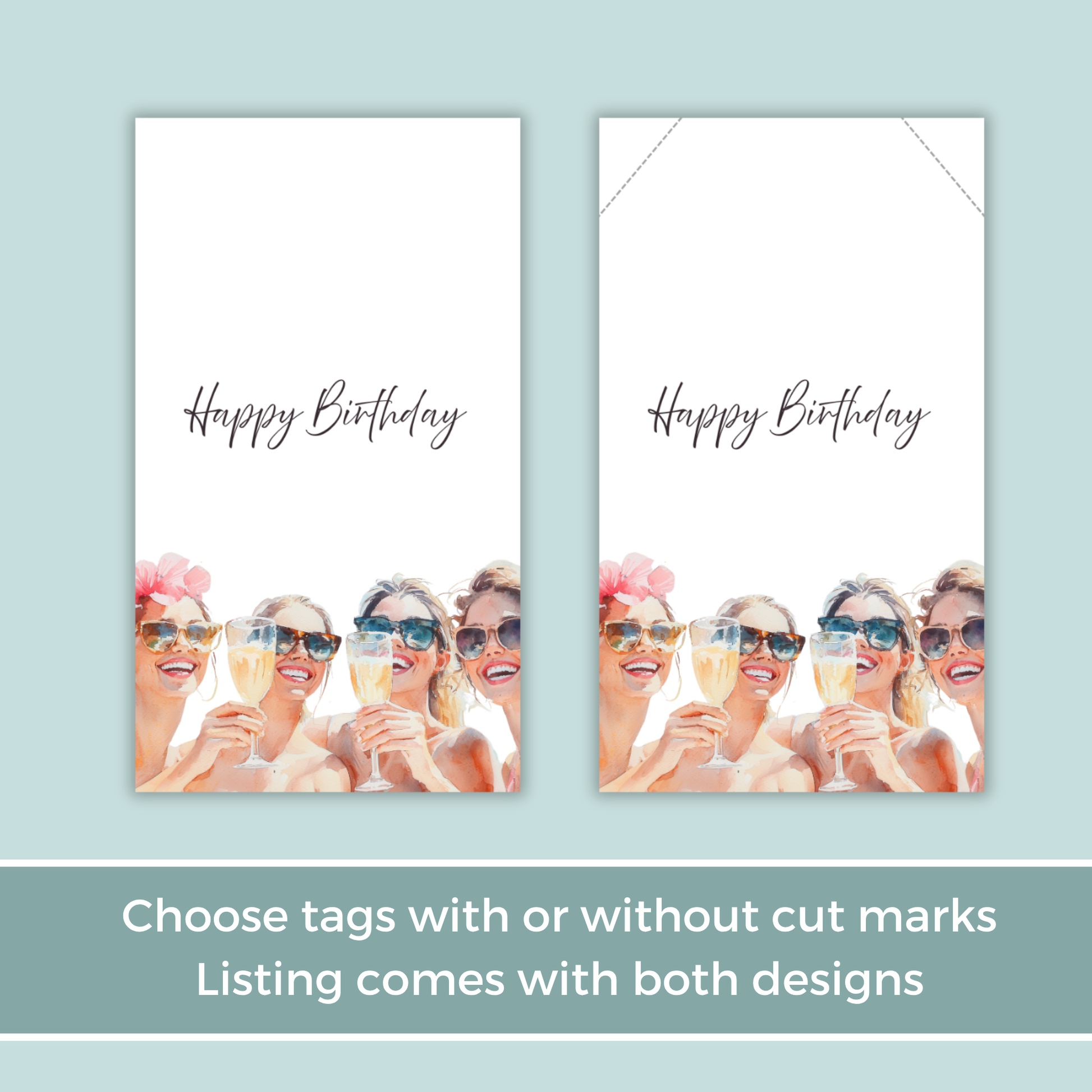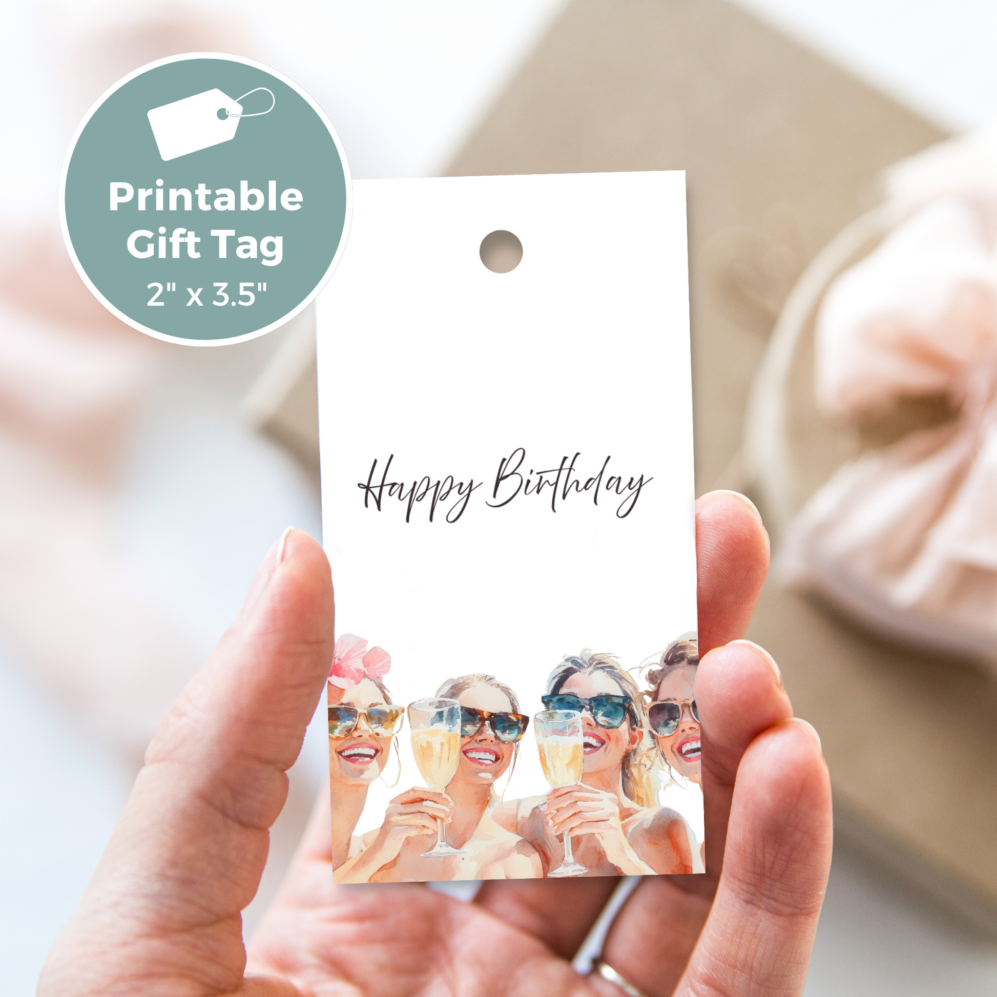 Printable Birthday Gift Tag - Ladies Drinking Champagne