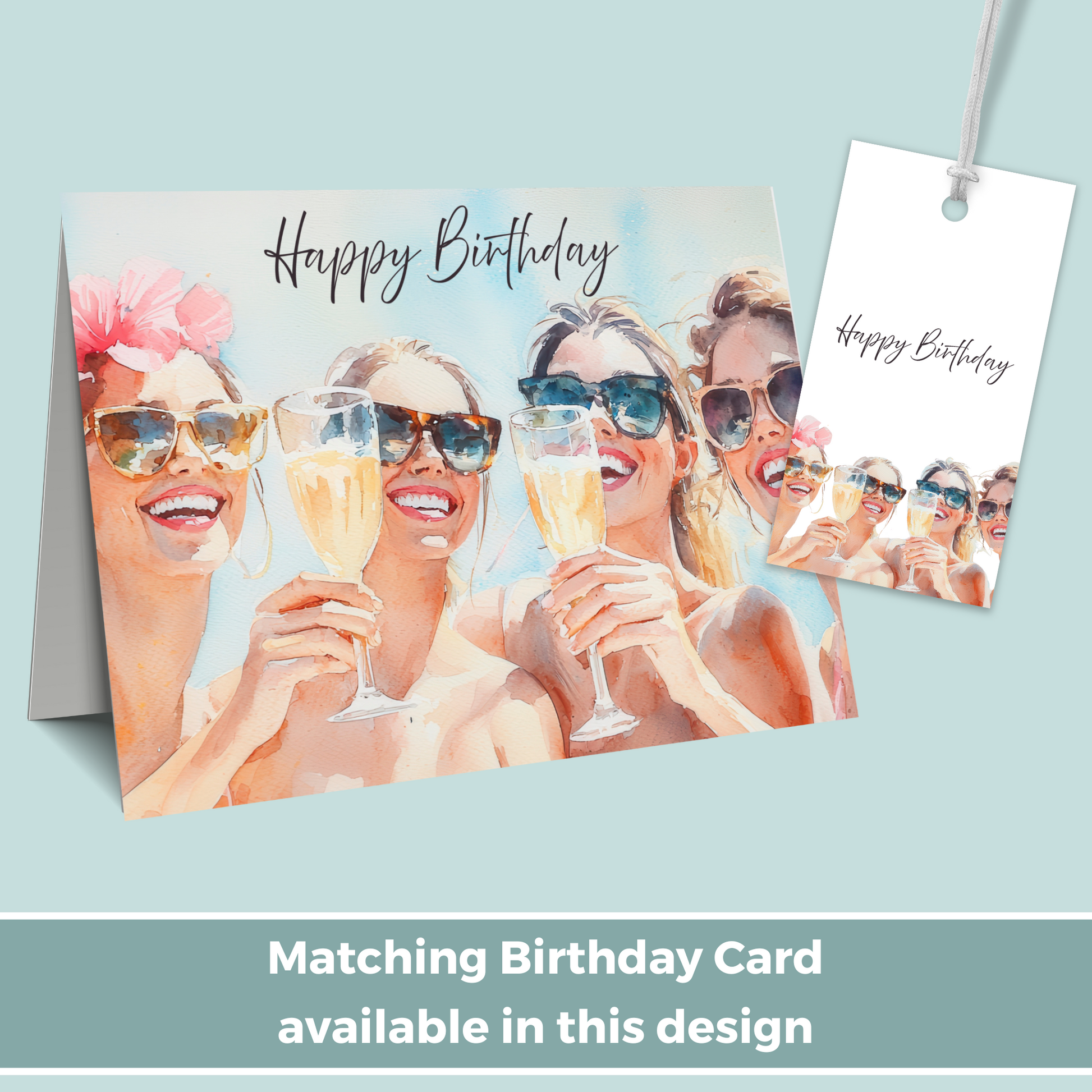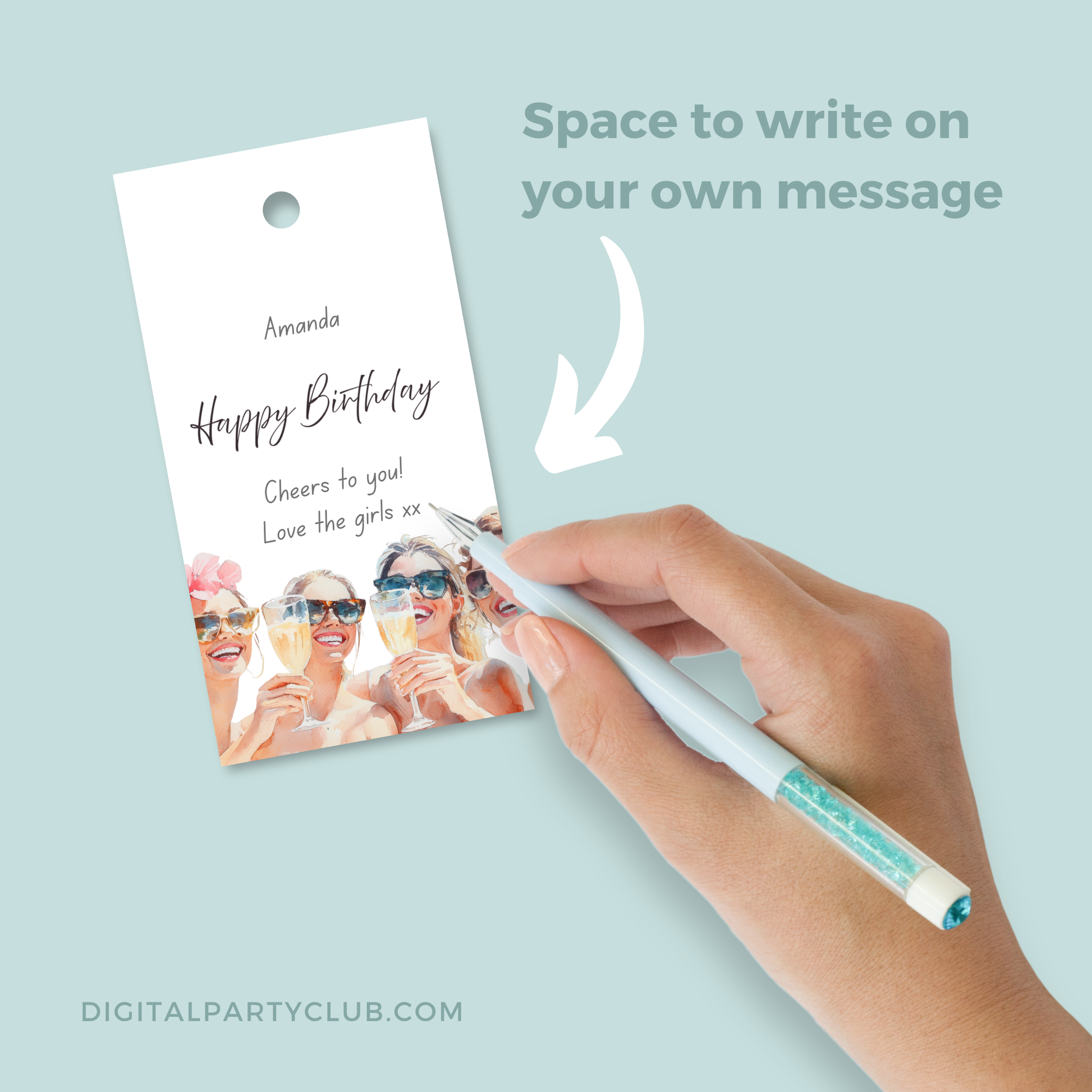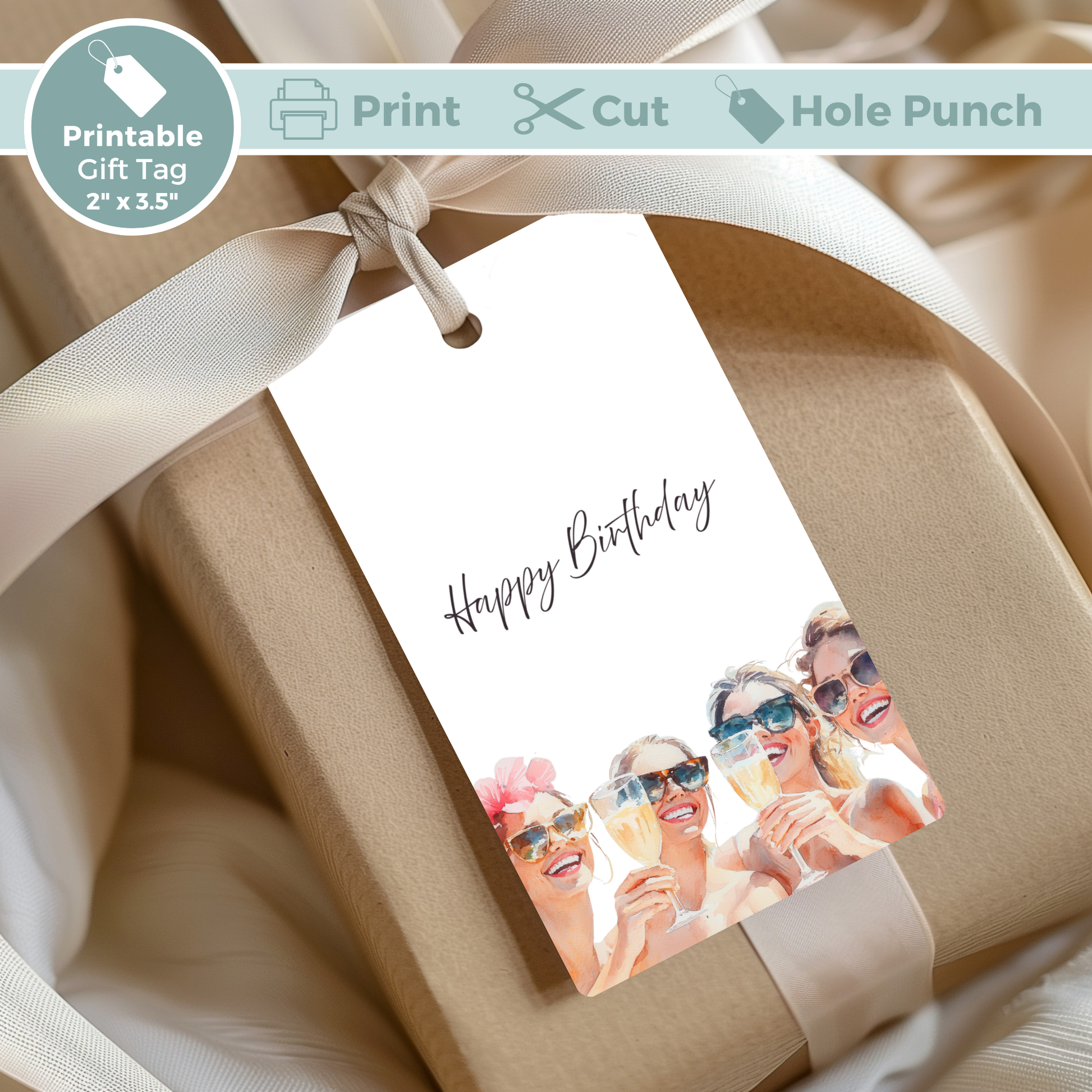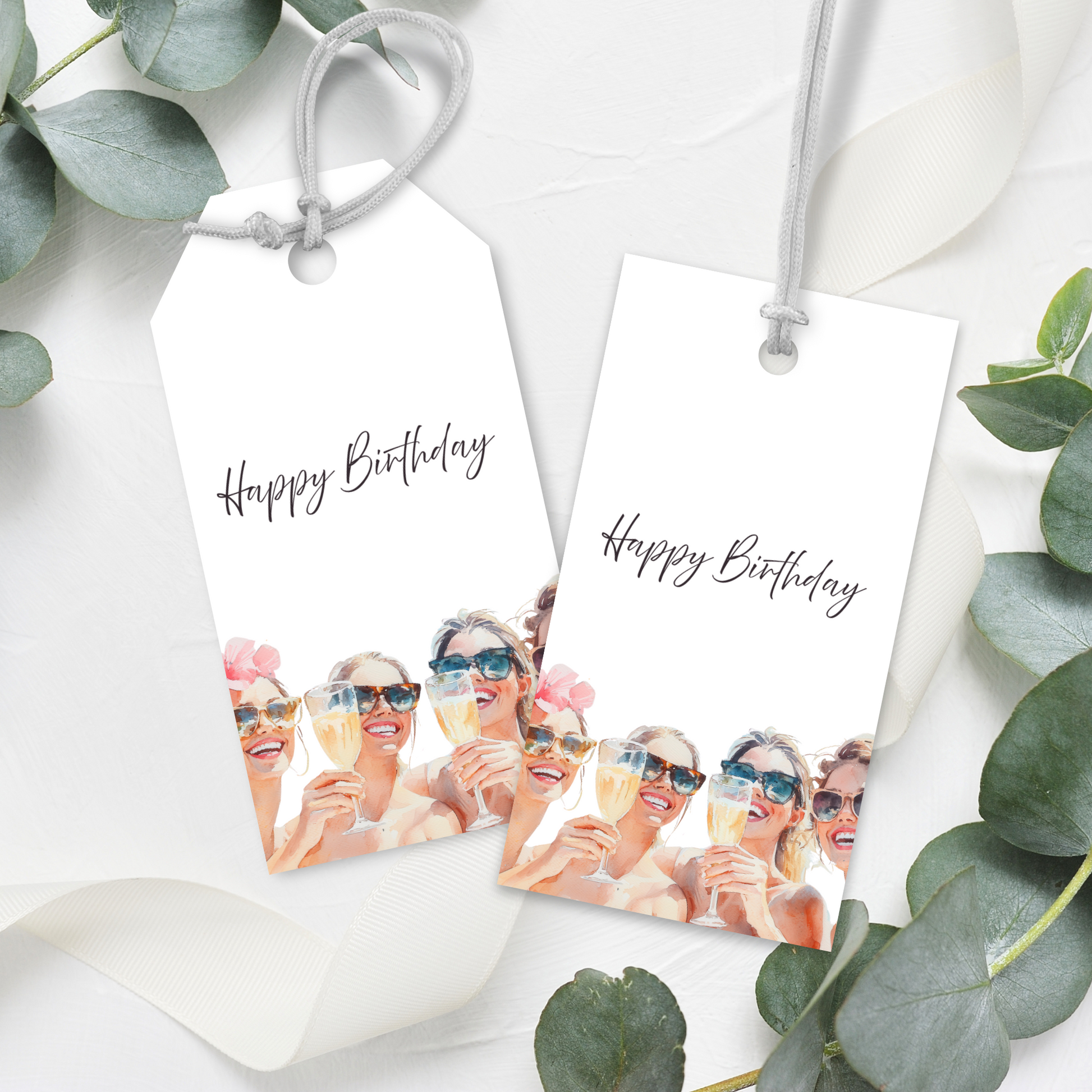 Printable Birthday Gift Tag - Ladies Drinking Champagne