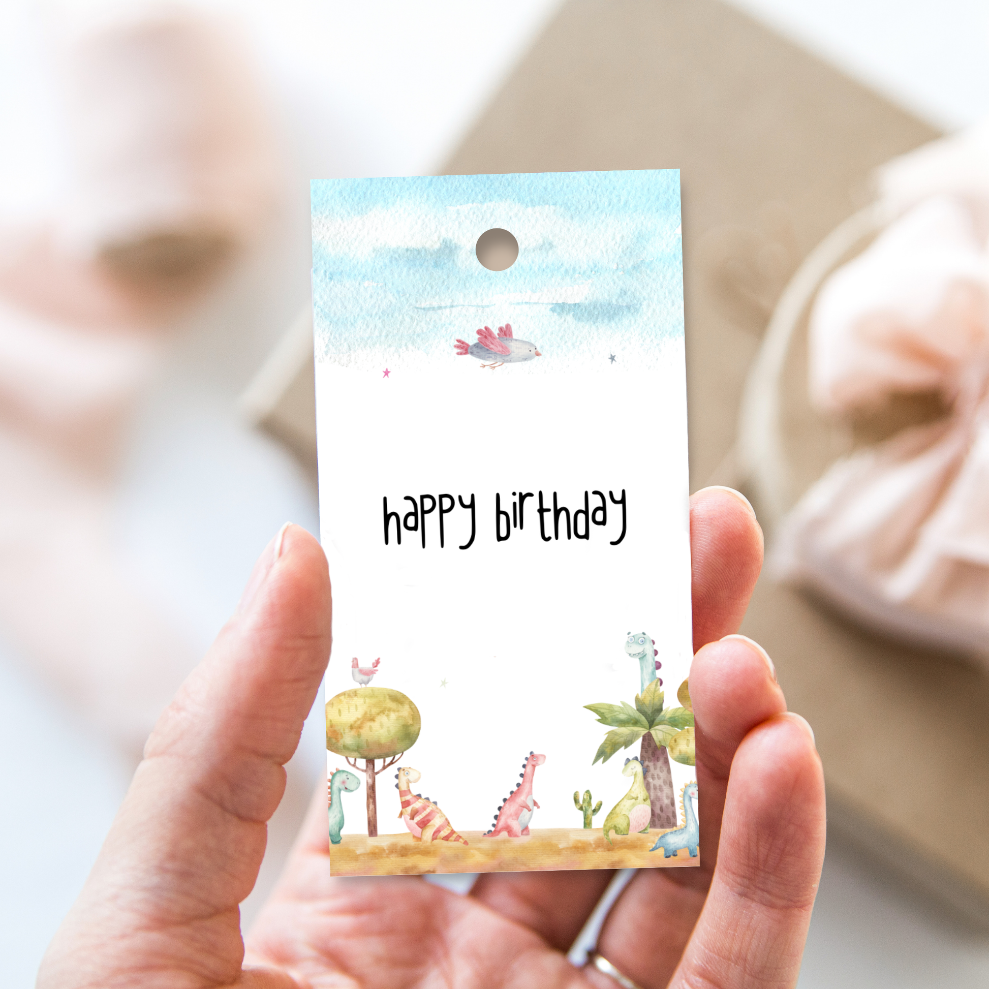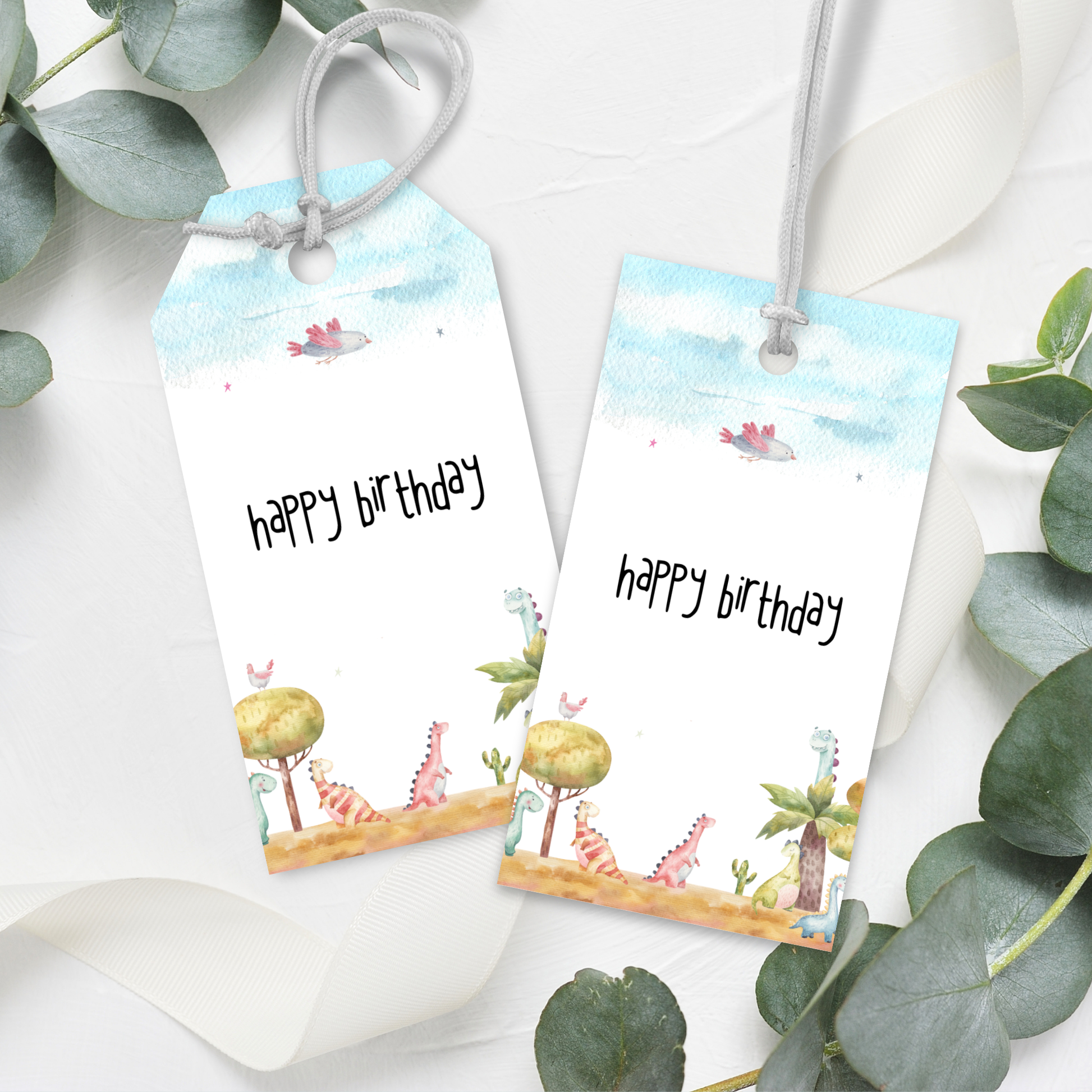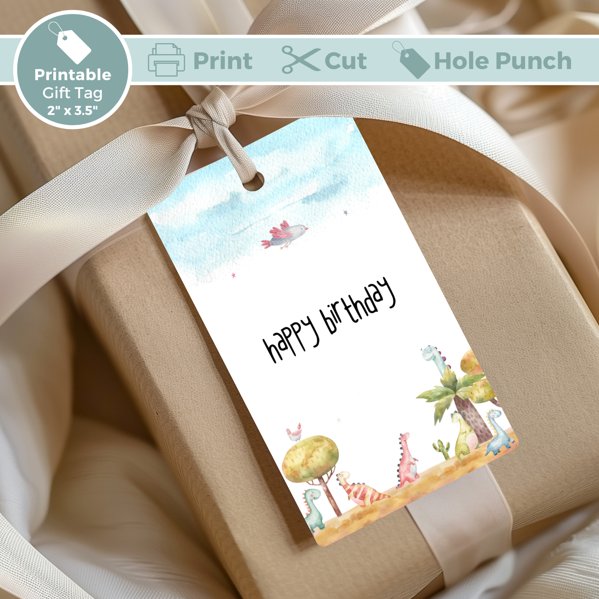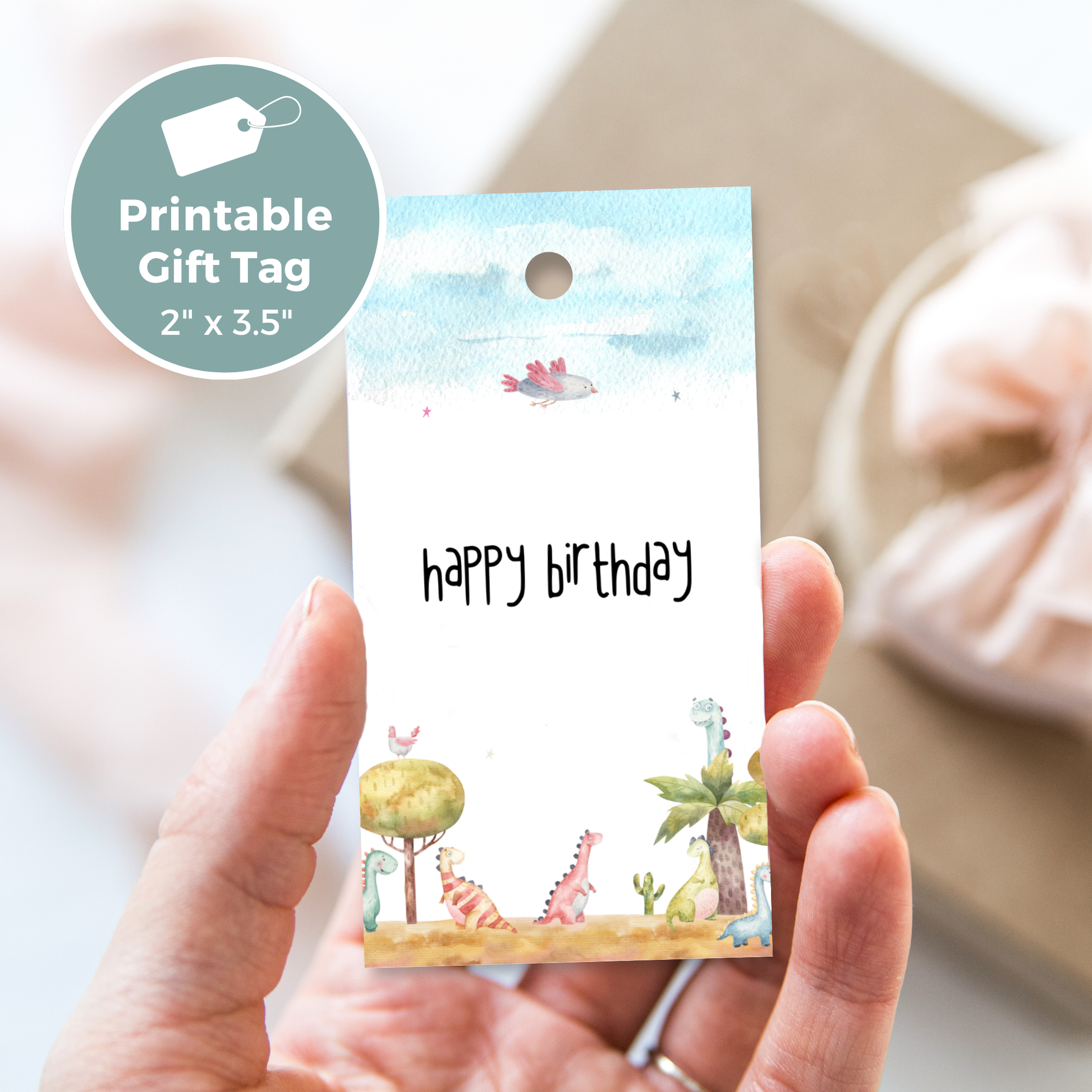 Printable Birthday Gift Tag - Watercolour Dinosaur