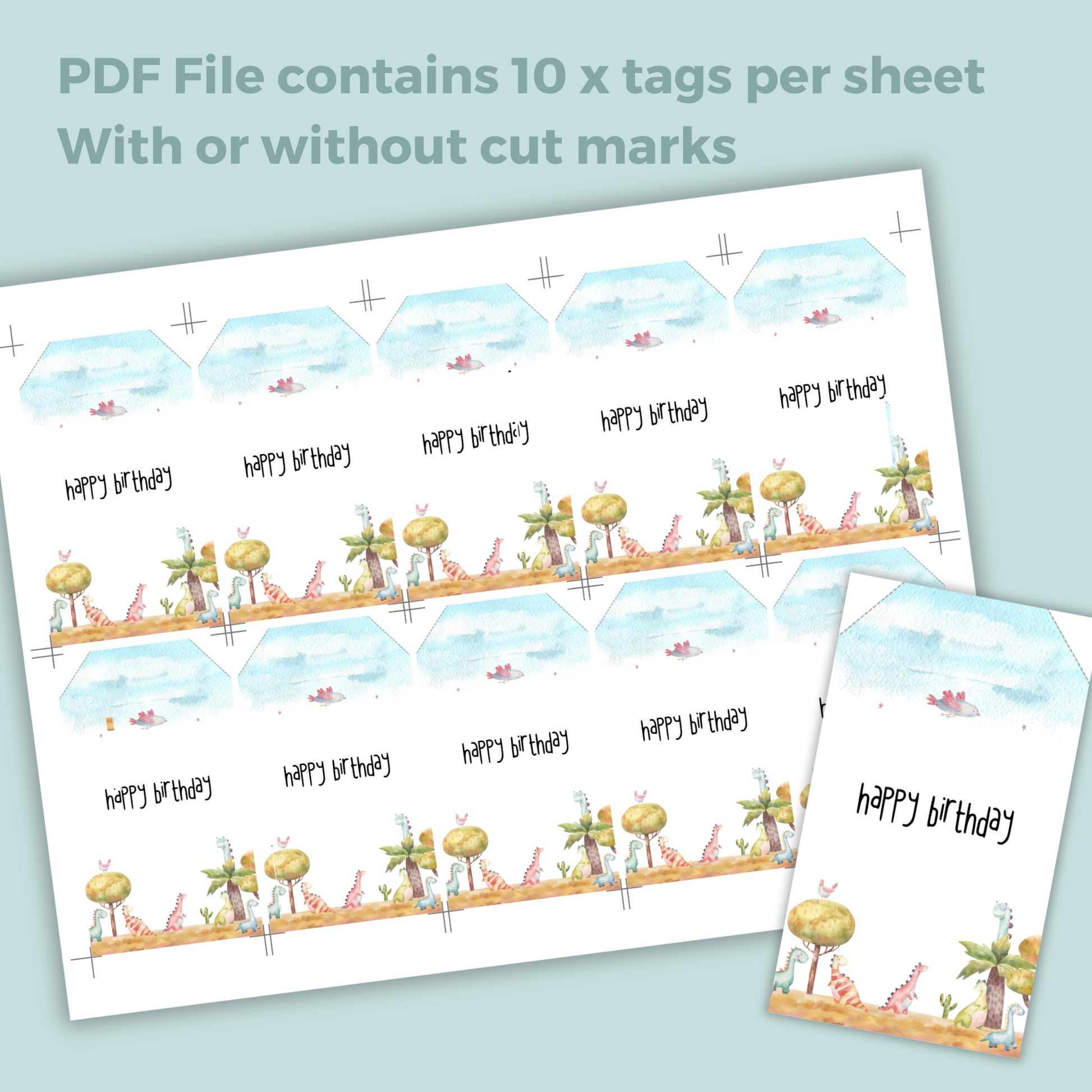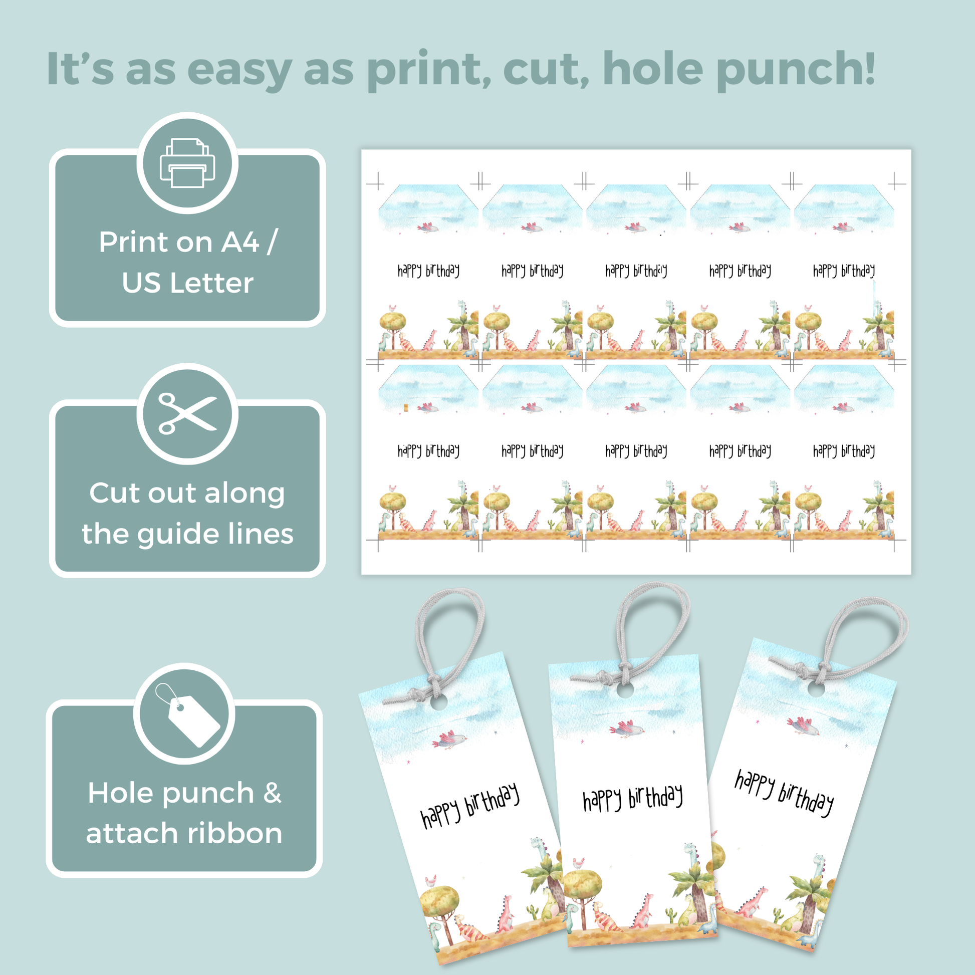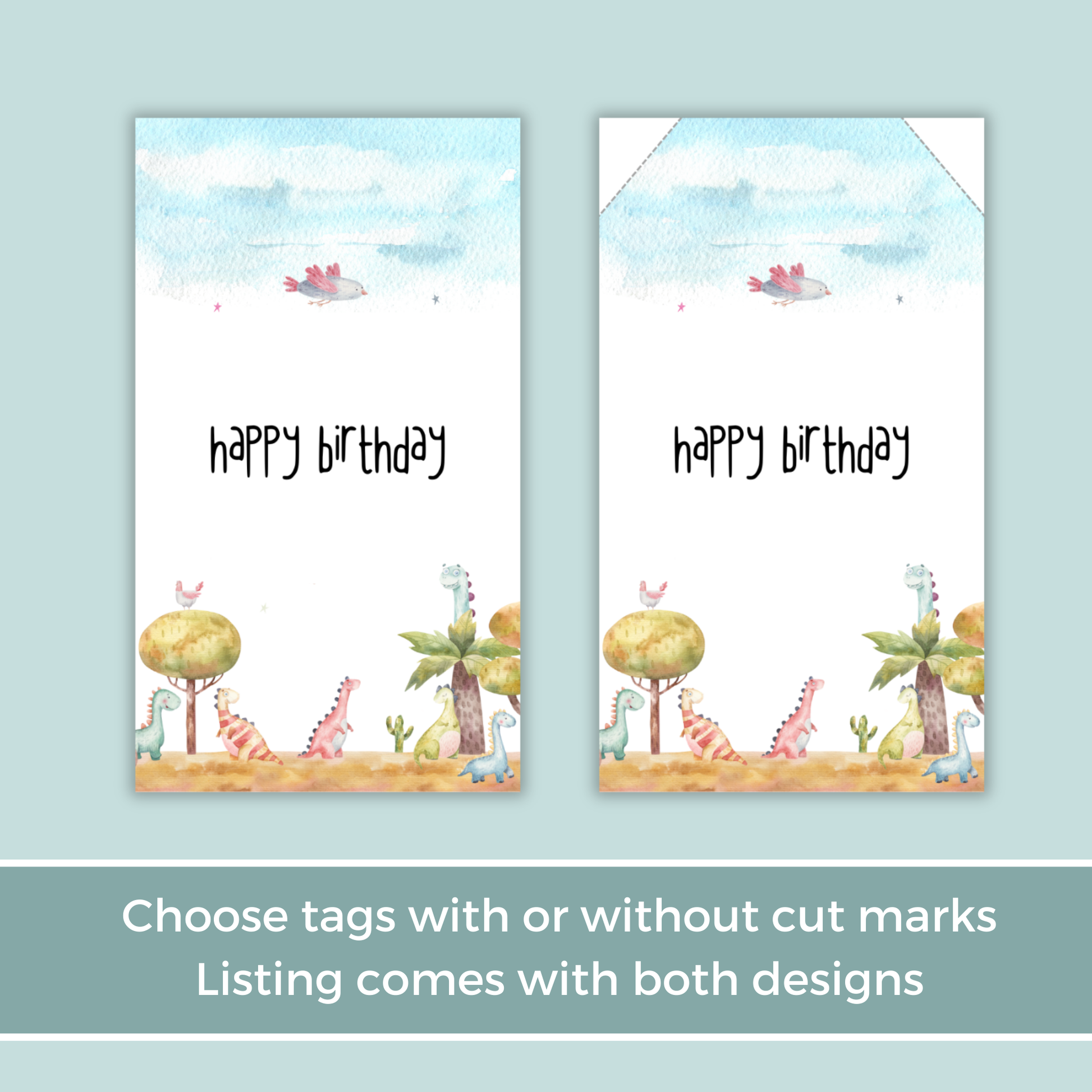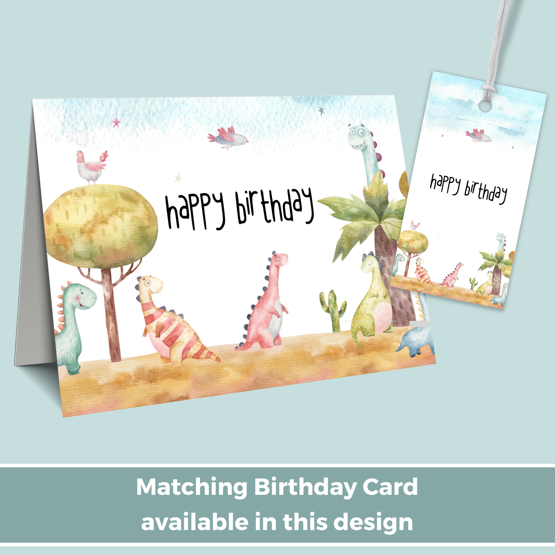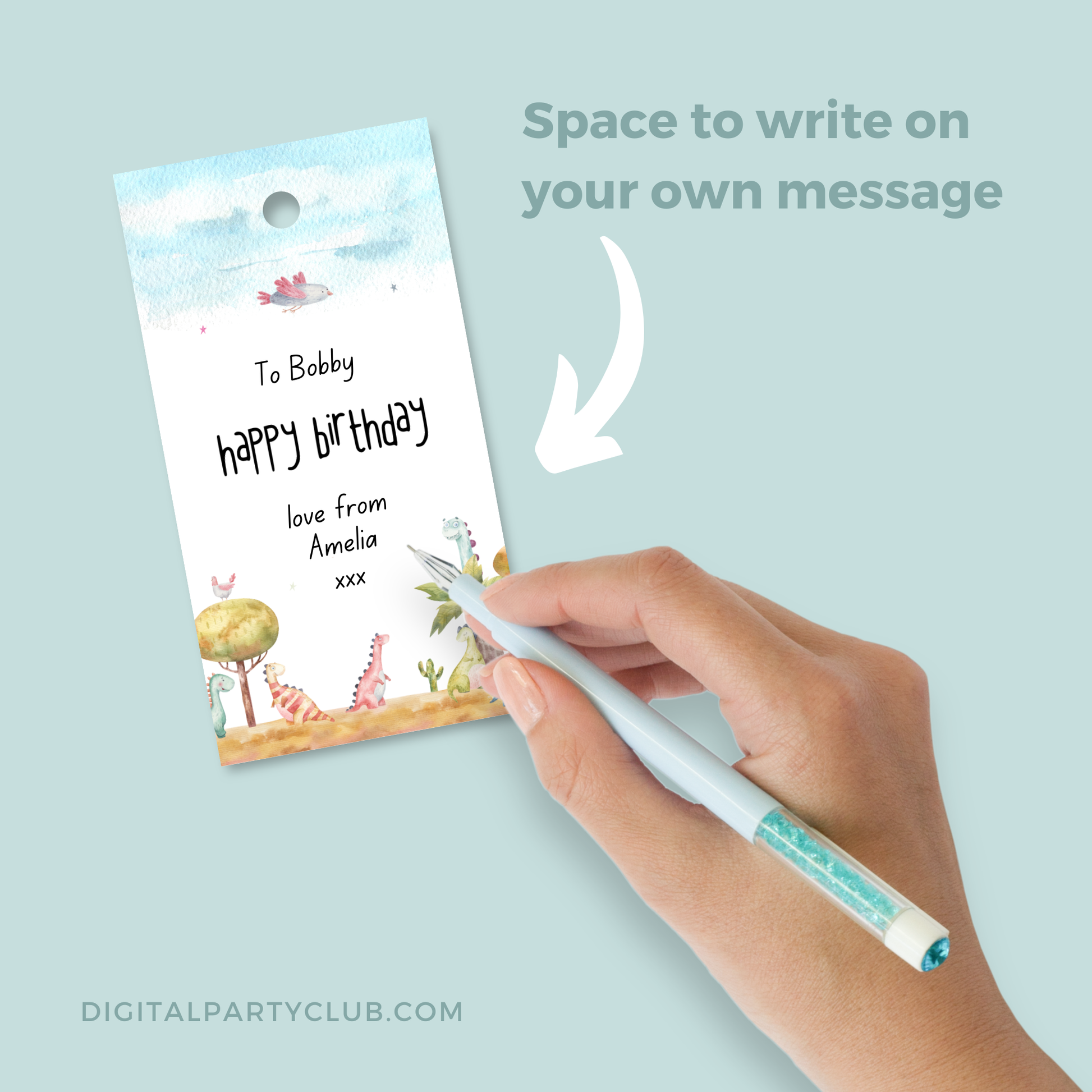 Printable Birthday Gift Tag - Watercolour Dinosaur