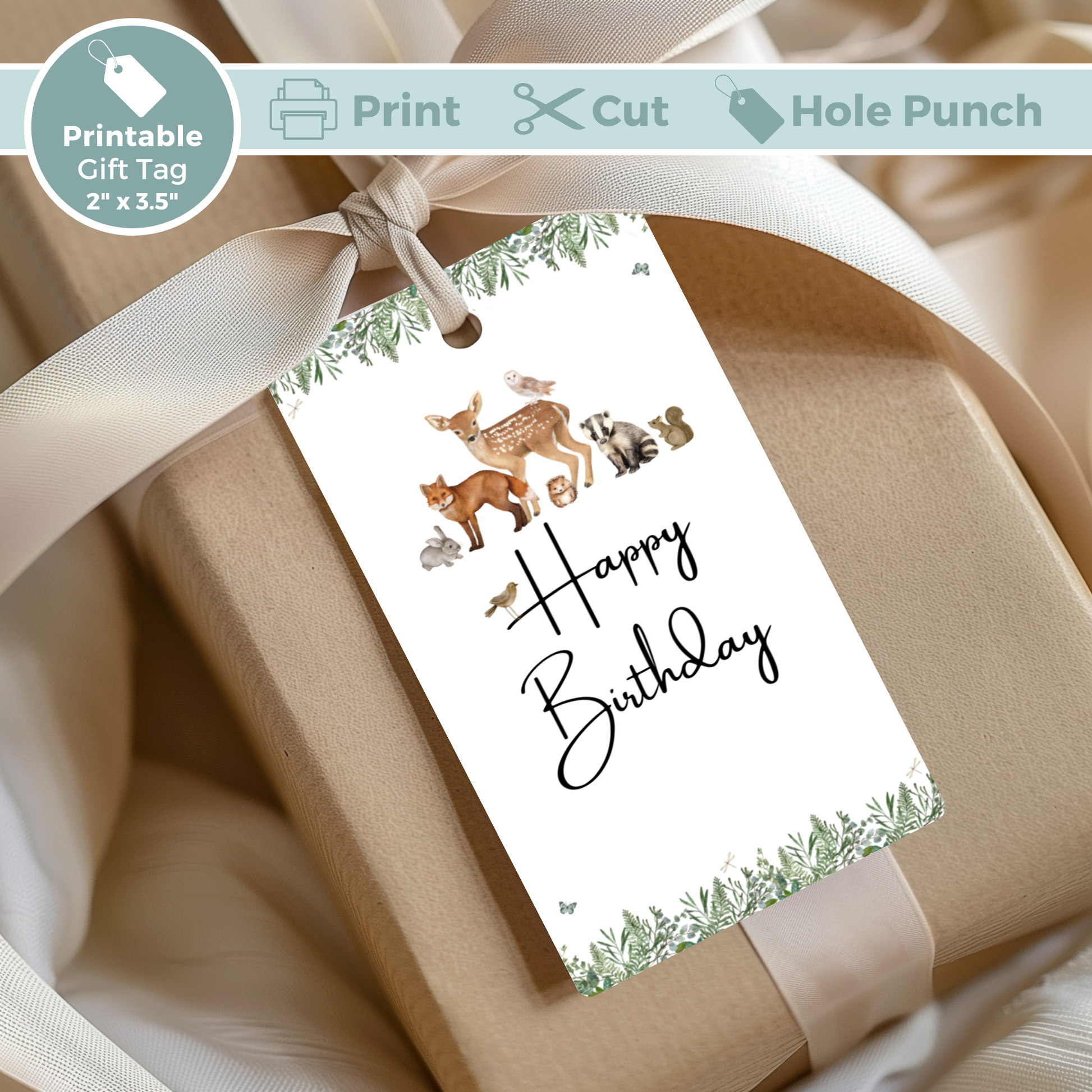 Printable Birthday Gift Tag - Woodland Animal