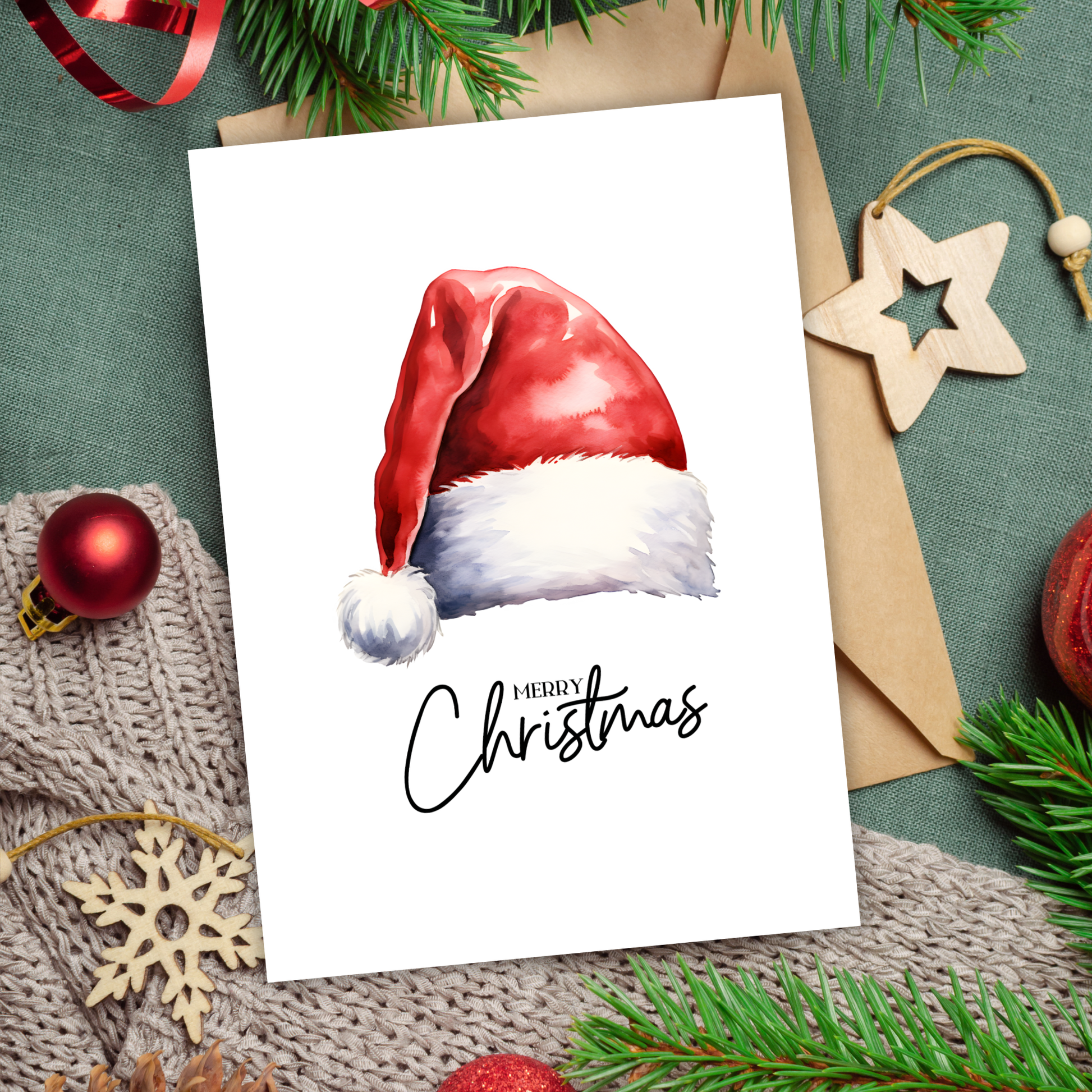 This Printable Merry Christmas Card with a charming Santa hat illustration is perfect for spreading festive cheer to your loved ones. With its simple and fun design, it’s an ideal choice for anyone looking for a unique, easy-to-print holiday greeting card that adds a personal touch to their seasonal wishes. Perfect for last-minute cards or creating multiple copies from the comfort of your home!