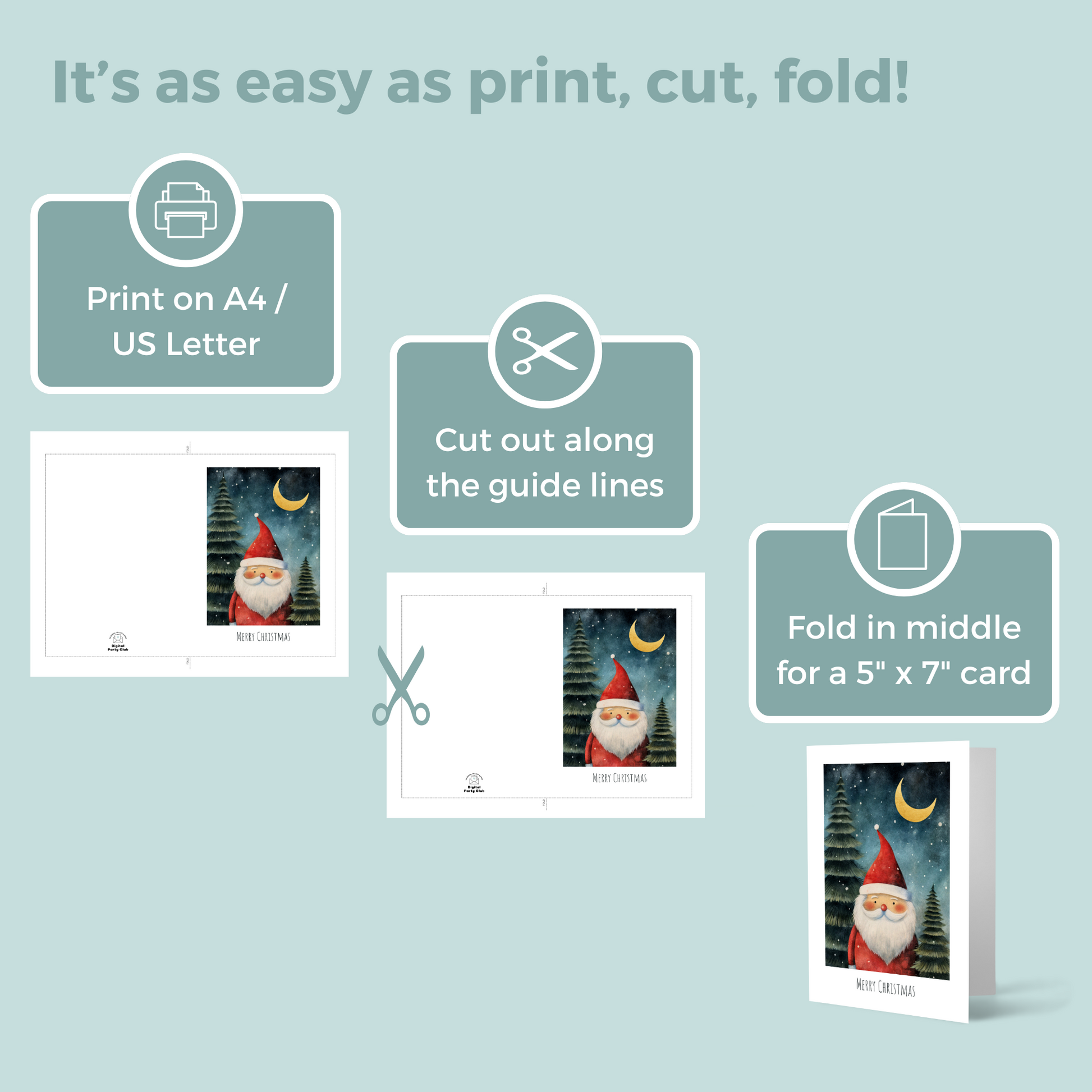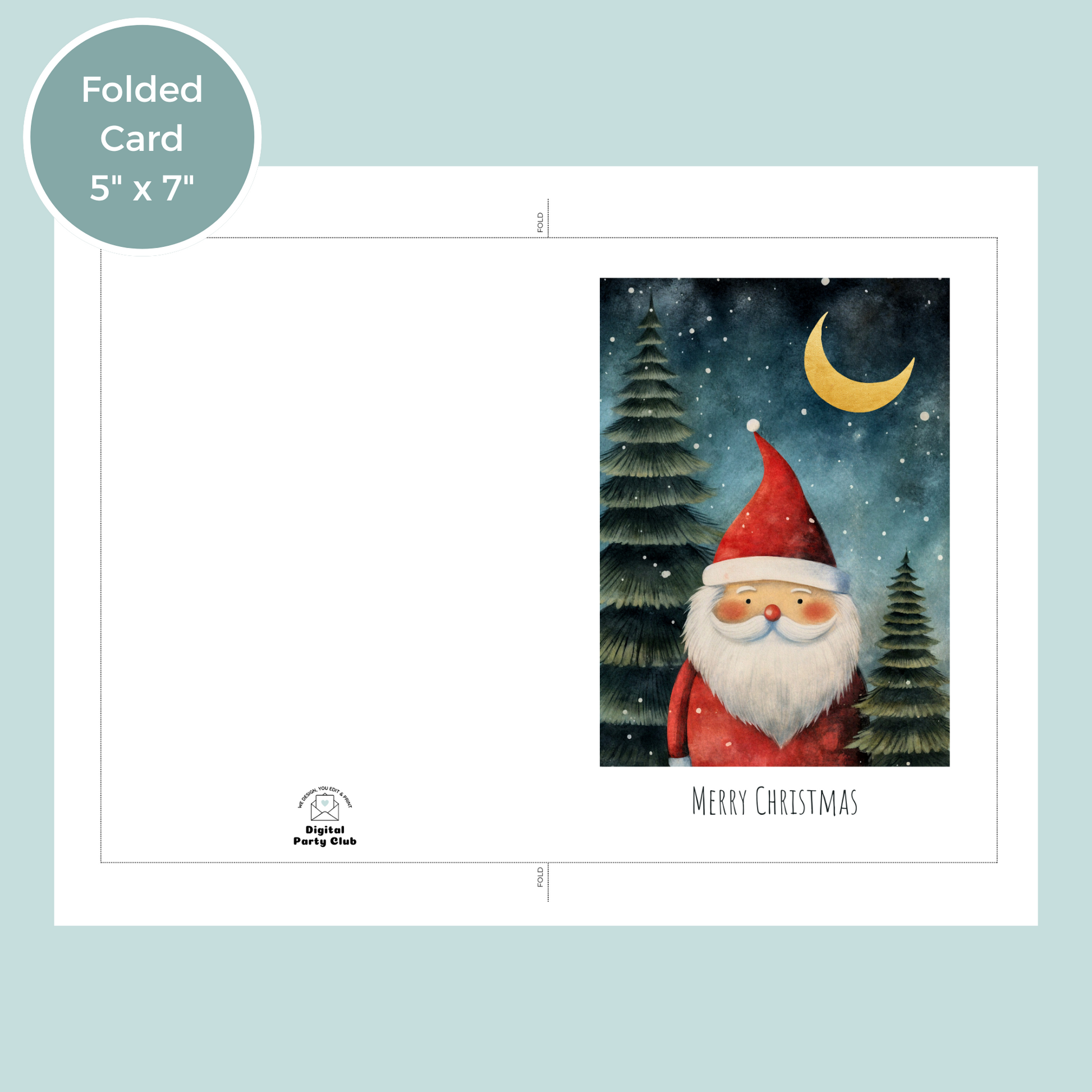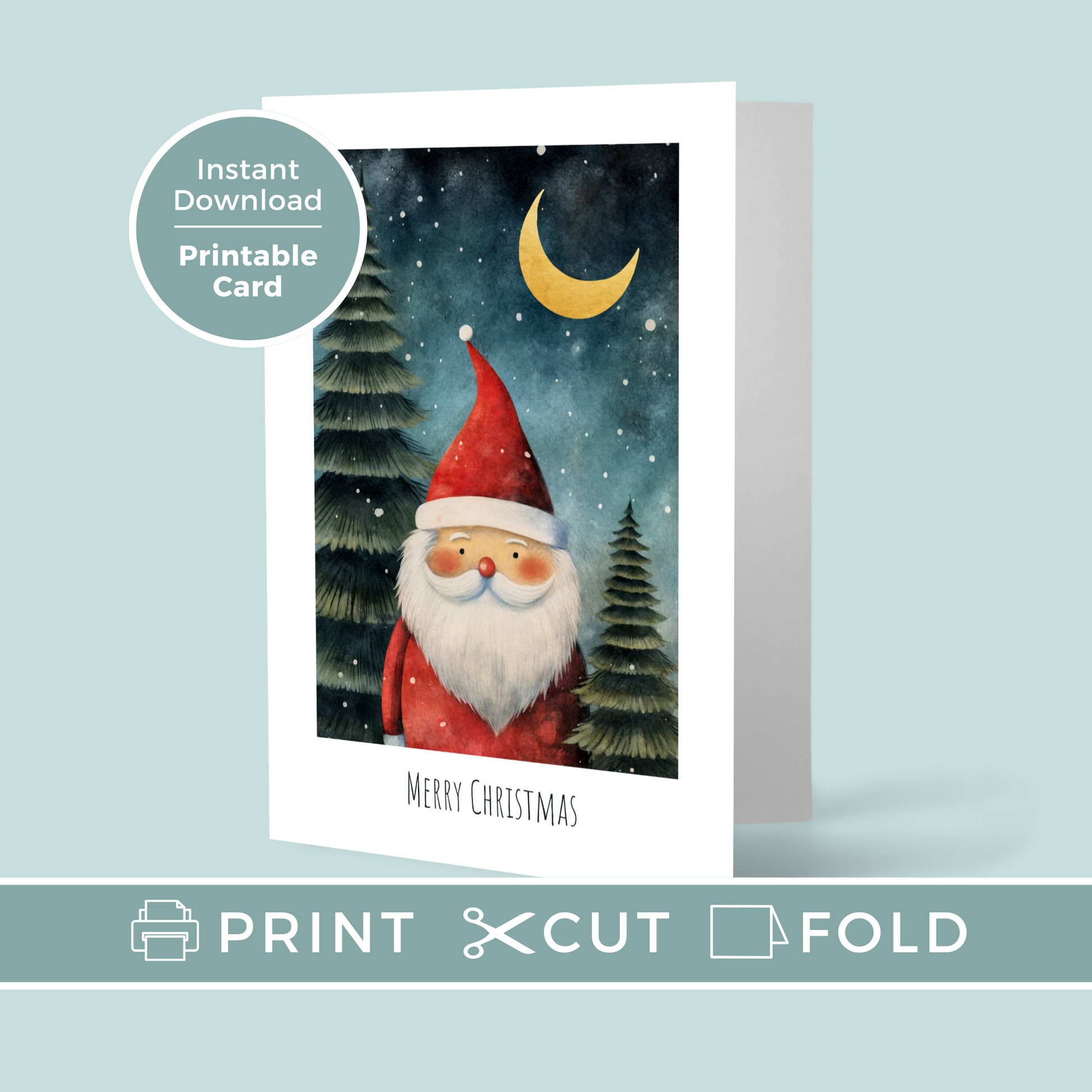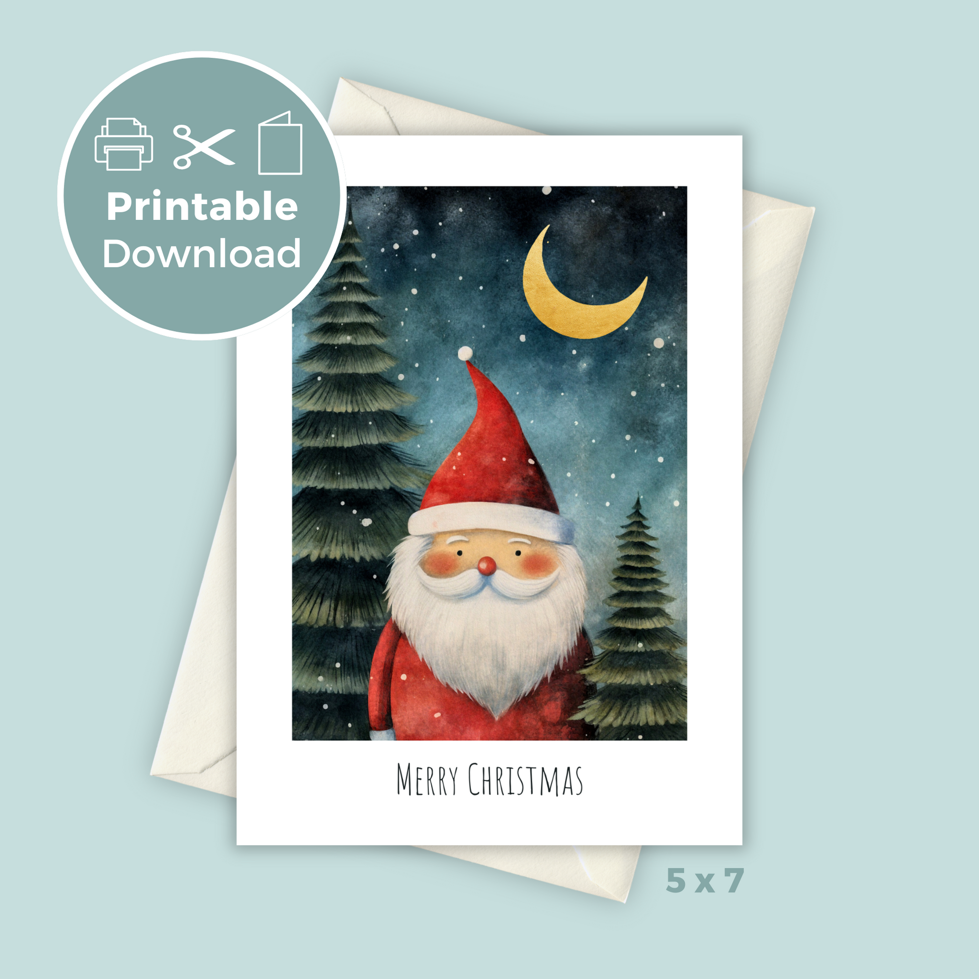 Celebrate the season with this charming 5x7 printable Christmas card featuring a whimsical Santa Claus under a starry night sky. Perfect for adding a personal touch to your holiday greetings! Simply download, print, and share the festive cheer. Ideal for last-minute cards or thoughtful DIY gifting.
