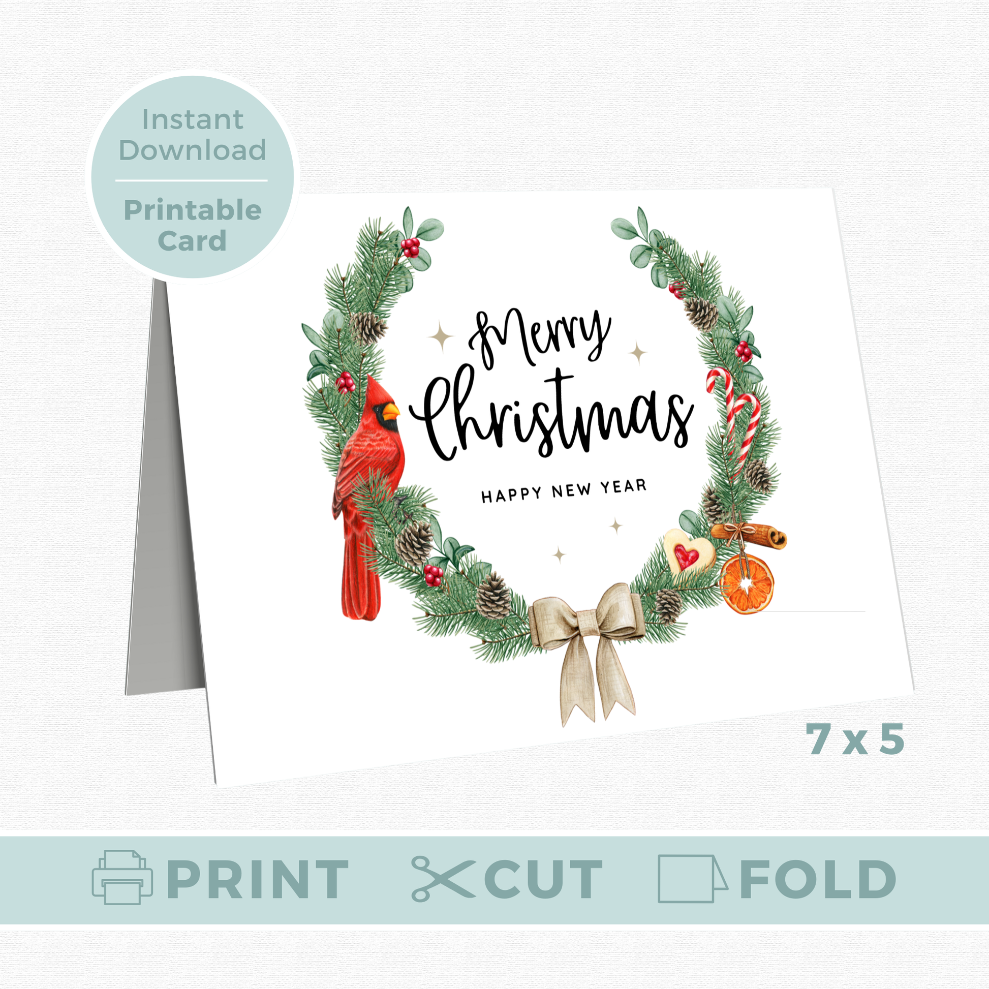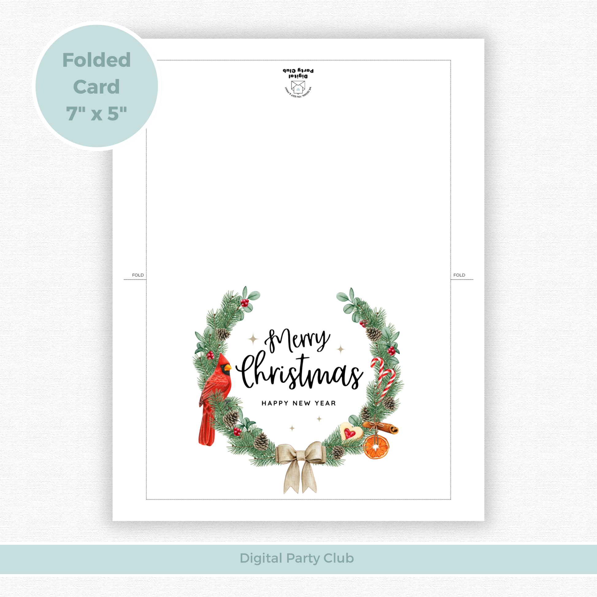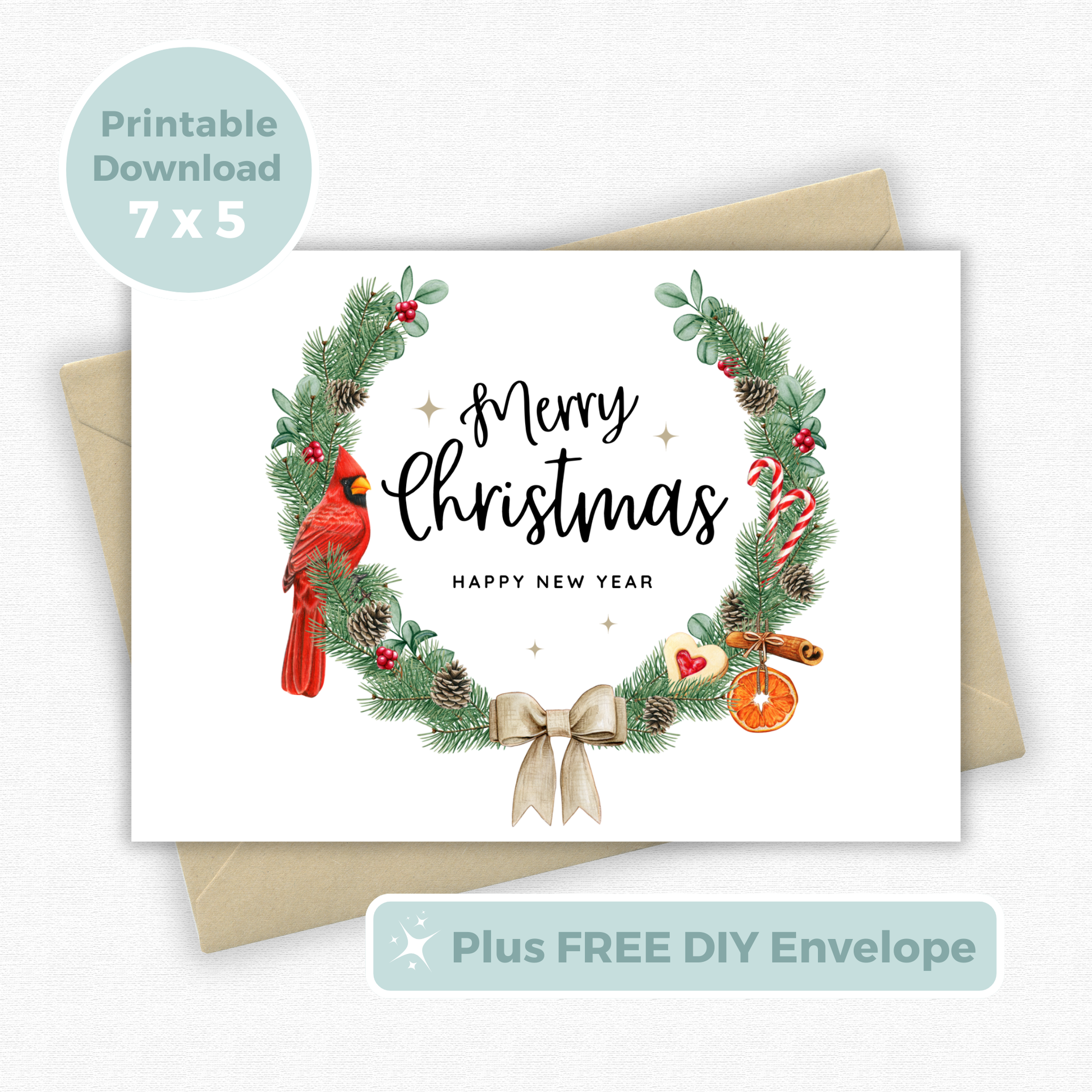 Send Christmas greetings in style with our Printable Merry Christmas Card with Christmas wreath design. This stunning Christmas card is the perfect way to send warm wishes to your loved ones.