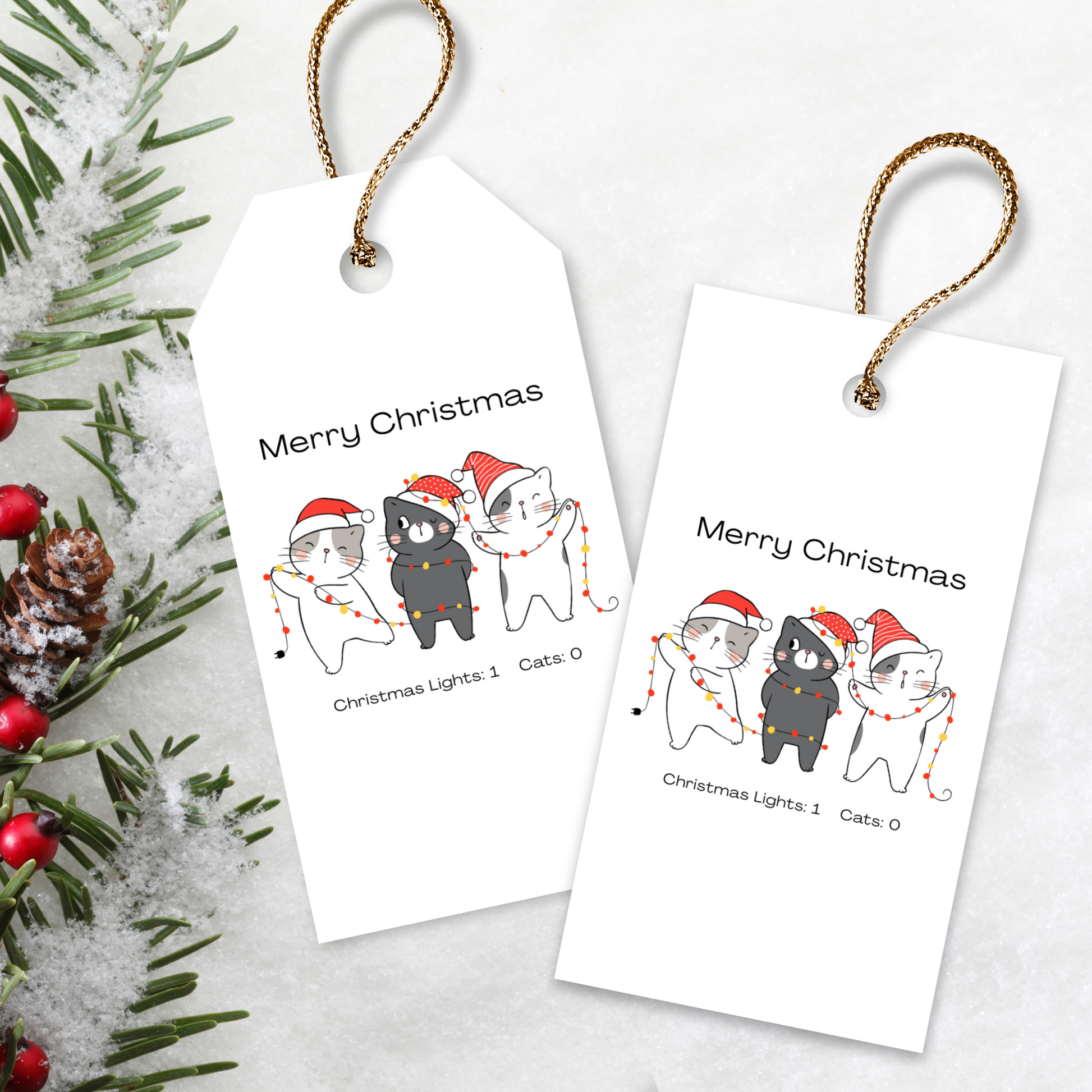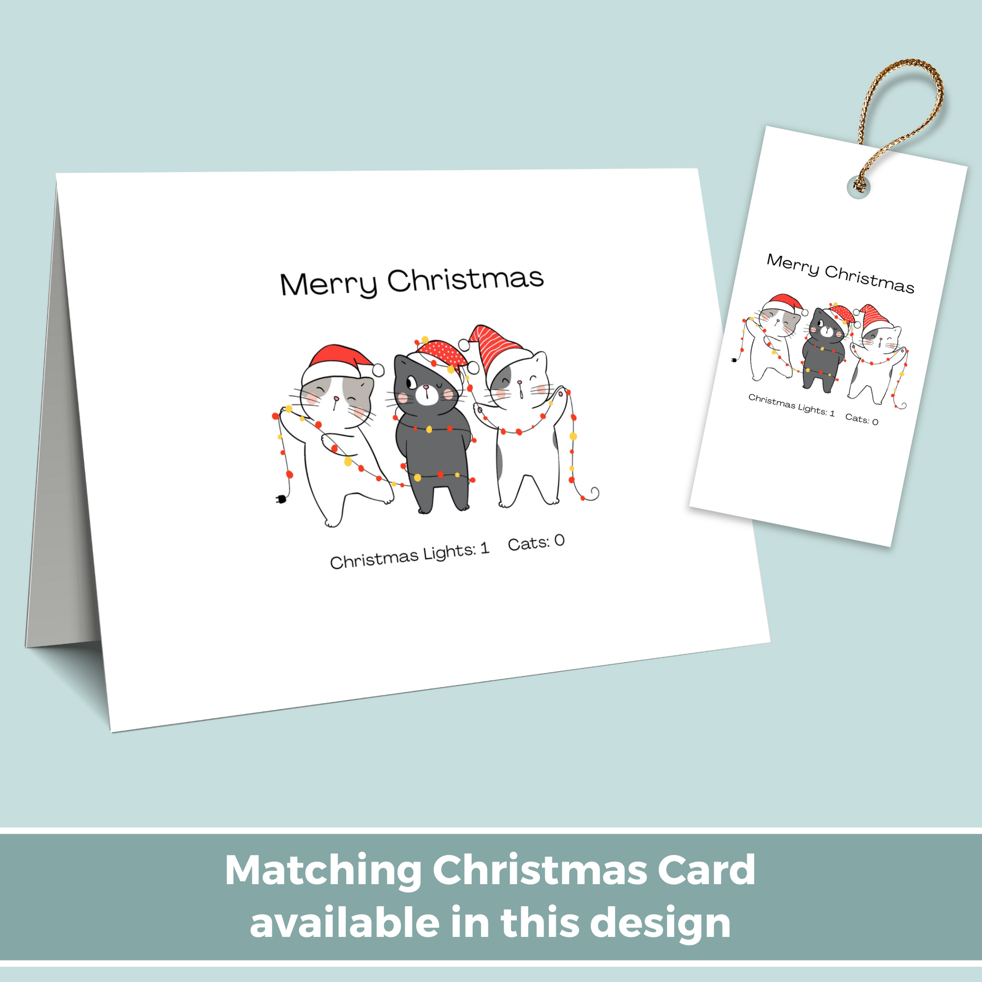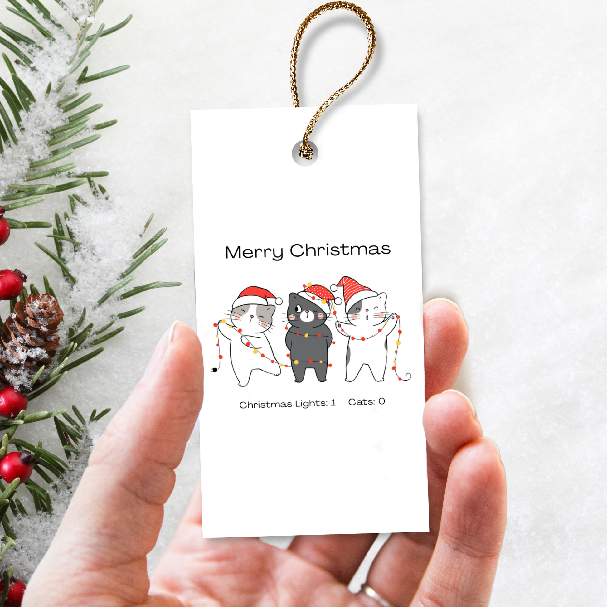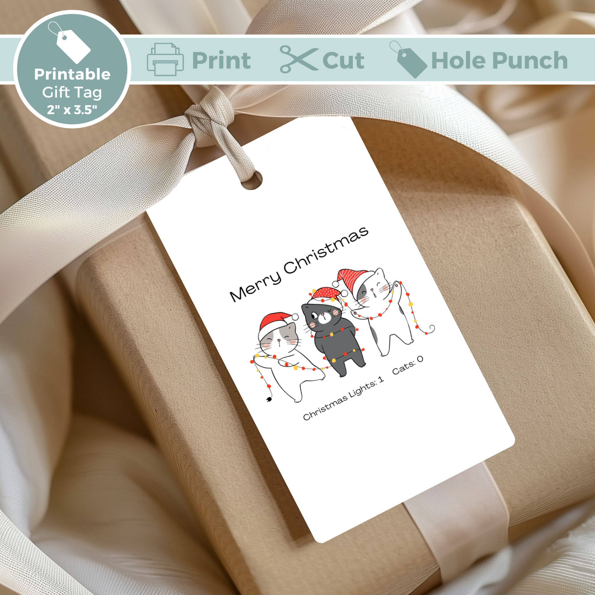 Make them smile with this adorable printable Christmas tag featuring three cats tangled in festive lights. An instant download - perfect for cat lovers, holiday greetings, or last-minute Christmas cheer.