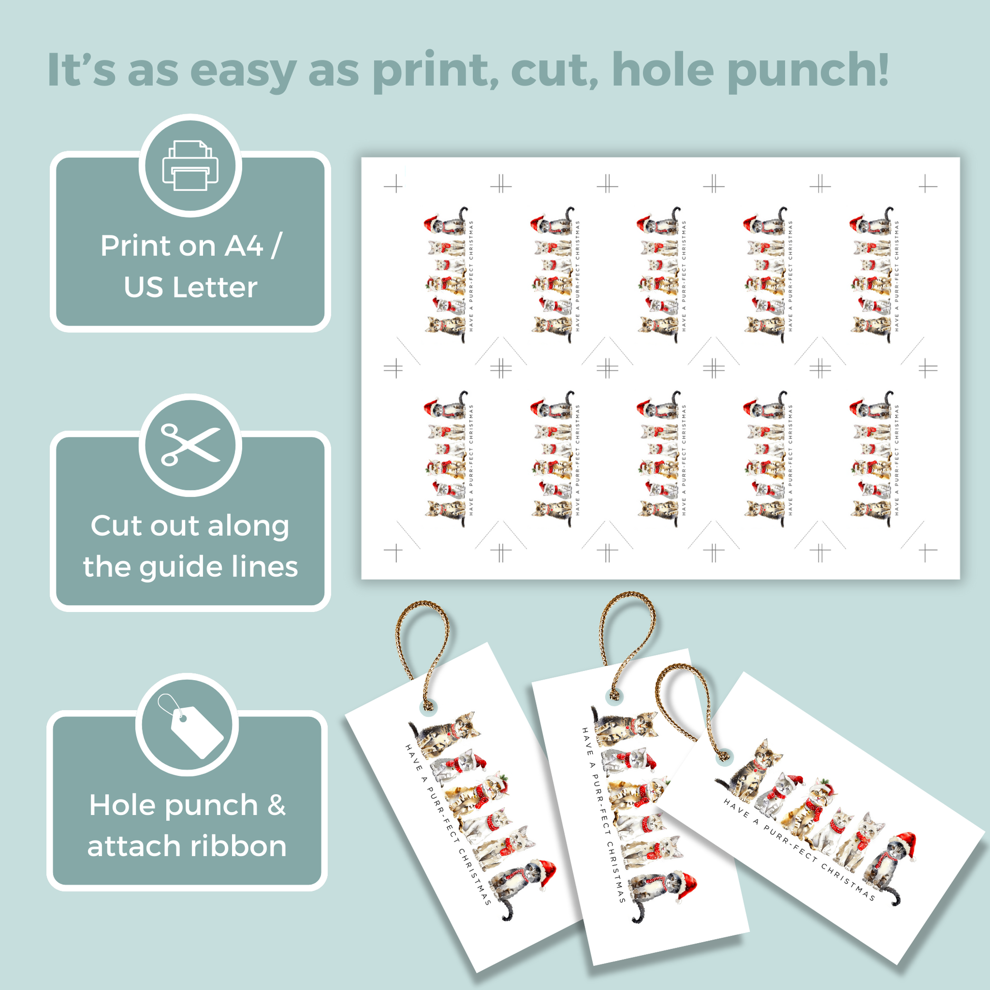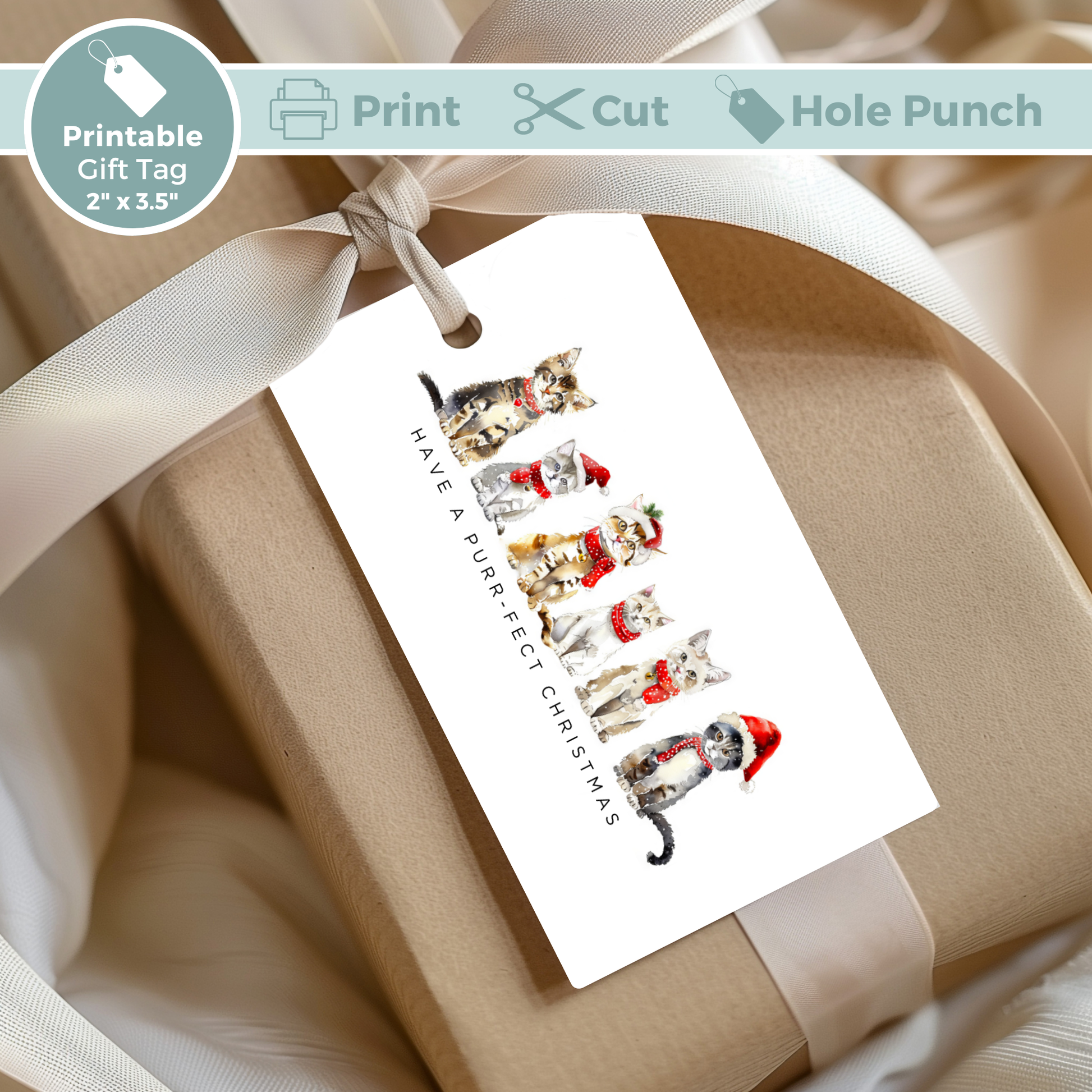 Send Christmas presents in style with our Printable Gift Tag with cute cat illustration. This stunning gift tag is the perfect way to send warm wishes to your loved ones.