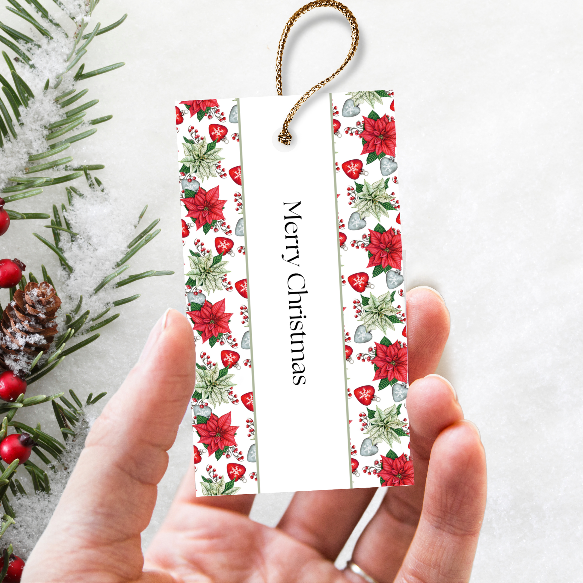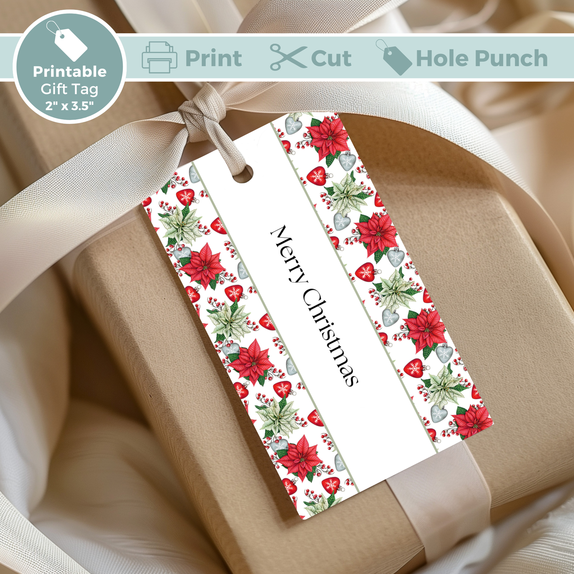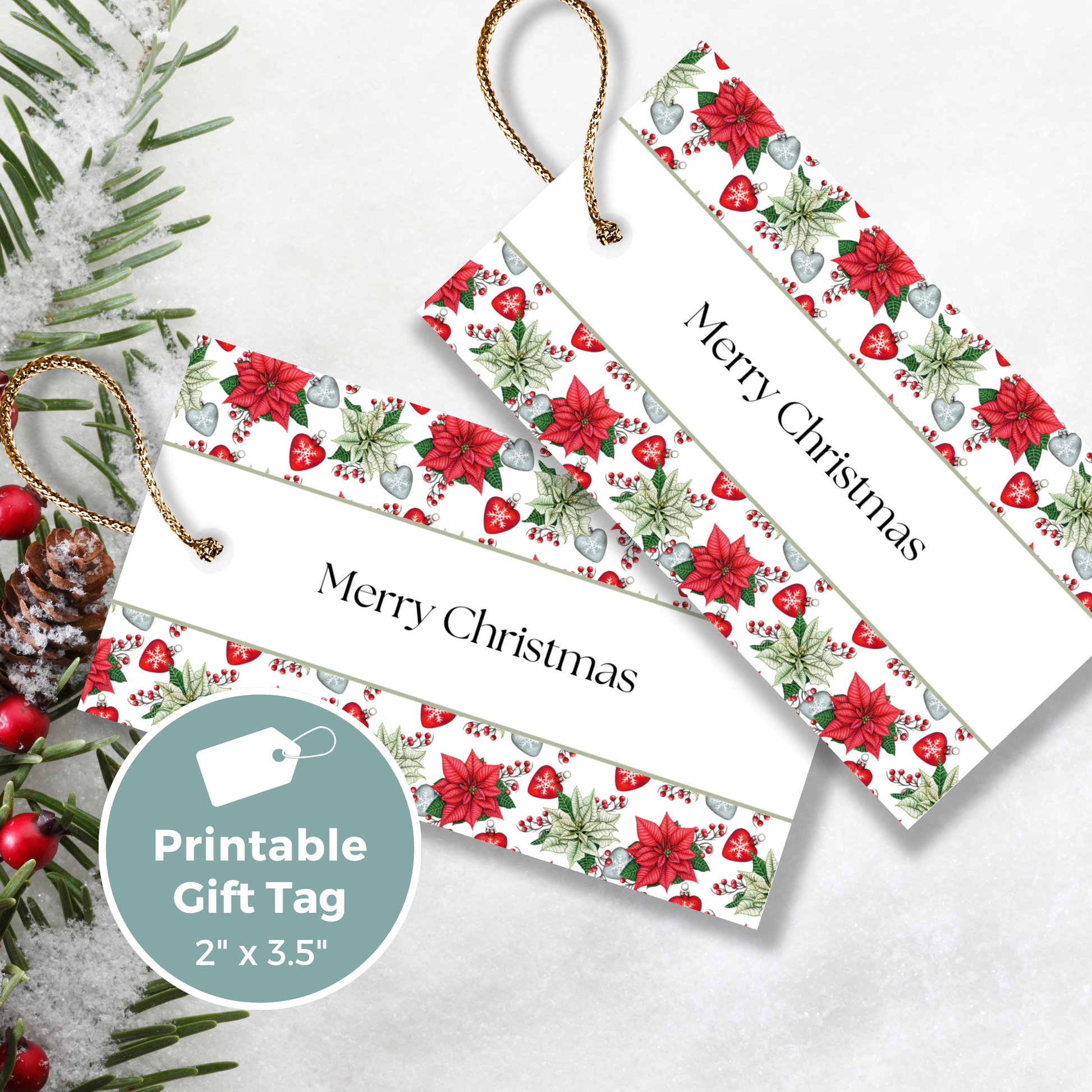 Printable Christmas Gift Tag - Poinsettia Flowers