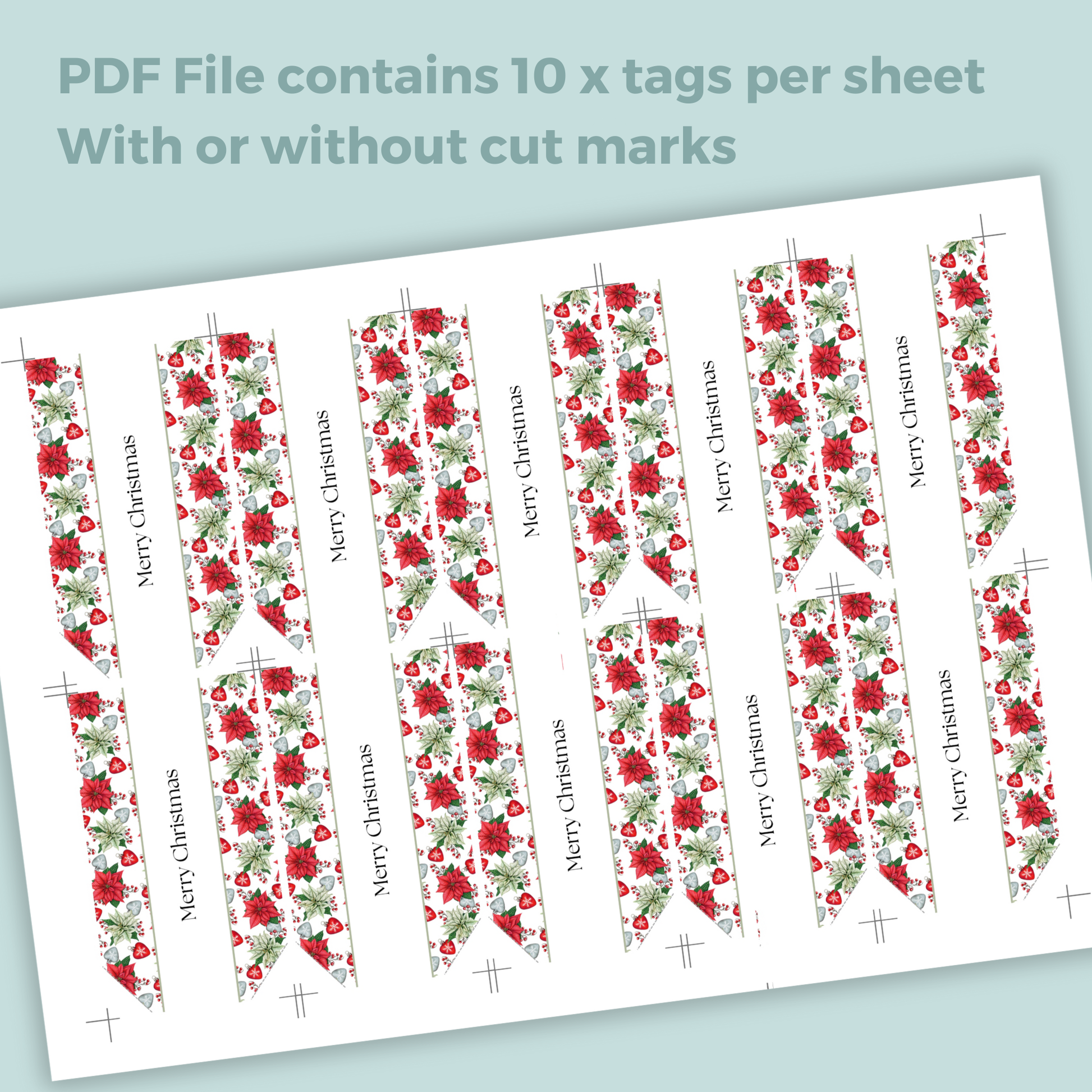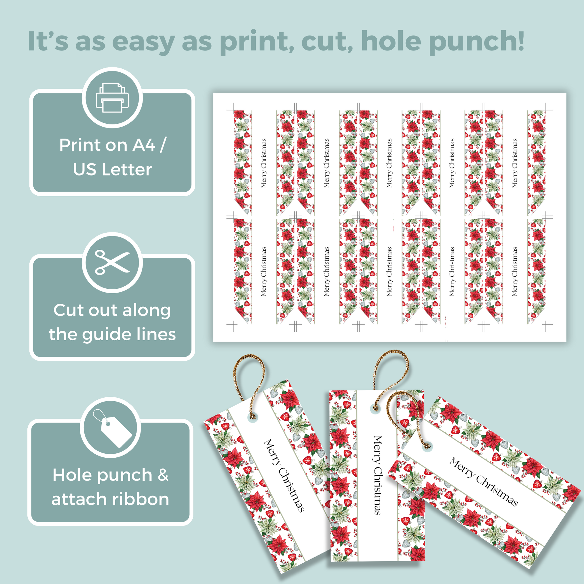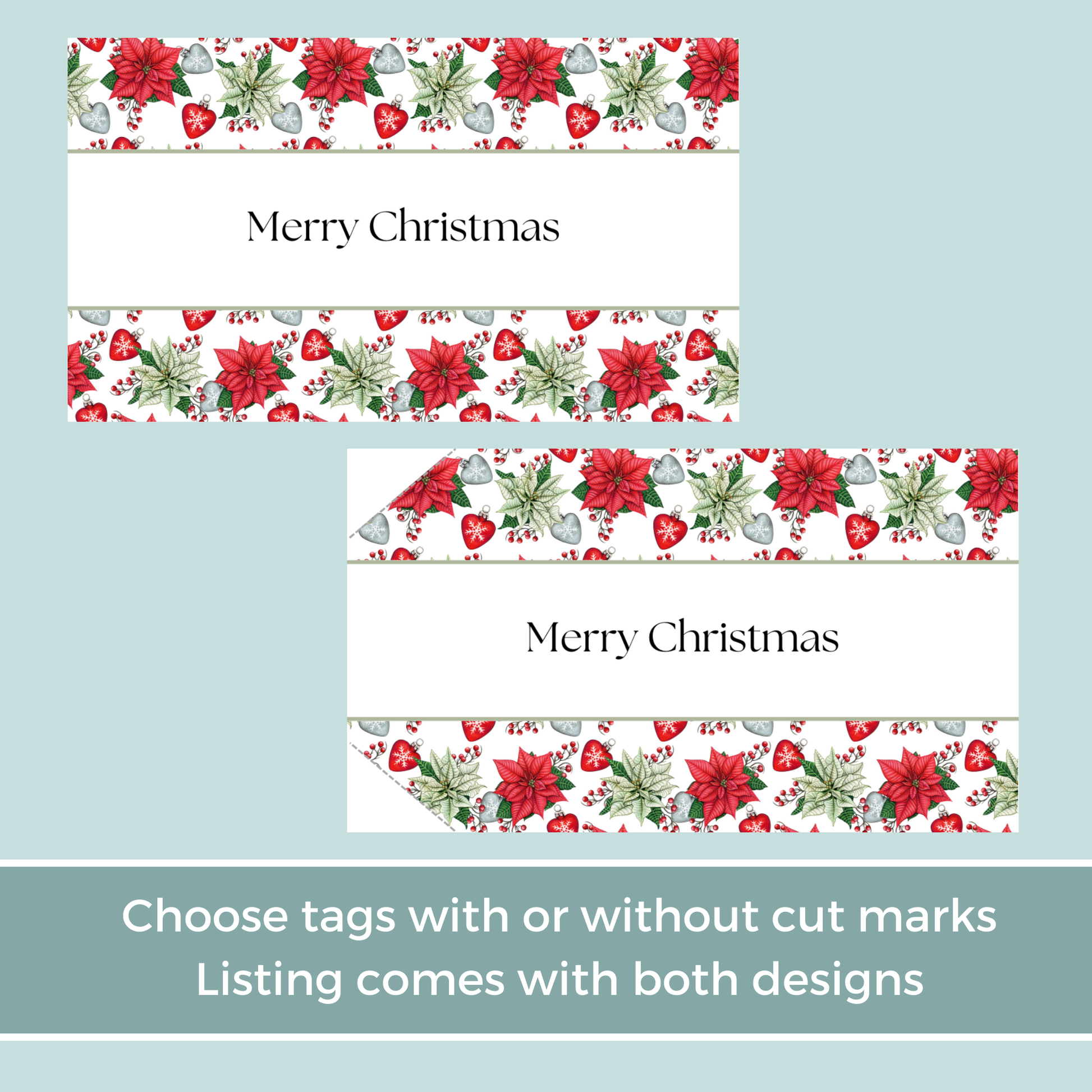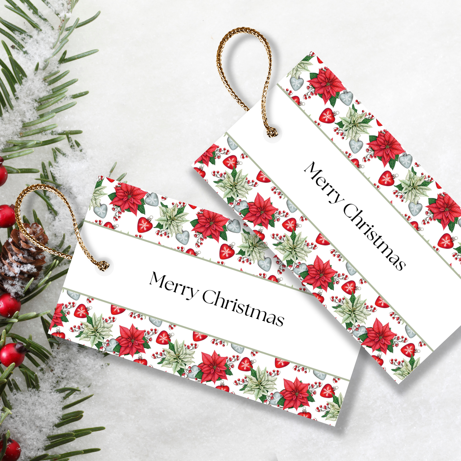 Printable Christmas Gift Tag - Poinsettia Flowers
