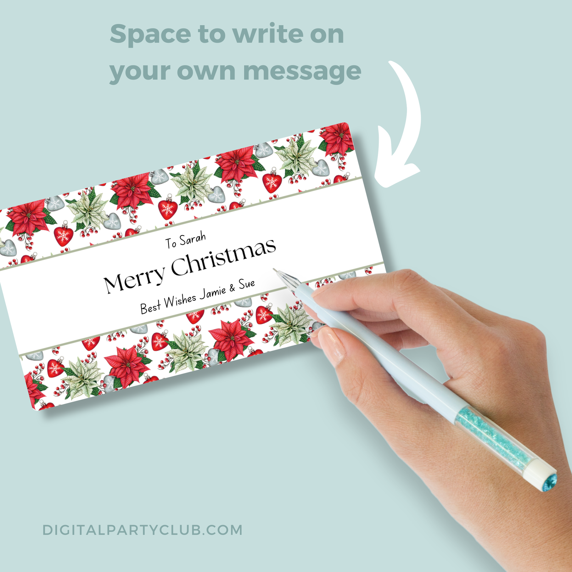 Send Christmas presents in style with our Printable Gift Tag with Festive Red Poinsettia Flowers. This stunning gift tag is the perfect way to send warm wishes to your loved ones.