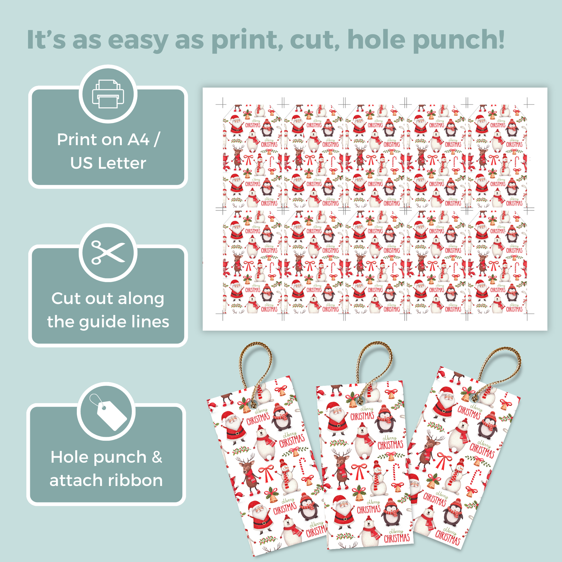 - Punch a hole and attach ribbon