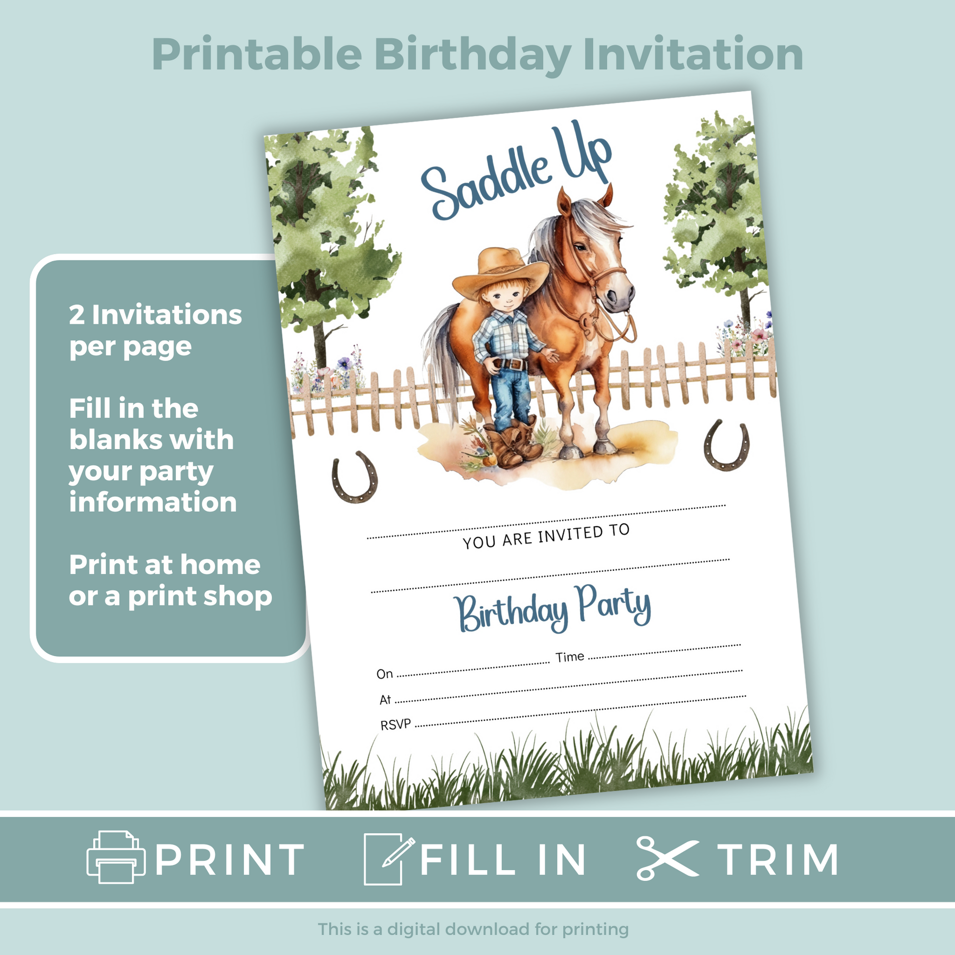 Printable Fill In Birthday Invitation - Saddle Up Boy