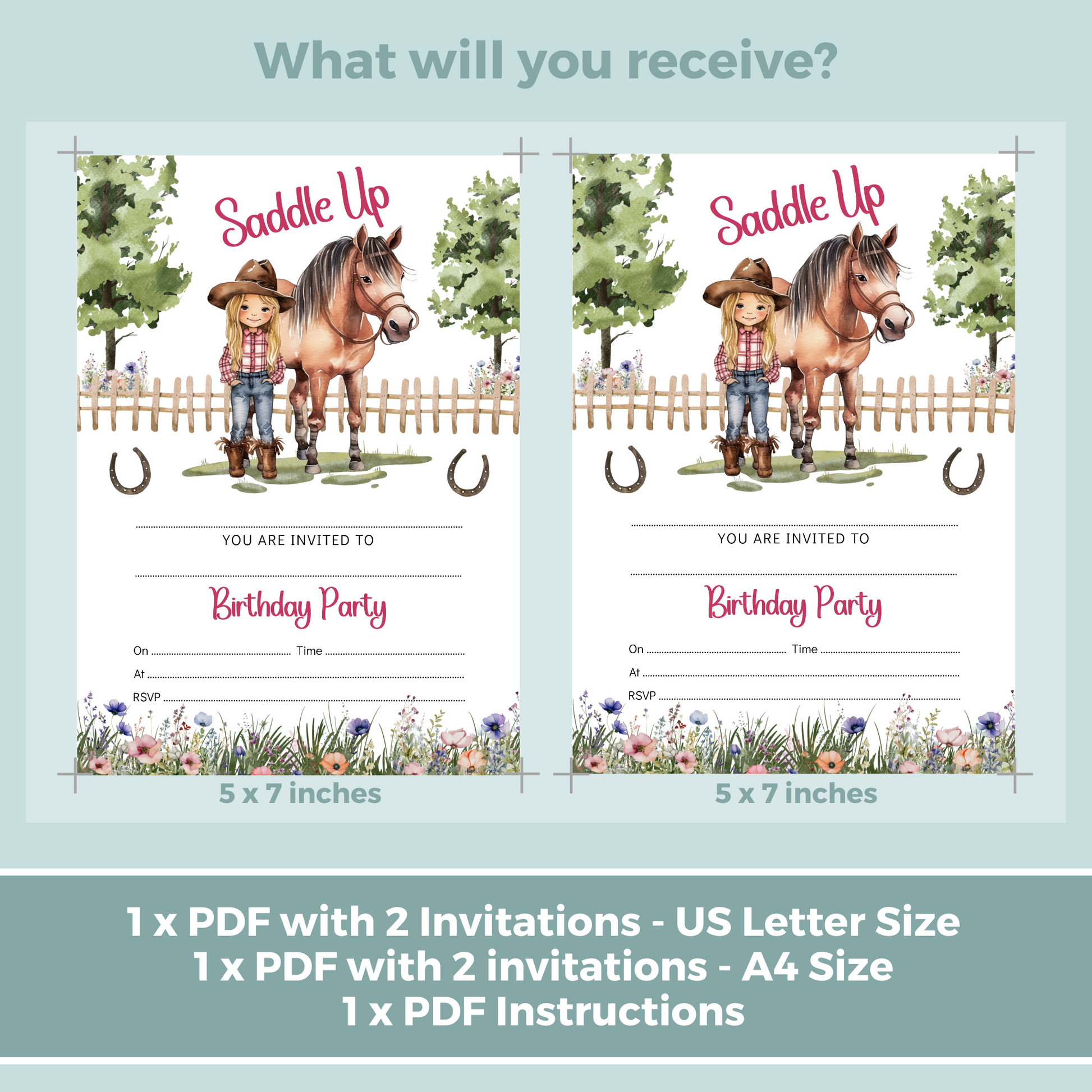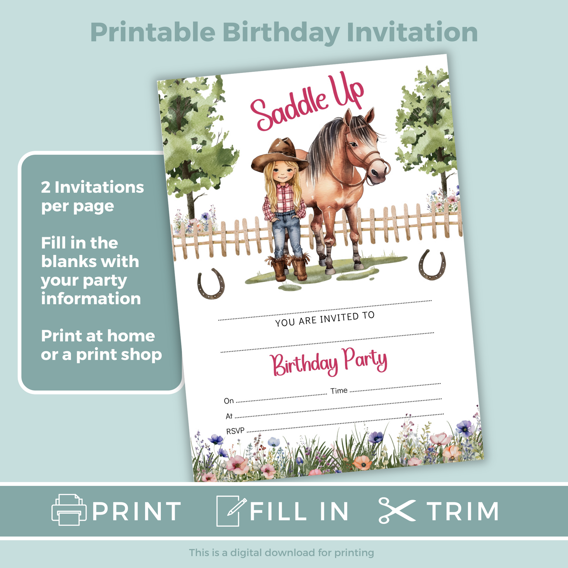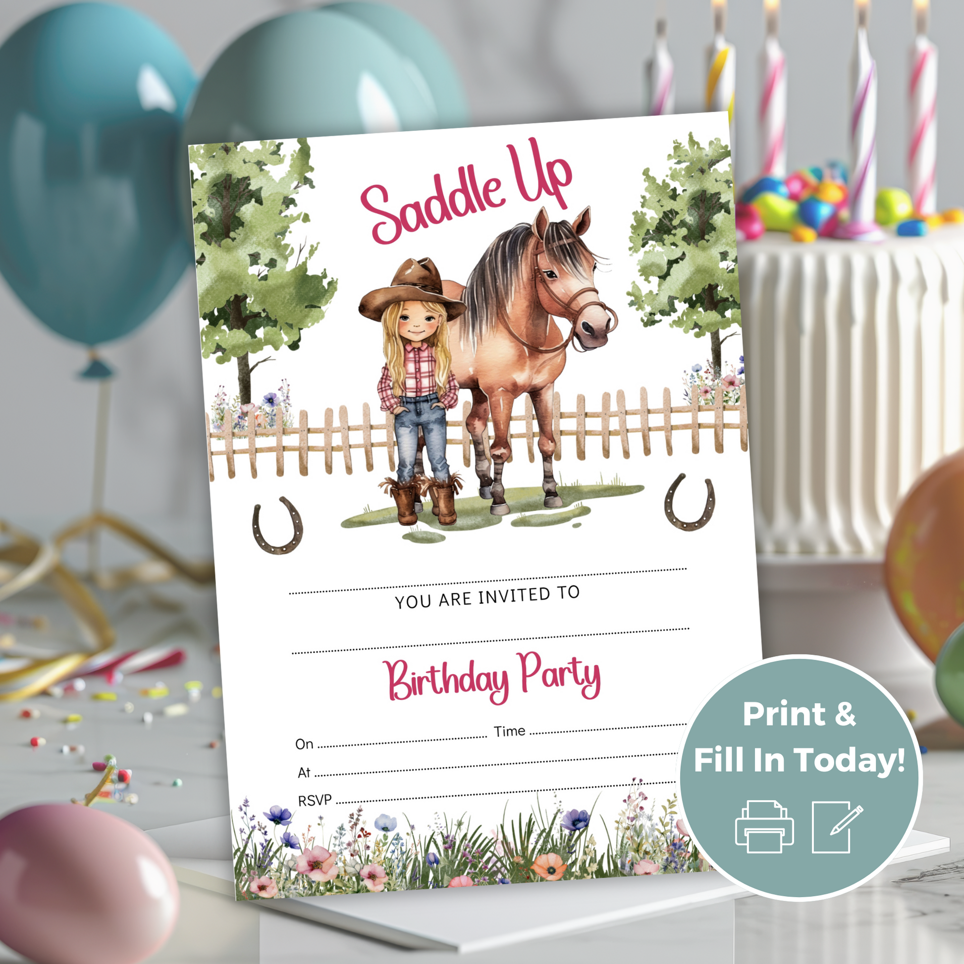 Printable Fill In Birthday Invitation - Saddle Up Girl