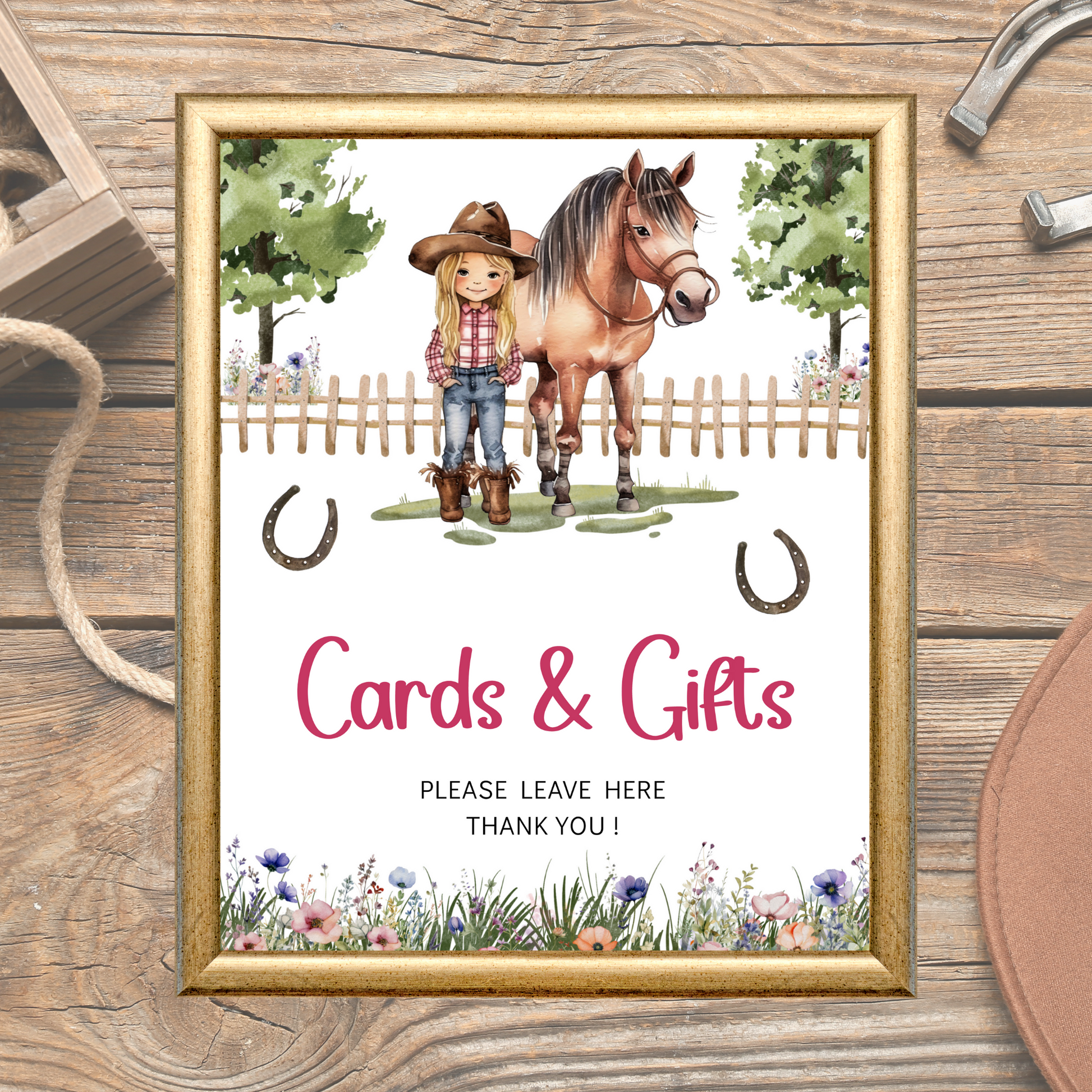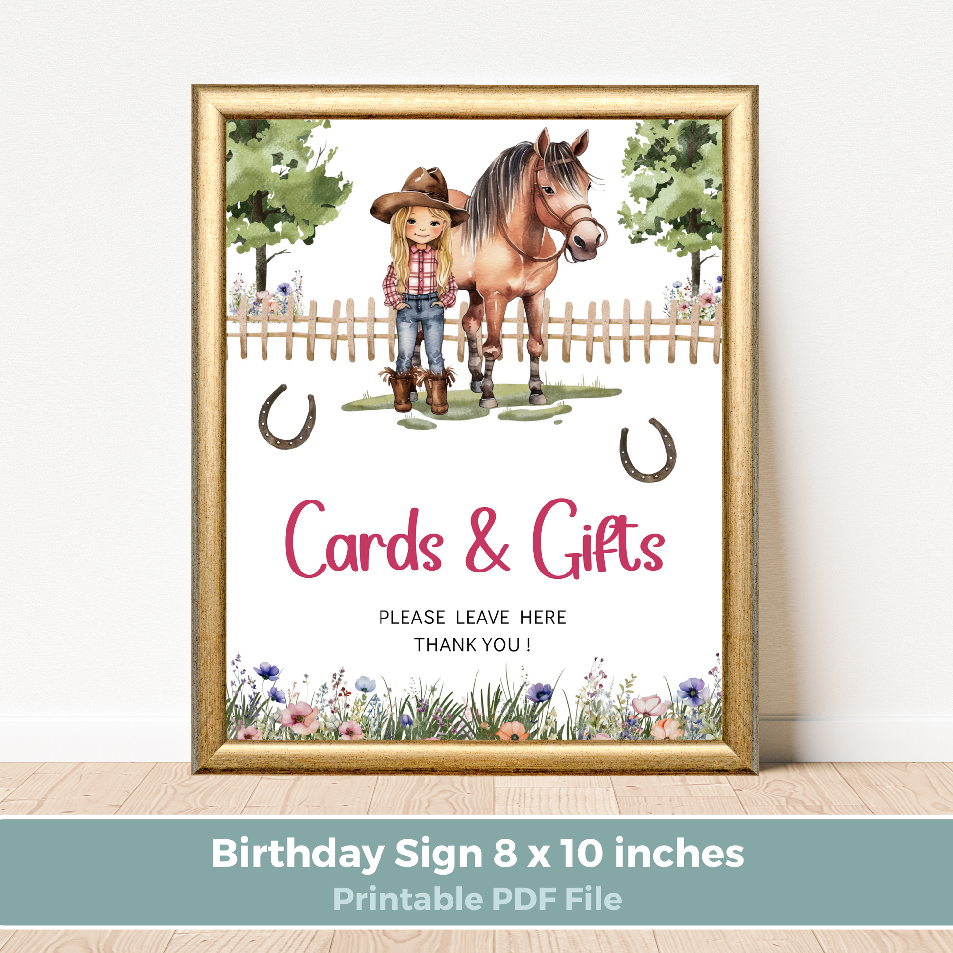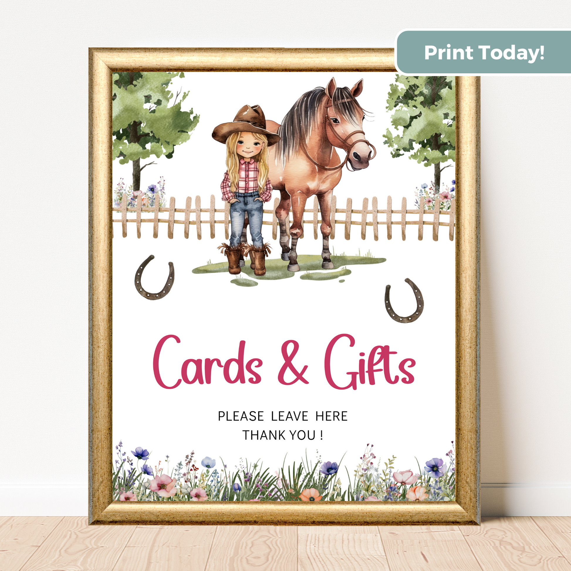 Printable Birthday Cards and Gifts Sign - Saddle Up Girl