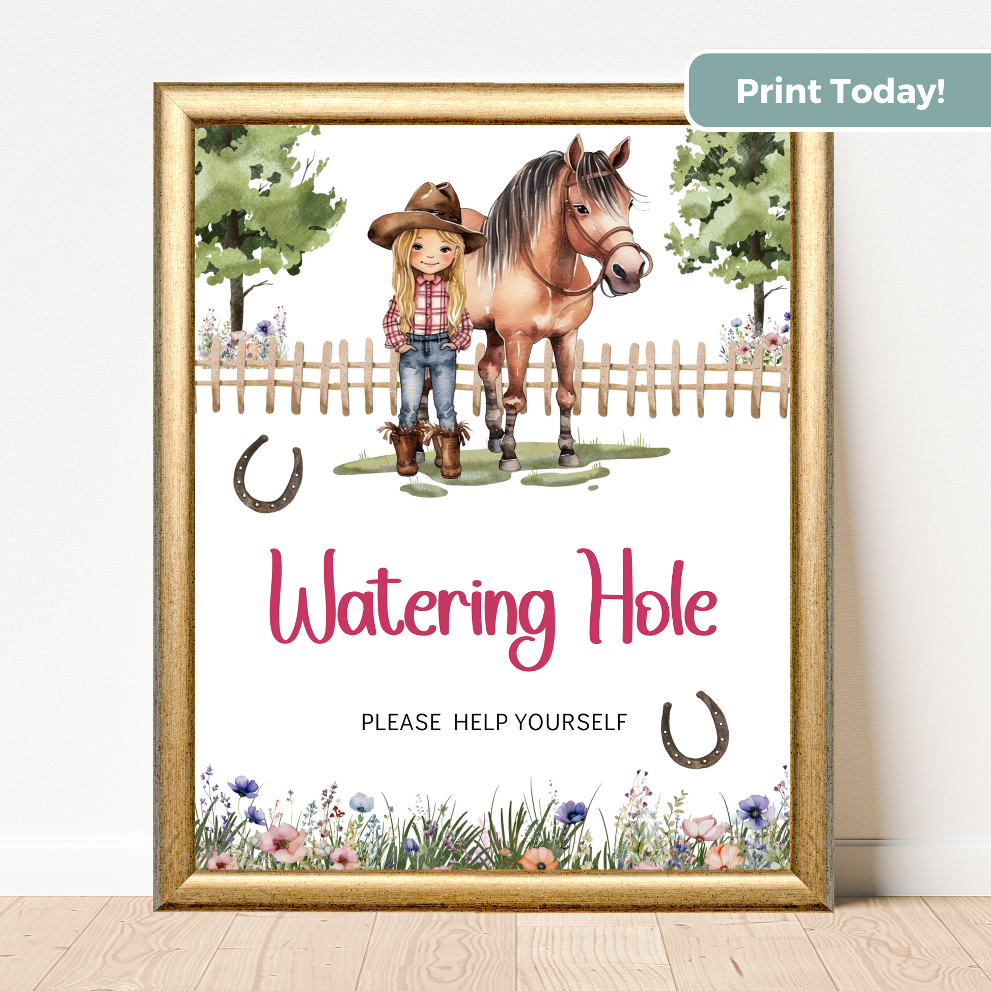 Printable Birthday Drinks Sign - Saddle Up Girl