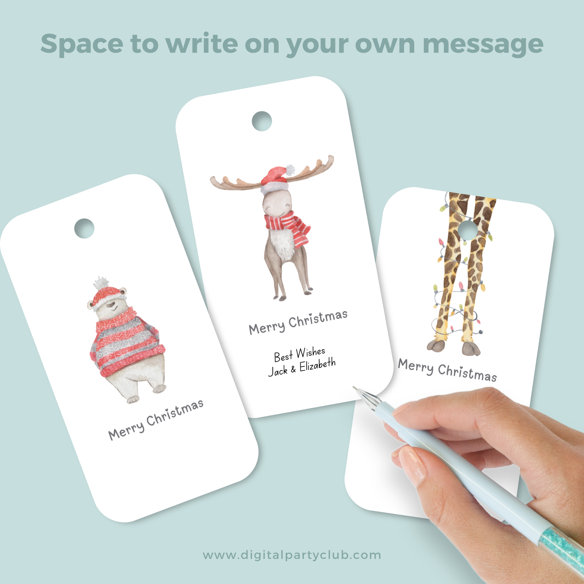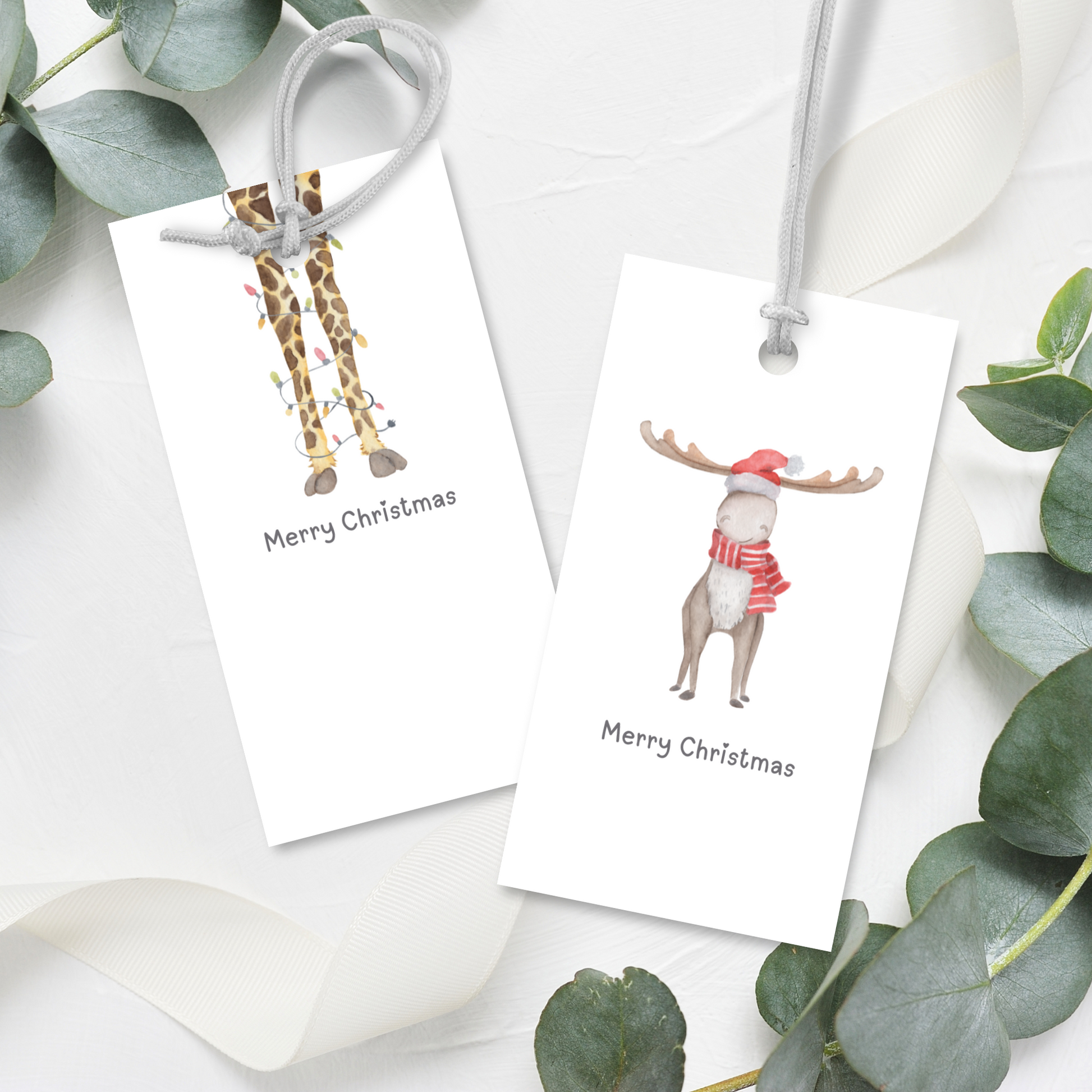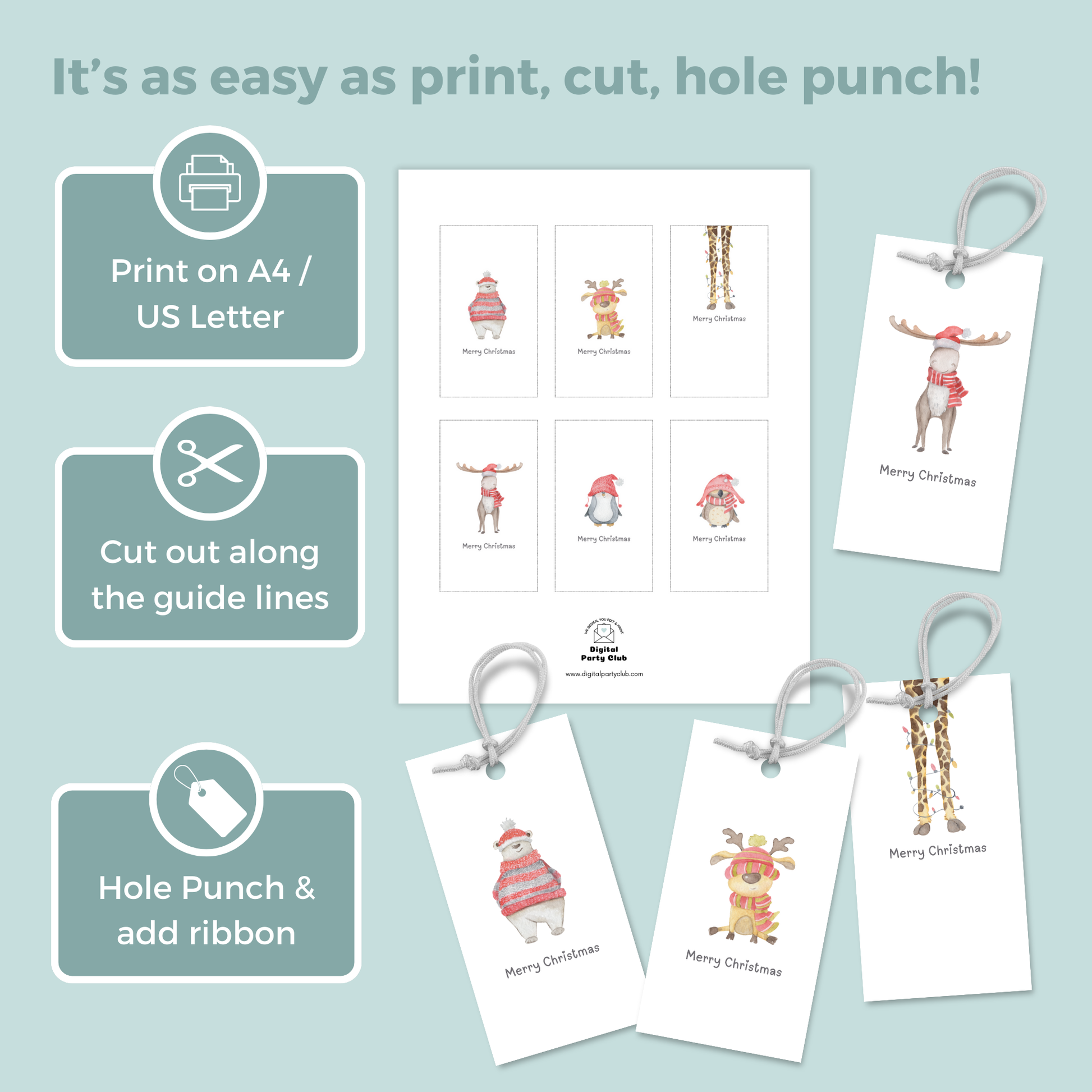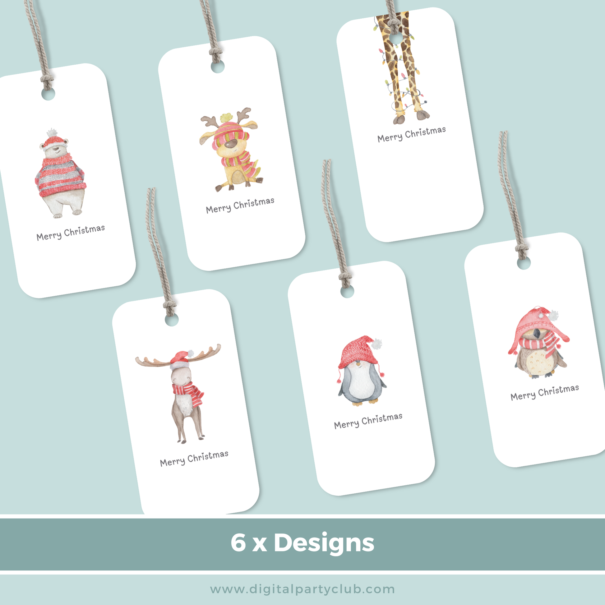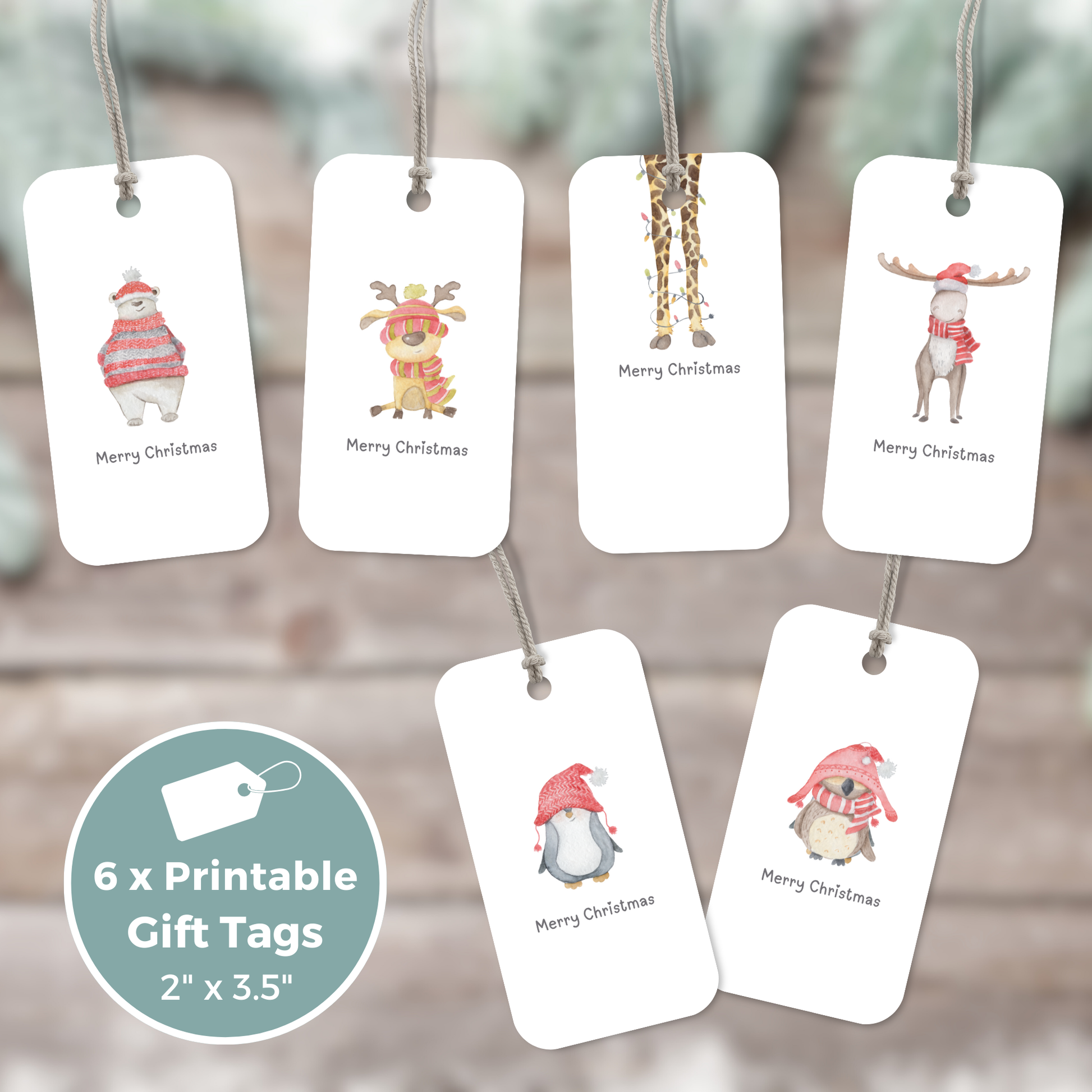 Set of 6 Printable Christmas Gift Tags - Cute Animal