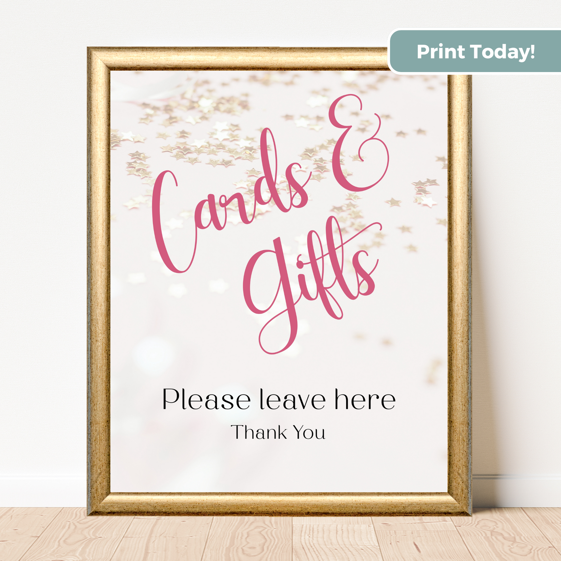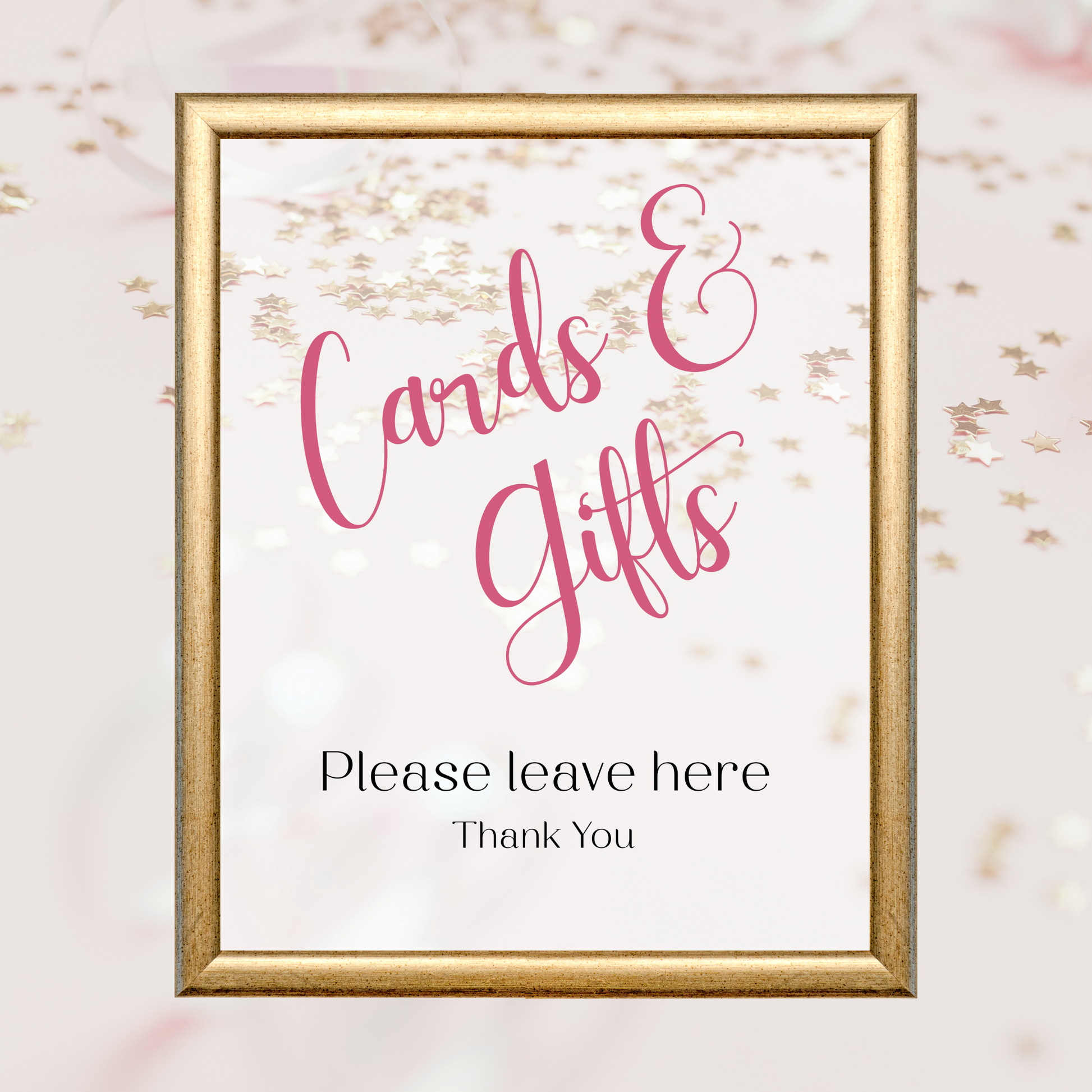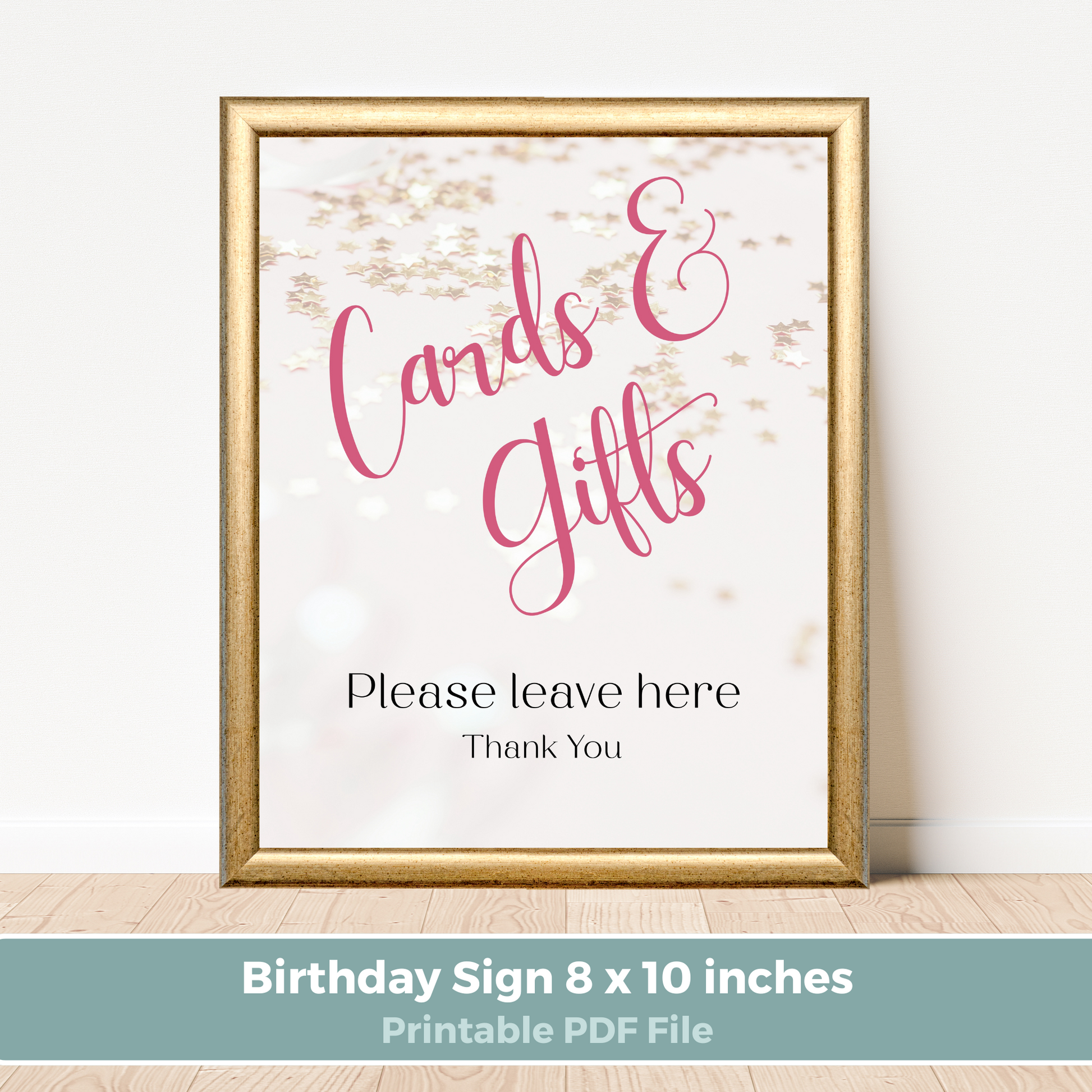 Printable Birthday Cards and Gifts Sign - Surprise Pink