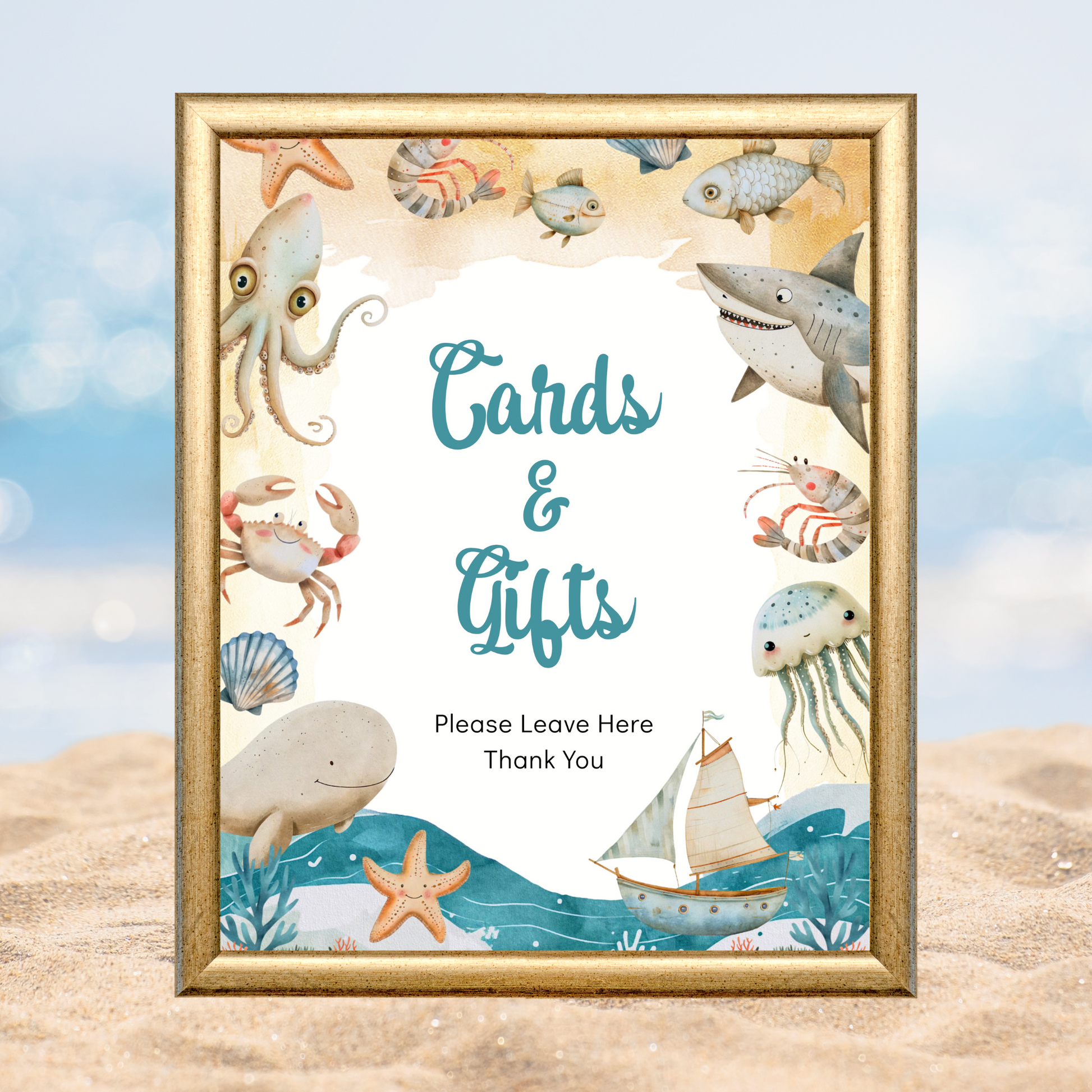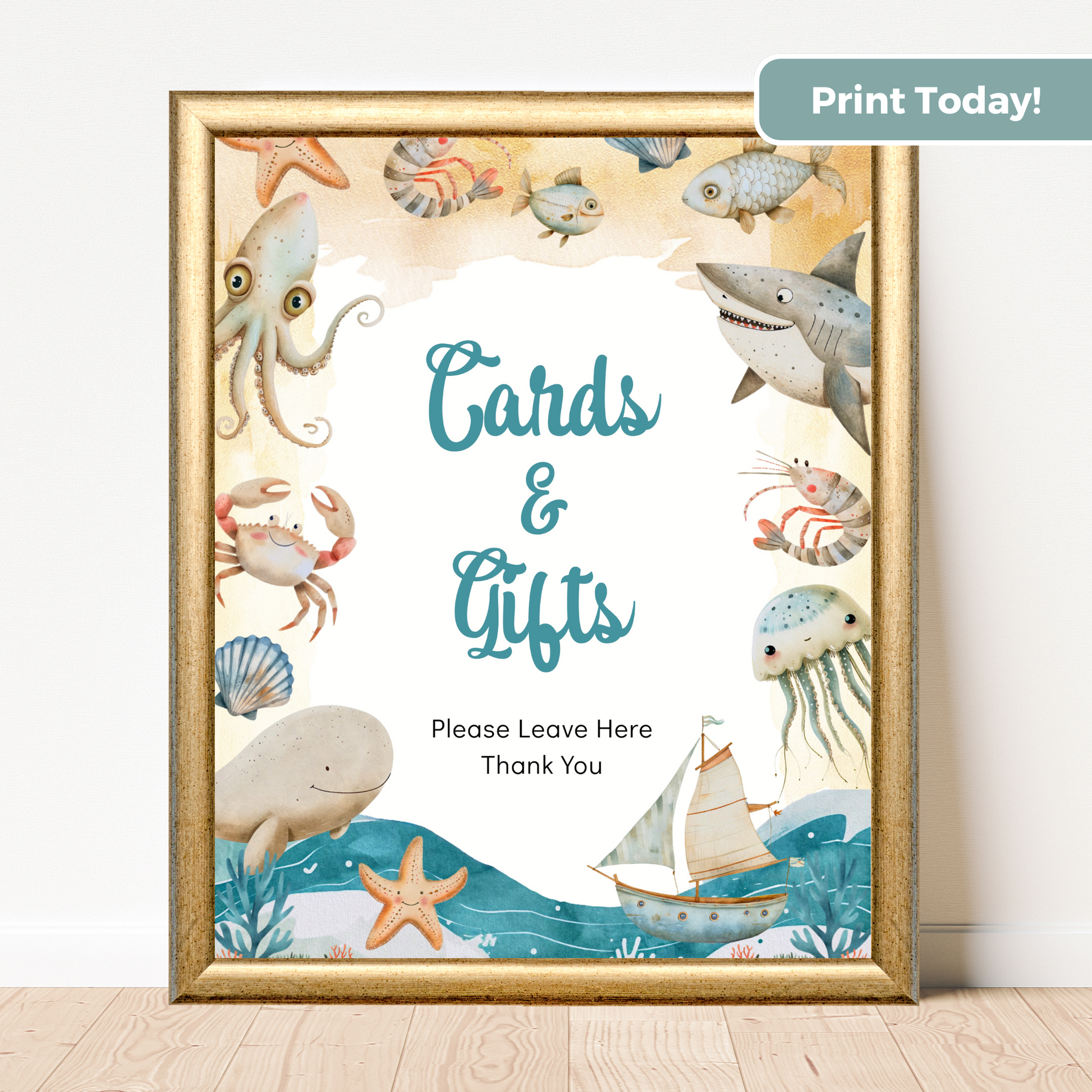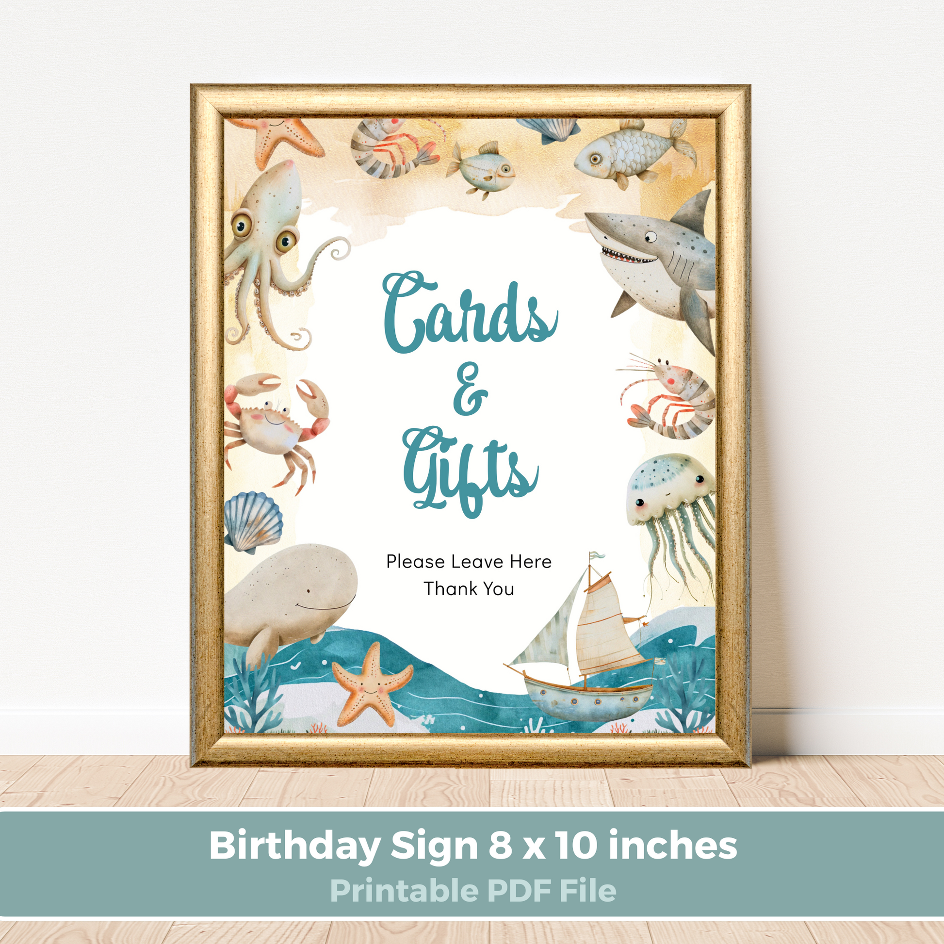 Printable Birthday Cards and Gifts Sign - Under the Sea Boy
