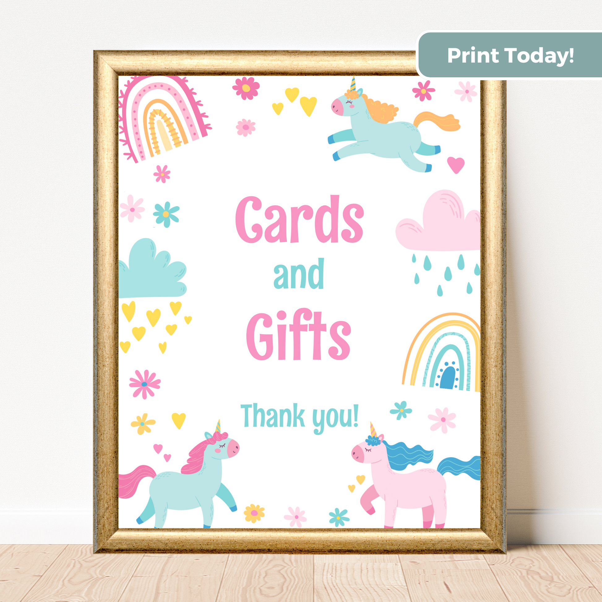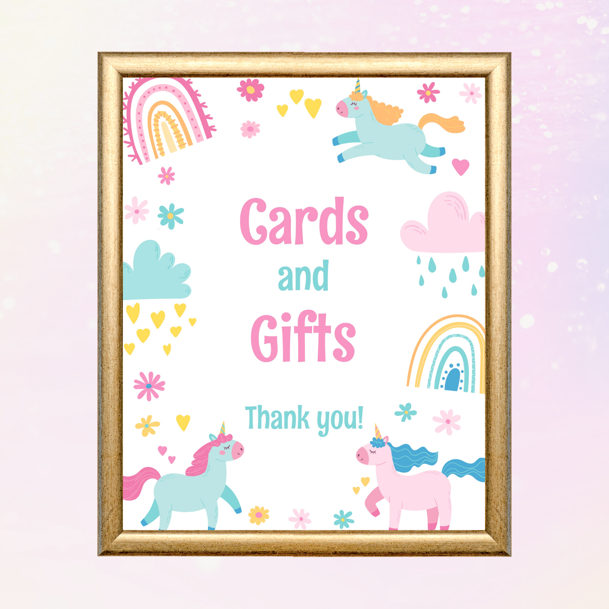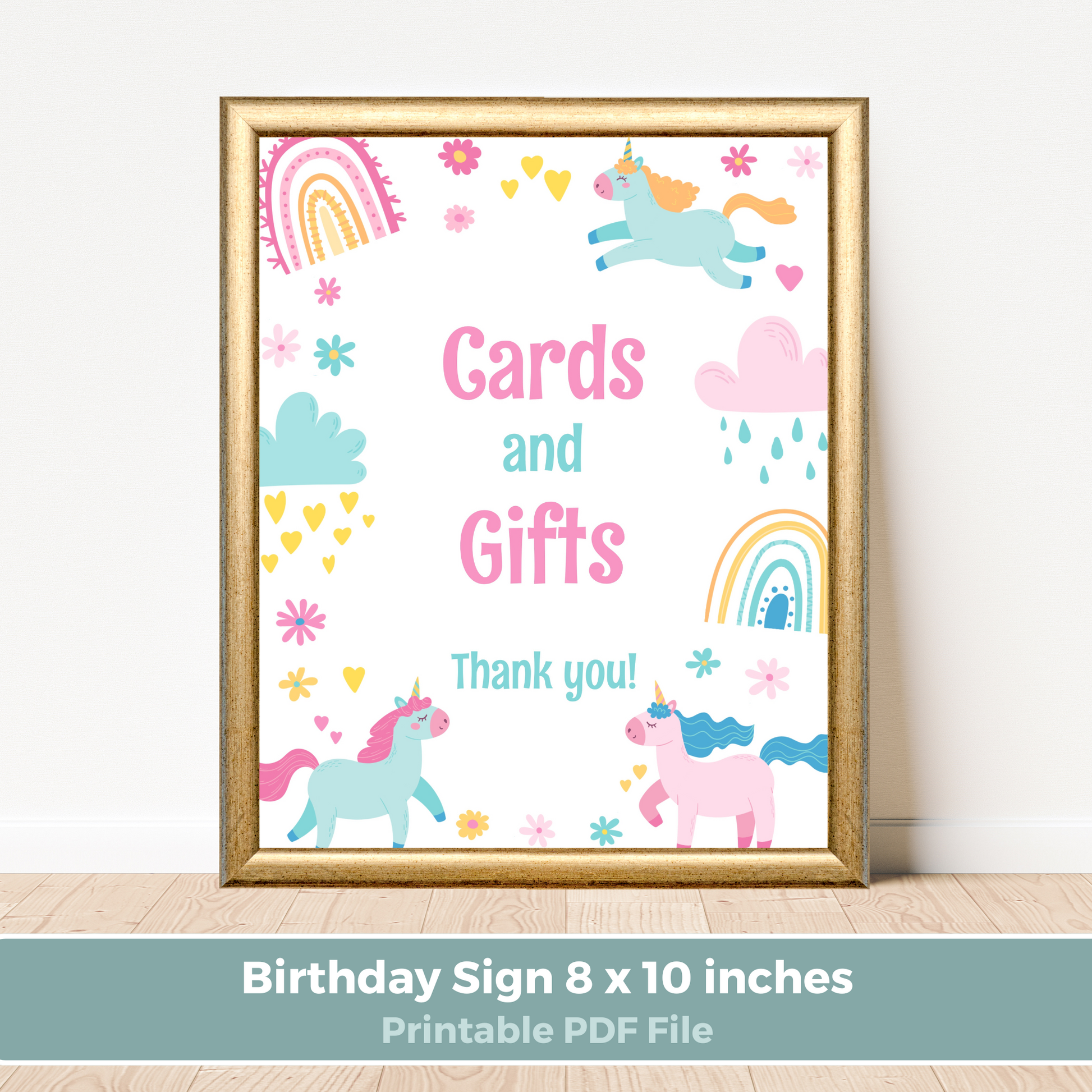 Printable Birthday Cards and Gifts Sign - Unicorn